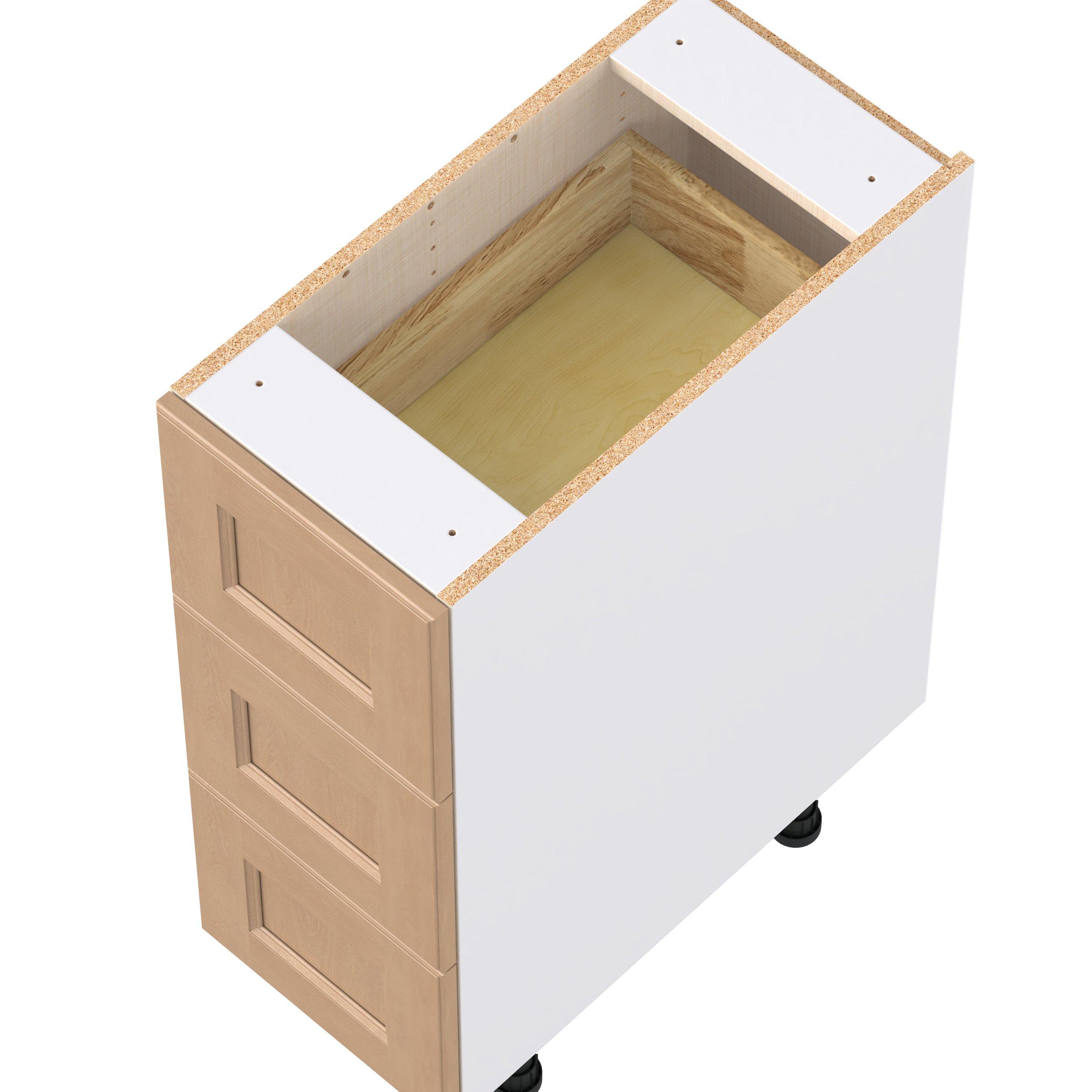 Experience the striking beauty of Sugarhill wide-rail shaker-inspired cabinets. Available in a warm and light sugar cookie finish, this collection will add warmth and lasting elegance to any space. Crafted from one-piece MDF Studio Design Collection Sugarhill 12 in. Stained Sugar Cookie Drawer Base Cabinet is designed to resist hairline cracks while the easy-to-clean finish stands up to stains and moisture. Featuring 5-piece doors and dovetail drawer joints, these cabinets offer durability and elegance. This collection combines style with everyday storage solutions.