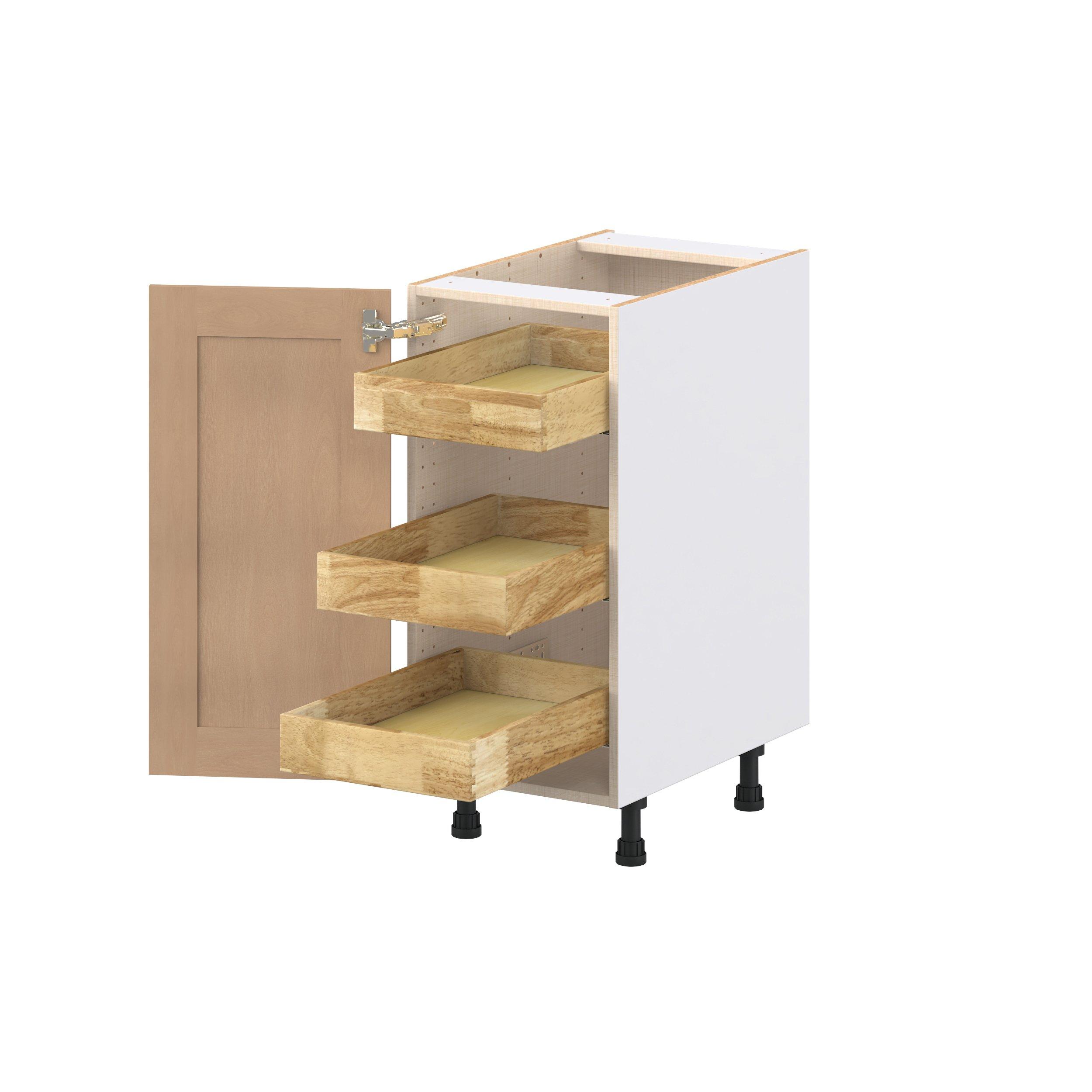 Experience the striking beauty of Sugarhill wide-rail shaker-inspired cabinets. Available in a warm and light sugar cookie finish, this collection will add warmth and lasting elegance to any space. Crafted from one-piece MDF Studio Design Collection Sugarhill 15 in. Stained Sugar Cookie Base Cabinet with Inner Pull-Out Drawer is designed to resist hairline cracks while the easy-to-clean finish stands up to stains and moisture. Featuring 5-piece doors and dovetail drawer joints, these cabinets offer durability and elegance. This collection combines style with everyday storage solutions.