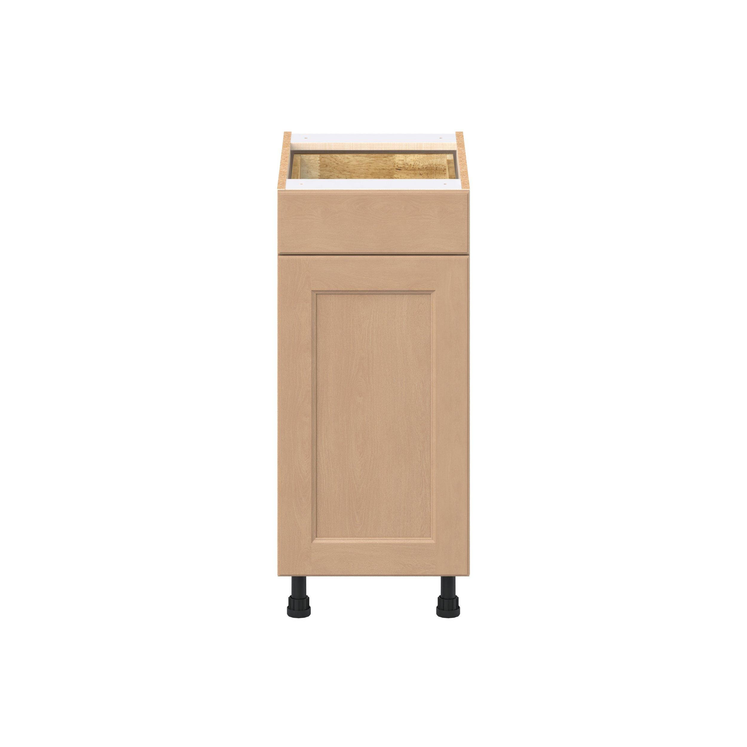 Experience the striking beauty of Sugarhill wide-rail shaker-inspired cabinets. Available in a warm and light sugar cookie finish, this collection will add warmth and lasting elegance to any space. Crafted from one-piece MDF Studio Design Collection Sugarhill 15 in. Stained Sugar Cookie Door and Drawer Base Cabinet is designed to resist hairline cracks while the easy-to-clean finish stands up to stains and moisture. Featuring 5-piece doors and dovetail drawer joints, these cabinets offer durability and elegance. This collection combines style with everyday storage solutions.