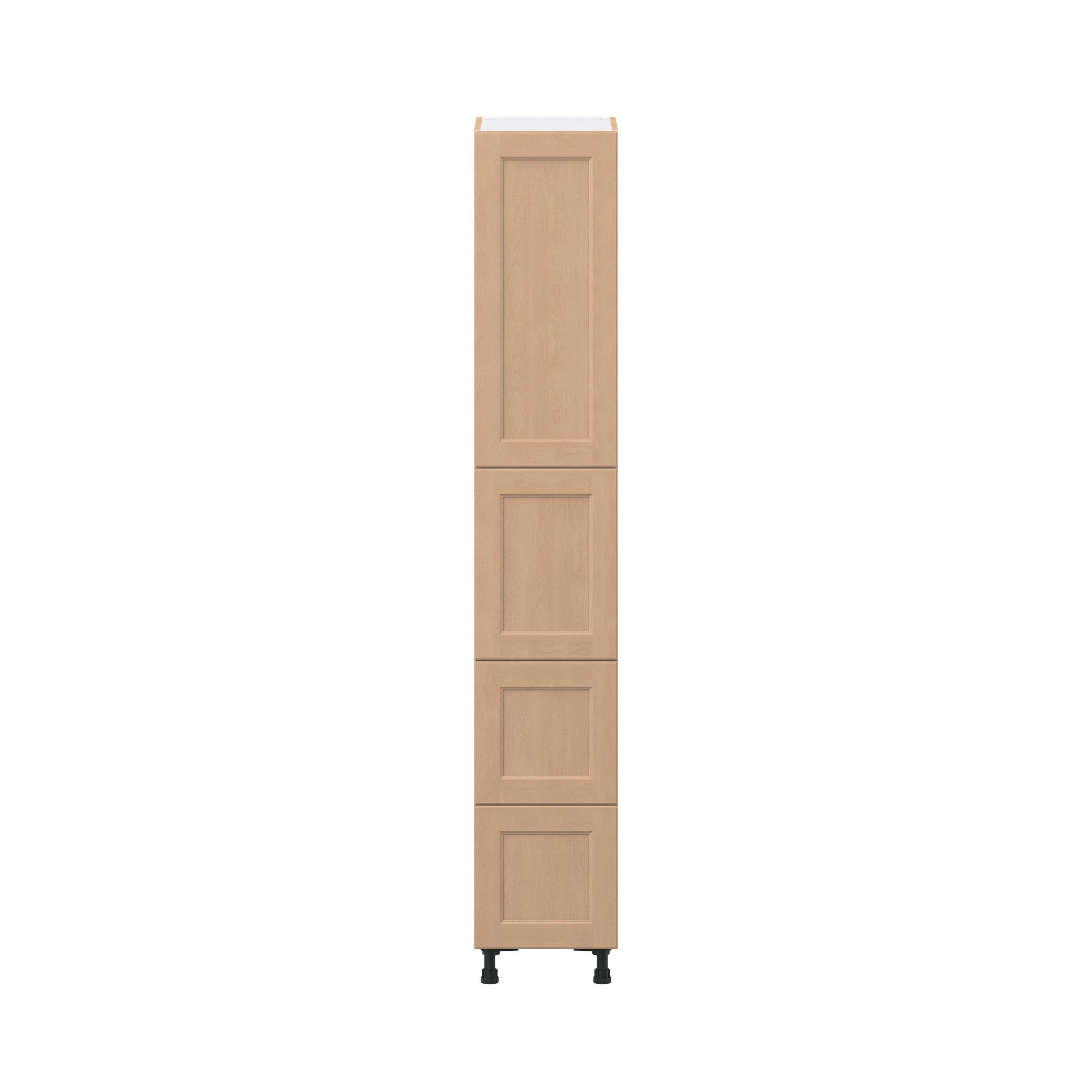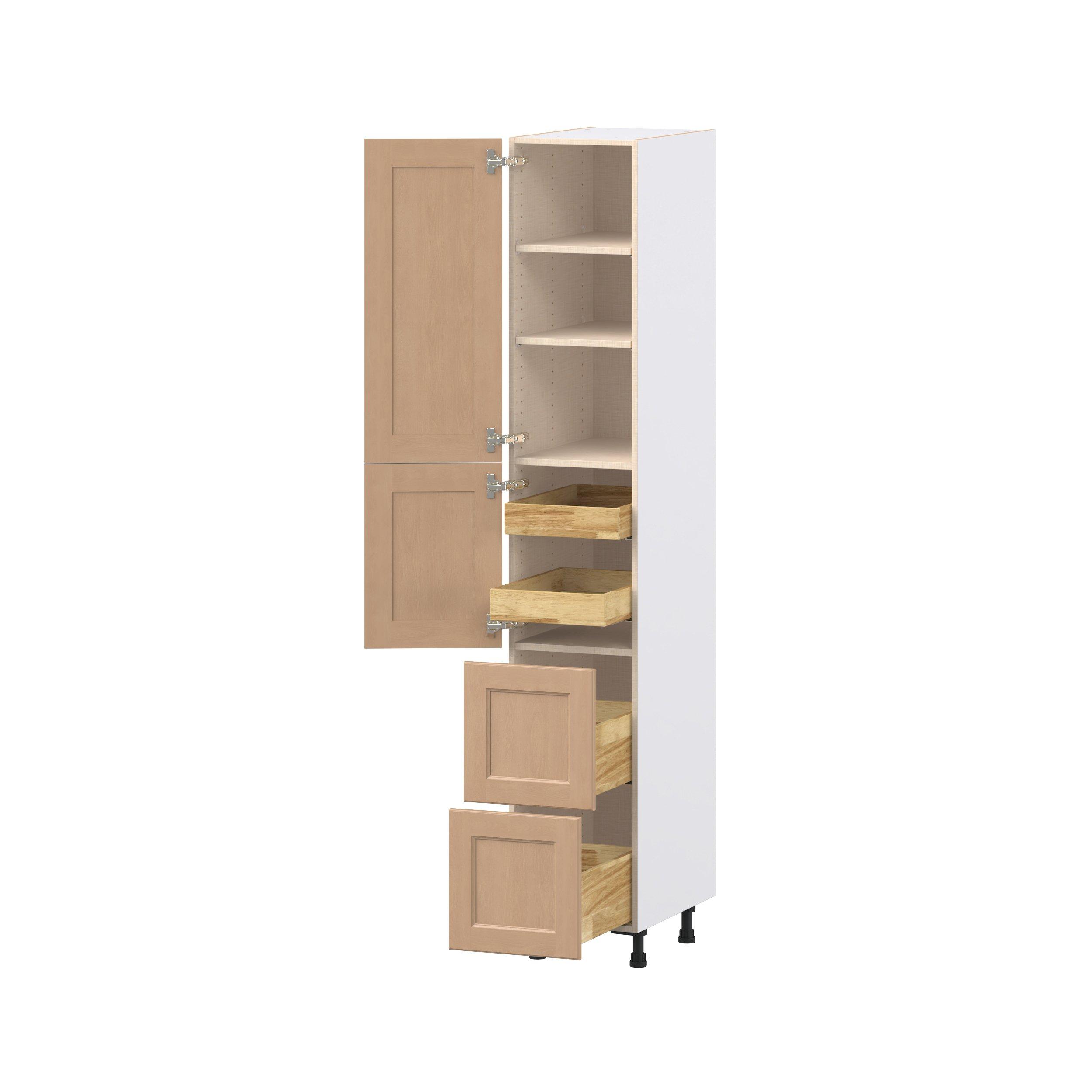 Experience the striking beauty of Sugarhill wide-rail shaker-inspired cabinets. Available in a warm and light sugar cookie finish, this collection will add warmth and lasting elegance to any space. Crafted from one-piece MDF Studio Design Collection Sugarhill 15 in. Stained Sugar Cookie Door and Drawer Pantry Cabinet with Inner Pull-Out is designed to resist hairline cracks while the easy-to-clean finish stands up to stains and moisture. Featuring 5-piece doors and dovetail drawer joints, these cabinets offer durability and elegance. This collection combines style with everyday storage solutions.