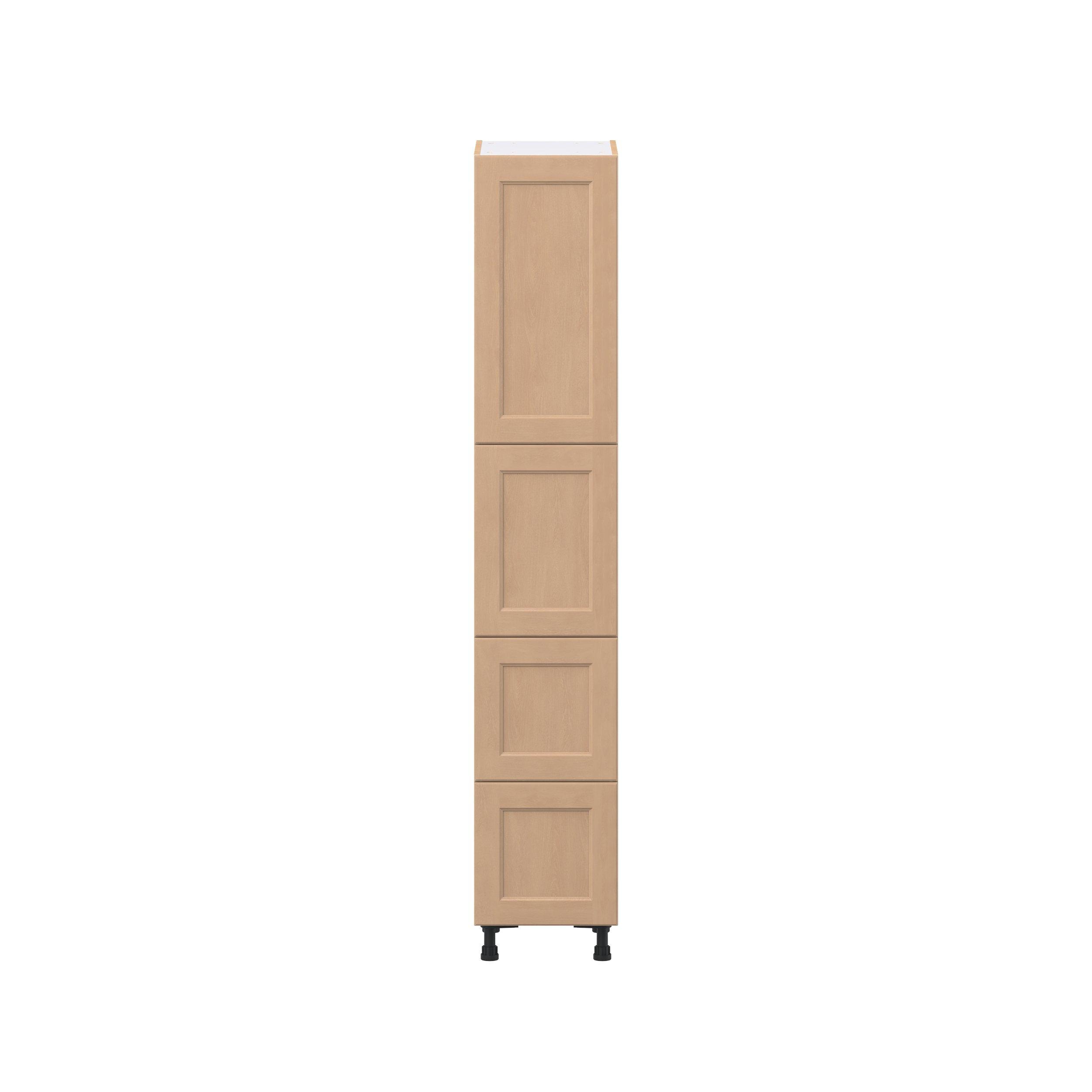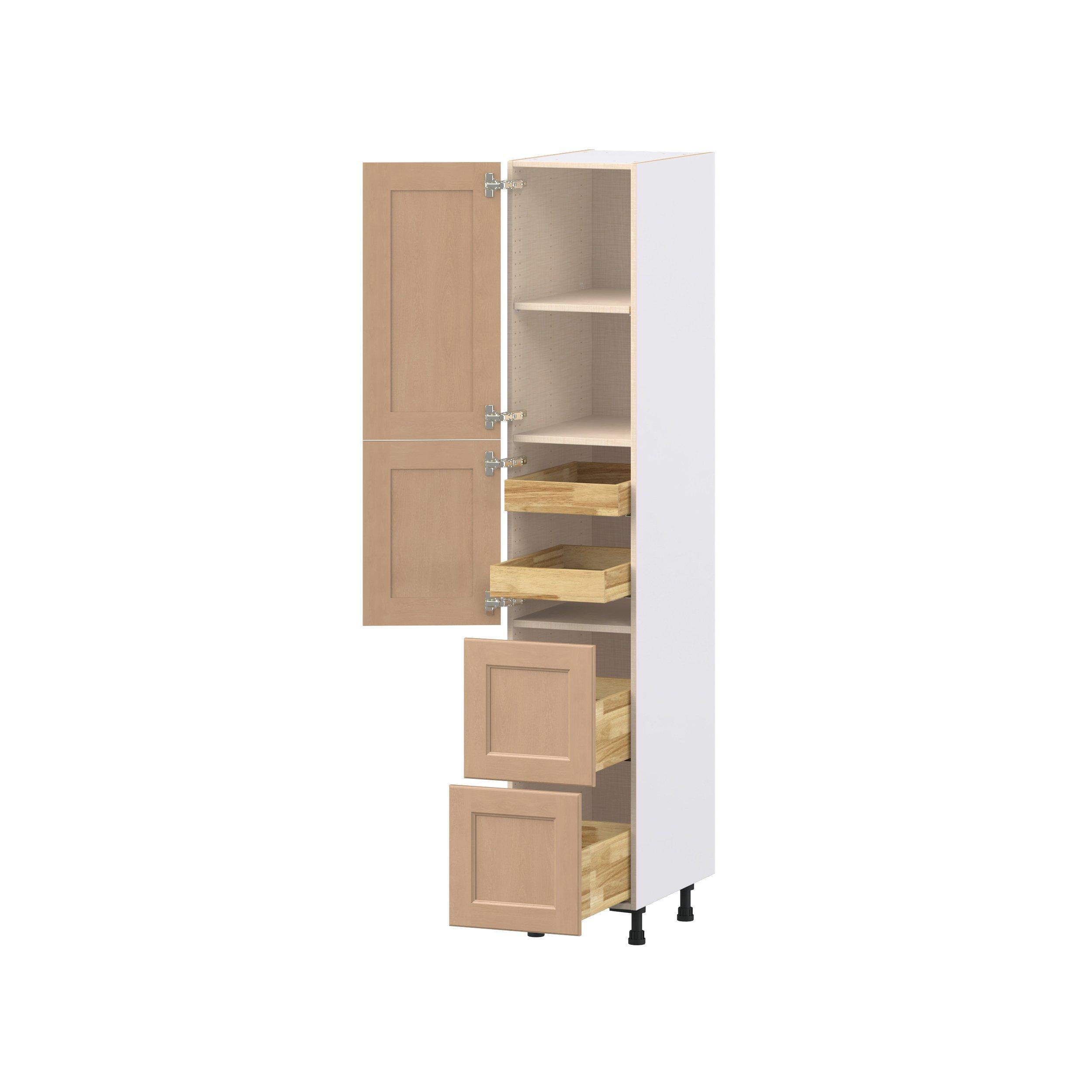 Experience the striking beauty of Sugarhill wide-rail shaker-inspired cabinets. Available in a warm and light sugar cookie finish, this collection will add warmth and lasting elegance to any space. Crafted from one-piece MDF Studio Design Collection Sugarhill 15 in. Stained Sugar Cookie Door and Drawer Pantry Cabinet with Inner Pull-Out is designed to resist hairline cracks while the easy-to-clean finish stands up to stains and moisture. Featuring 5-piece doors and dovetail drawer joints, these cabinets offer durability and elegance. This collection combines style with everyday storage solutions.