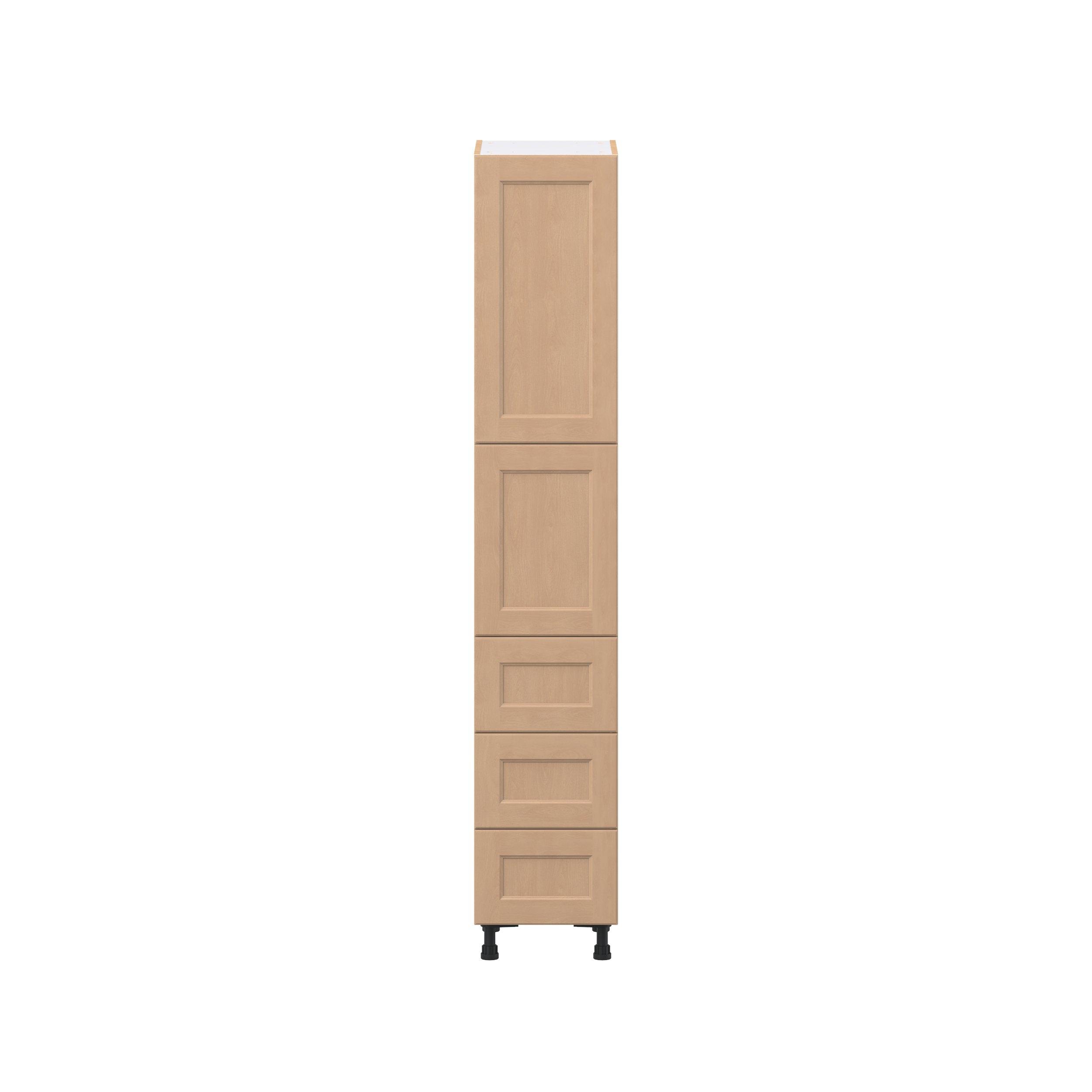 Experience the striking beauty of Sugarhill wide-rail shaker-inspired cabinets. Available in a warm and light sugar cookie finish, this collection will add warmth and lasting elegance to any space. Crafted from one-piece MDF Studio Design Collection Sugarhill 15 in. Stained Sugar Cookie Door and Drawer Pantry Cabinet with Inner Pull-Out is designed to resist hairline cracks while the easy-to-clean finish stands up to stains and moisture. Featuring 5-piece doors and dovetail drawer joints, these cabinets offer durability and elegance. This collection combines style with everyday storage solutions.