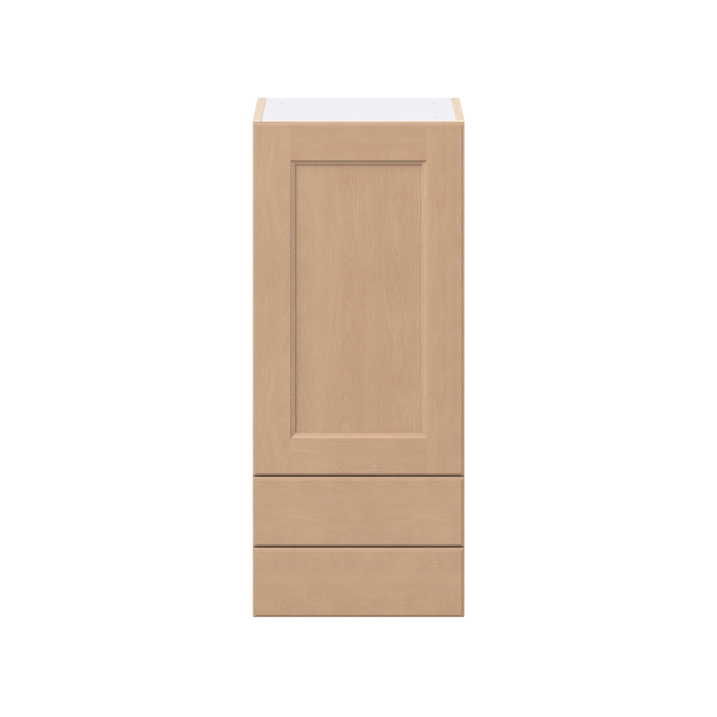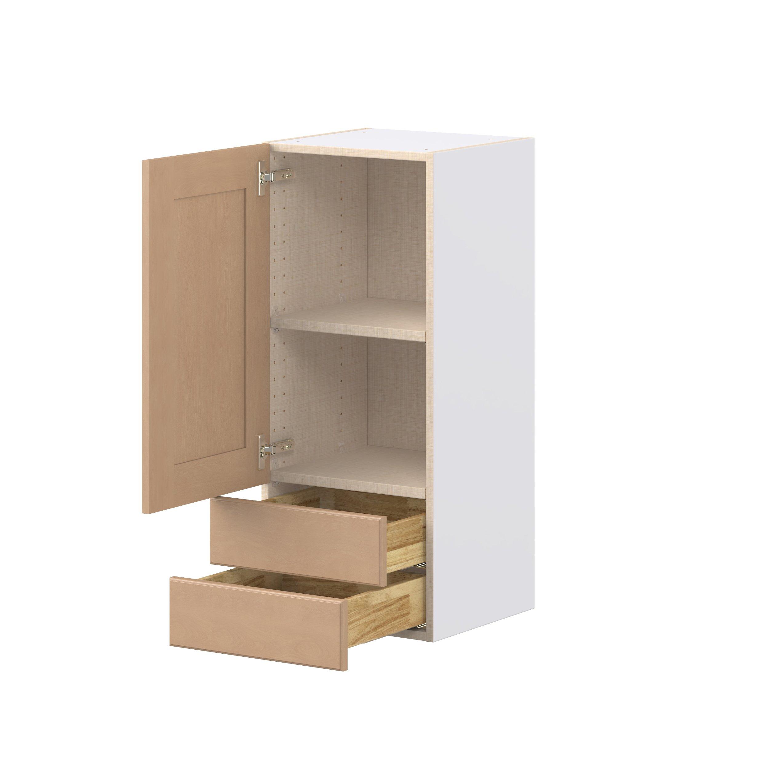 Experience the striking beauty of Sugarhill wide-rail shaker-inspired cabinets. Available in a warm and light sugar cookie finish, this collection will add warmth and lasting elegance to any space. Crafted from one-piece MDF Studio Design Collection Sugarhill 15 in. Stained Sugar Cookie Door and Drawer Wall Cabinet is designed to resist hairline cracks while the easy-to-clean finish stands up to stains and moisture. Featuring 5-piece doors and dovetail drawer joints, these cabinets offer durability and elegance. This collection combines style with everyday storage solutions.