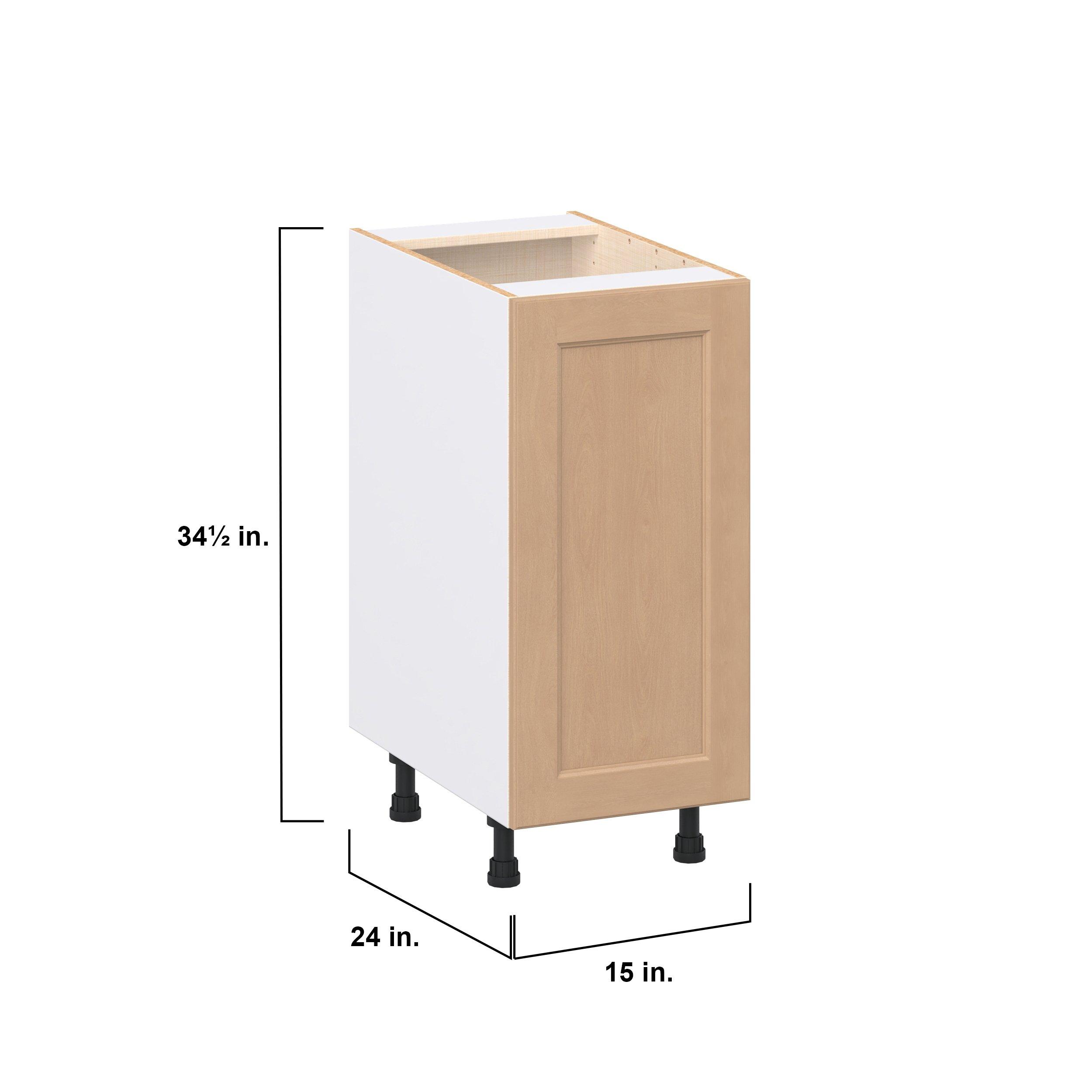 Experience the striking beauty of Sugarhill wide-rail shaker-inspired cabinets. Available in a warm and light sugar cookie finish, this collection will add warmth and lasting elegance to any space. Crafted from one-piece MDF Studio Design Collection Sugarhill 15 in. Stained Sugar Cookie Door Base Cabinet is designed to resist hairline cracks while the easy-to-clean finish stands up to stains and moisture. Featuring 5-piece doors and dovetail drawer joints, these cabinets offer durability and elegance. This collection combines style with everyday storage solutions.
