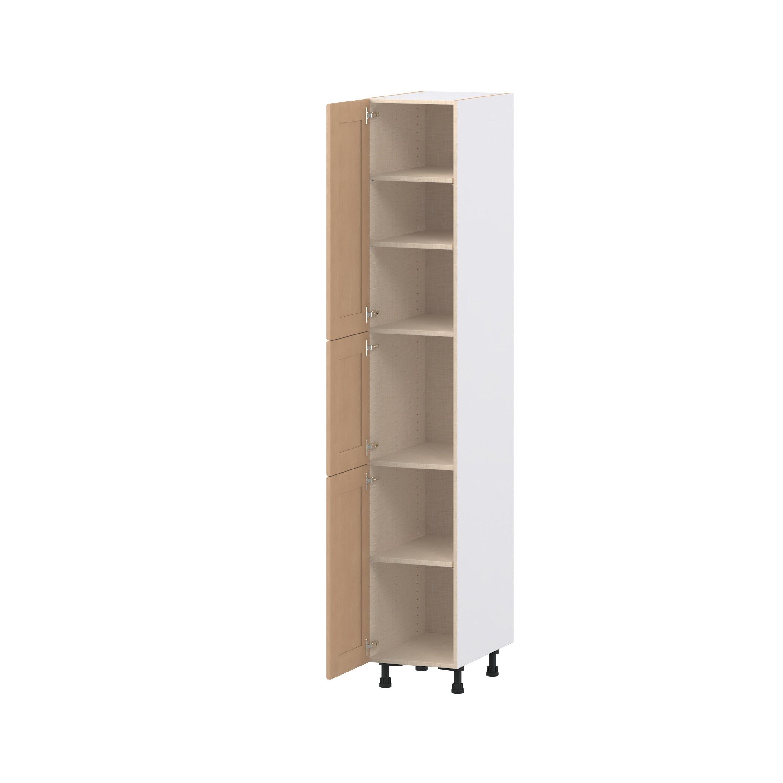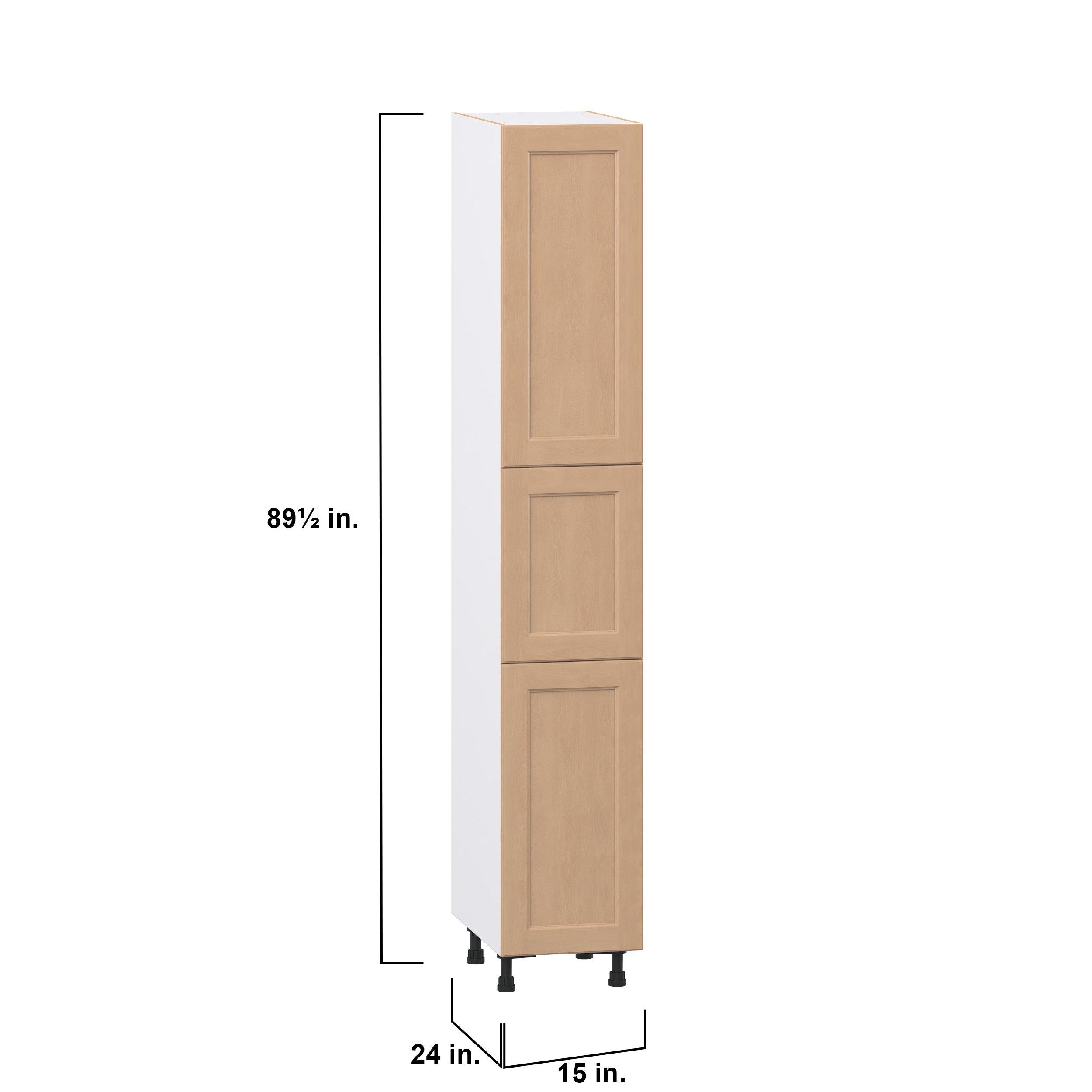 Experience the striking beauty of Sugarhill wide-rail shaker-inspired cabinets. Available in a warm and light sugar cookie finish, this collection will add warmth and lasting elegance to any space. Crafted from one-piece MDF Studio Design Collection Sugarhill 15 in. Stained Sugar Cookie Door Pantry Cabinet is designed to resist hairline cracks while the easy-to-clean finish stands up to stains and moisture. Featuring 5-piece doors and dovetail drawer joints, these cabinets offer durability and elegance. This collection combines style with everyday storage solutions.