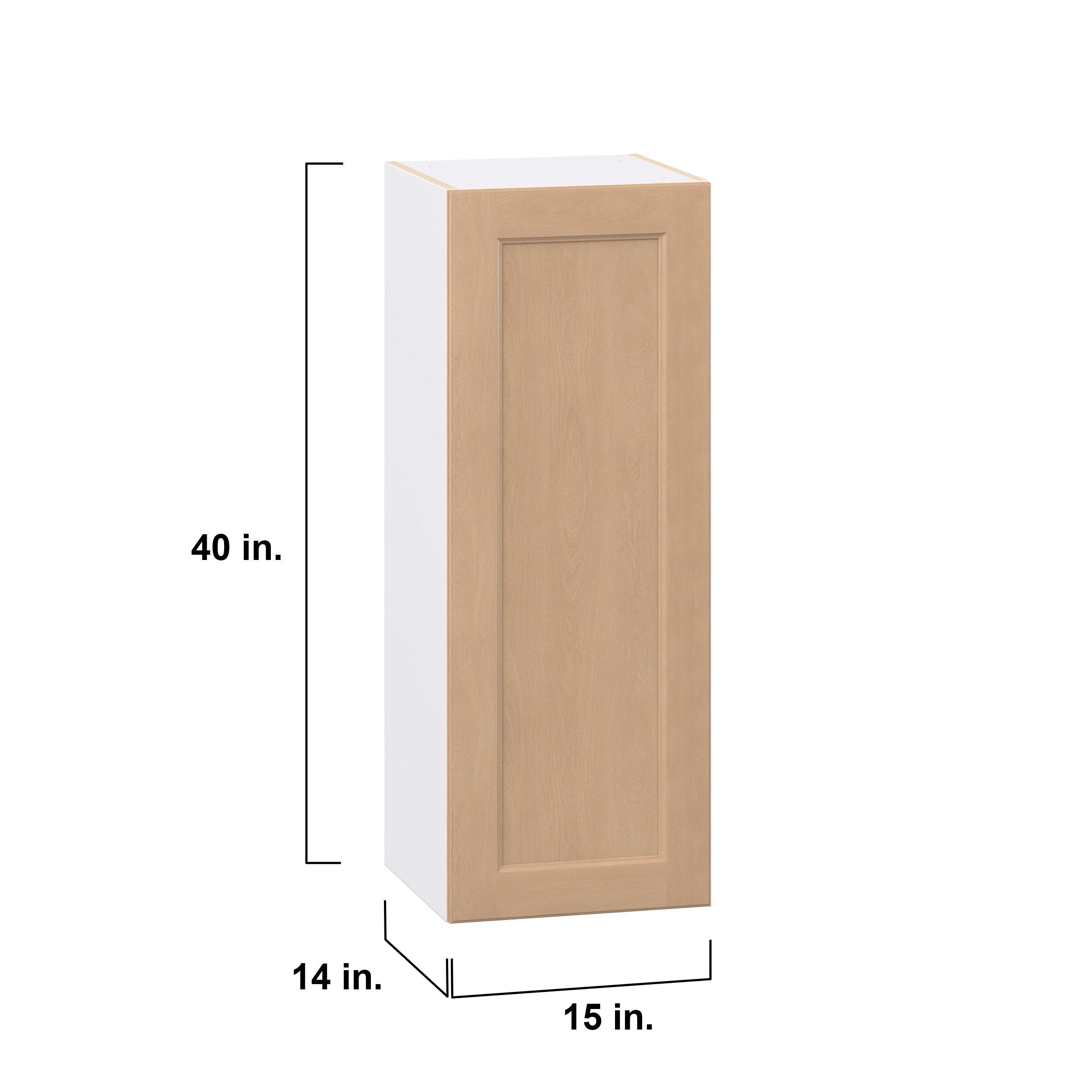 Experience the striking beauty of Sugarhill wide-rail shaker-inspired cabinets. Available in a warm and light sugar cookie finish, this collection will add warmth and lasting elegance to any space. Crafted from one-piece MDF Studio Design Collection Sugarhill 15 in. Stained Sugar Cookie Door Wall Cabinet is designed to resist hairline cracks while the easy-to-clean finish stands up to stains and moisture. Featuring 5-piece doors and dovetail drawer joints, these cabinets offer durability and elegance. This collection combines style with everyday storage solutions.