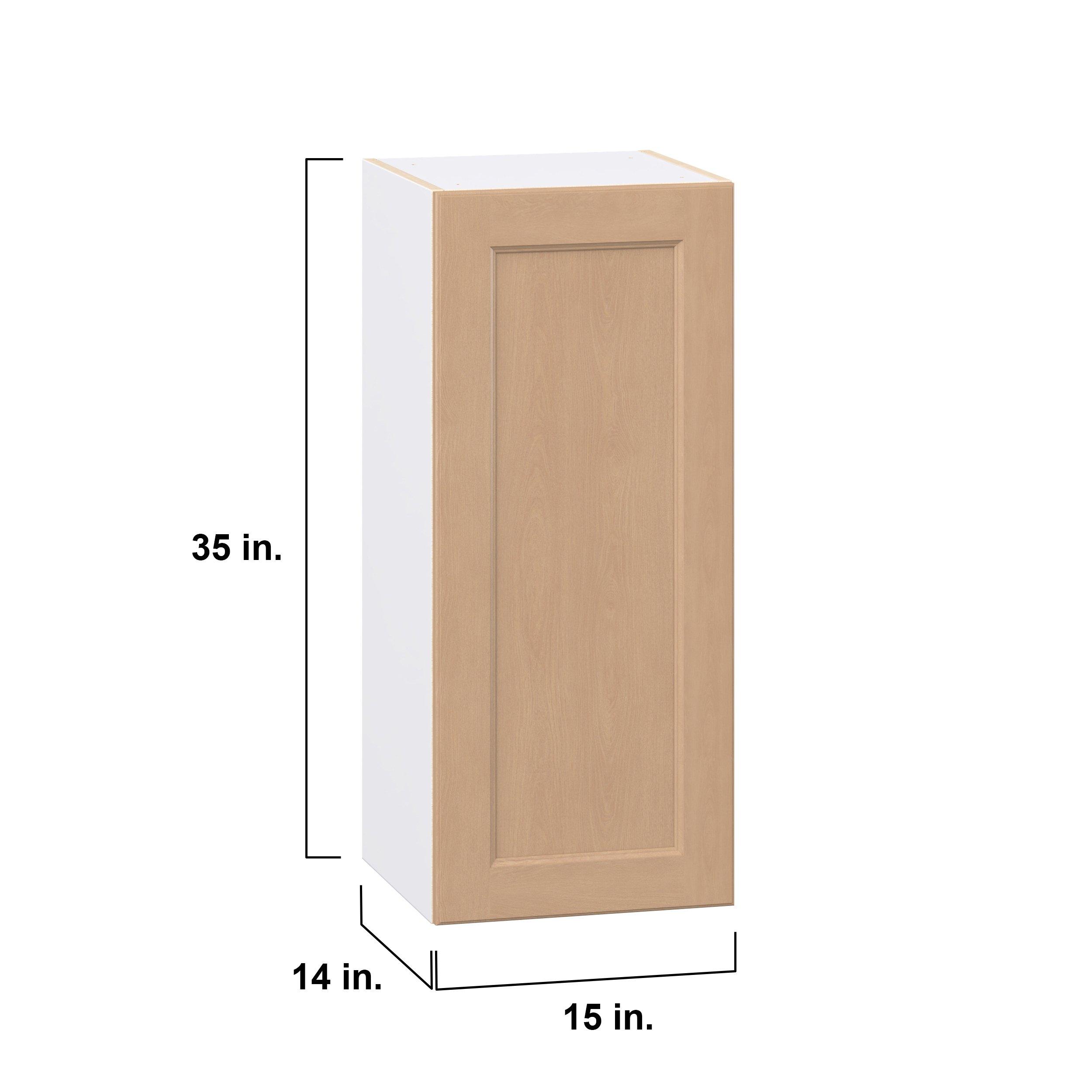 Experience the striking beauty of Sugarhill wide-rail shaker-inspired cabinets. Available in a warm and light sugar cookie finish, this collection will add warmth and lasting elegance to any space. Crafted from one-piece MDF Studio Design Collection Sugarhill 15 in. Stained Sugar Cookie Door Wall Cabinet is designed to resist hairline cracks while the easy-to-clean finish stands up to stains and moisture. Featuring 5-piece doors and dovetail drawer joints, these cabinets offer durability and elegance. This collection combines style with everyday storage solutions.