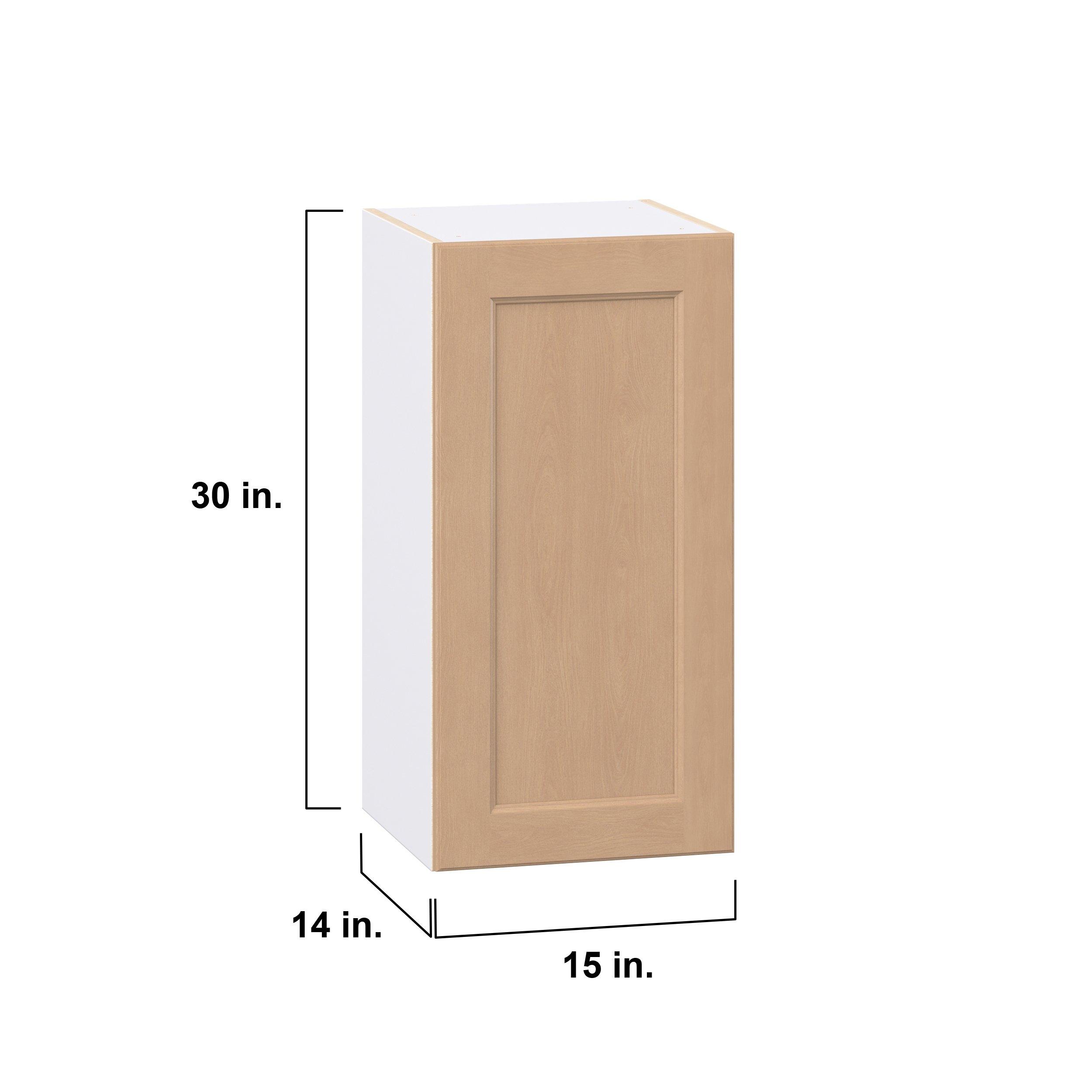 Experience the striking beauty of Sugarhill wide-rail shaker-inspired cabinets. Available in a warm and light sugar cookie finish, this collection will add warmth and lasting elegance to any space. Crafted from one-piece MDF Studio Design Collection Sugarhill 15 in. Stained Sugar Cookie Door Wall Cabinet is designed to resist hairline cracks while the easy-to-clean finish stands up to stains and moisture. Featuring 5-piece doors and dovetail drawer joints, these cabinets offer durability and elegance. This collection combines style with everyday storage solutions.