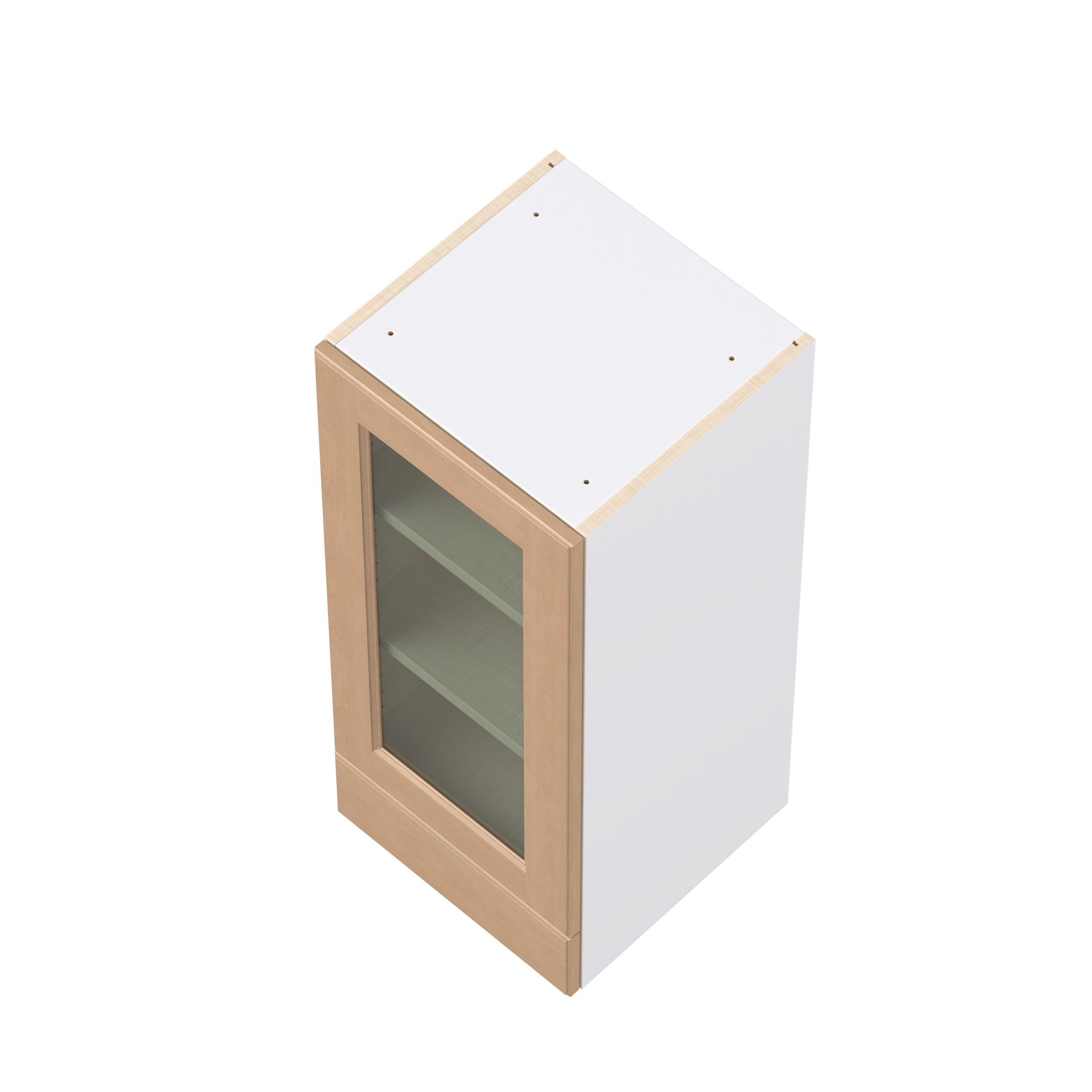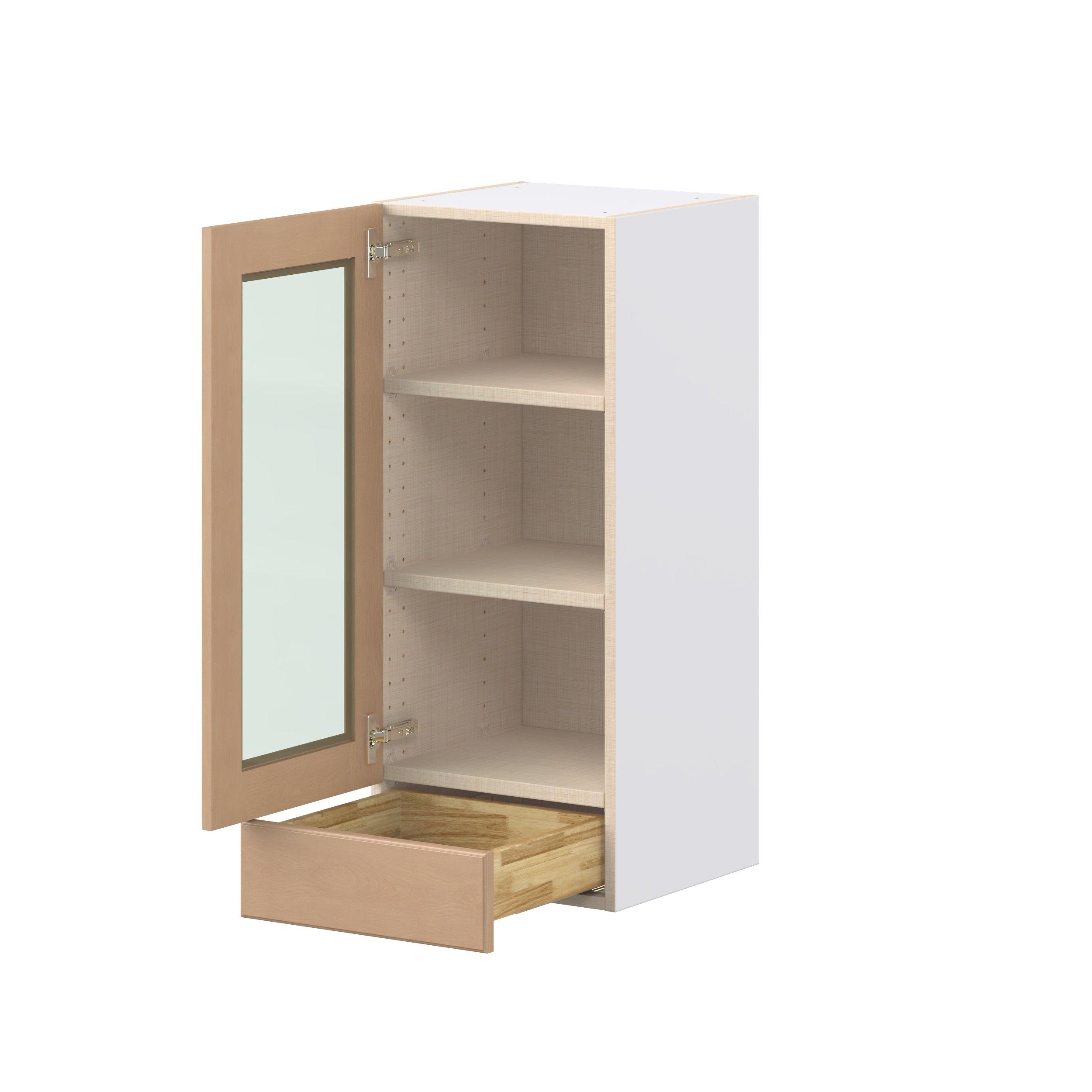 Experience the striking beauty of Sugarhill wide-rail shaker-inspired cabinets. Available in a warm and light sugar cookie finish, this collection will add warmth and lasting elegance to any space. Crafted from one-piece MDF Studio Design Collection Sugarhill 15 in. Stained Sugar Cookie Drawer Wall Cabinet with Glass Door is designed to resist hairline cracks while the easy-to-clean finish stands up to stains and moisture. Featuring 5-piece doors and dovetail drawer joints, these cabinets offer durability and elegance. This collection combines style with everyday storage solutions.