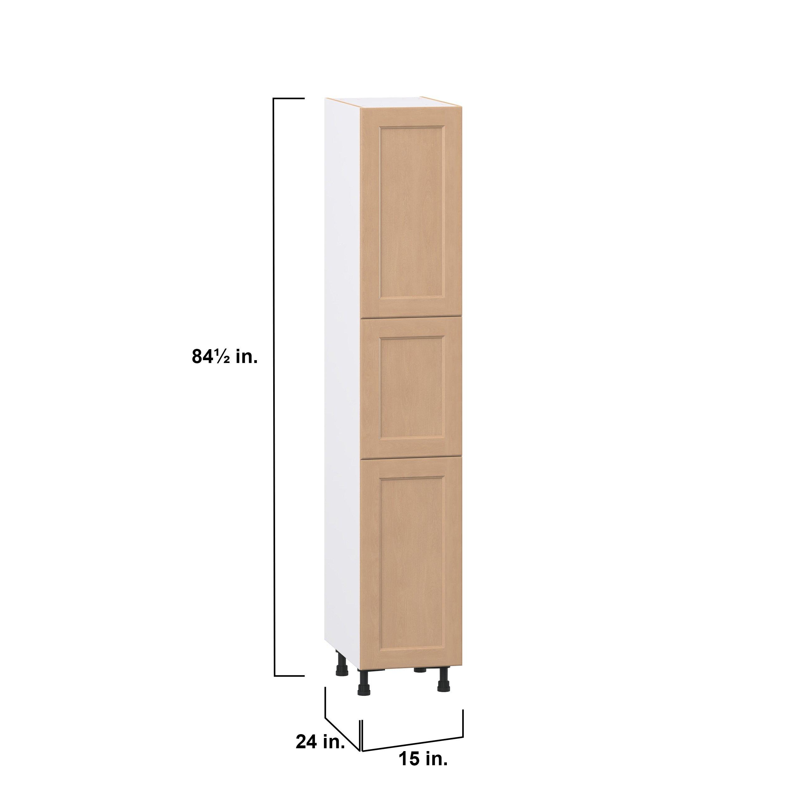 Experience the striking beauty of Sugarhill wide-rail shaker-inspired cabinets. Available in a warm and light sugar cookie finish, this collection will add warmth and lasting elegance to any space. Crafted from one-piece MDF Studio Design Collection Sugarhill 15 in. Stained Sugar Cookie Pantry Cabinet with Inner Pull-Out Drawer is designed to resist hairline cracks while the easy-to-clean finish stands up to stains and moisture. Featuring 5-piece doors and dovetail drawer joints, these cabinets offer durability and elegance. This collection combines style with everyday storage solutions.