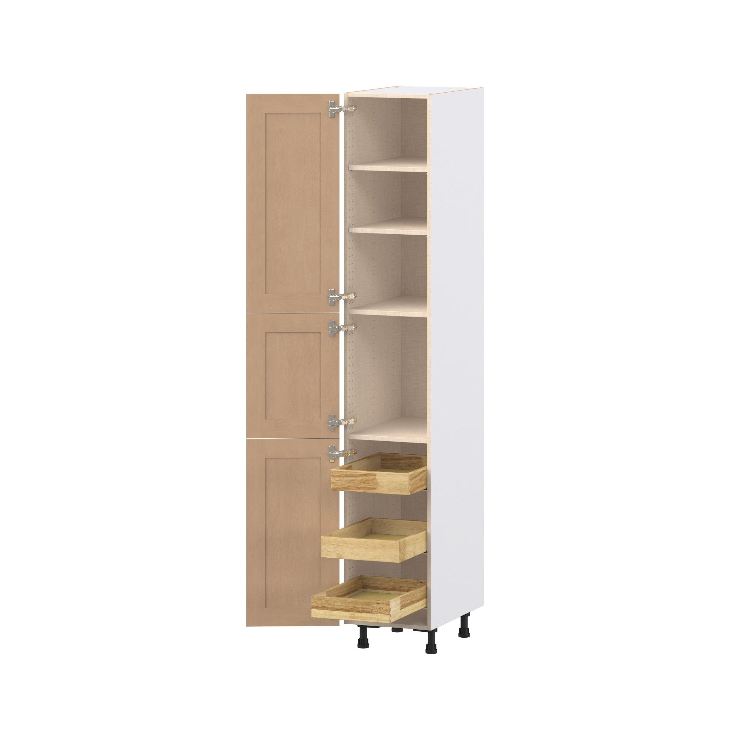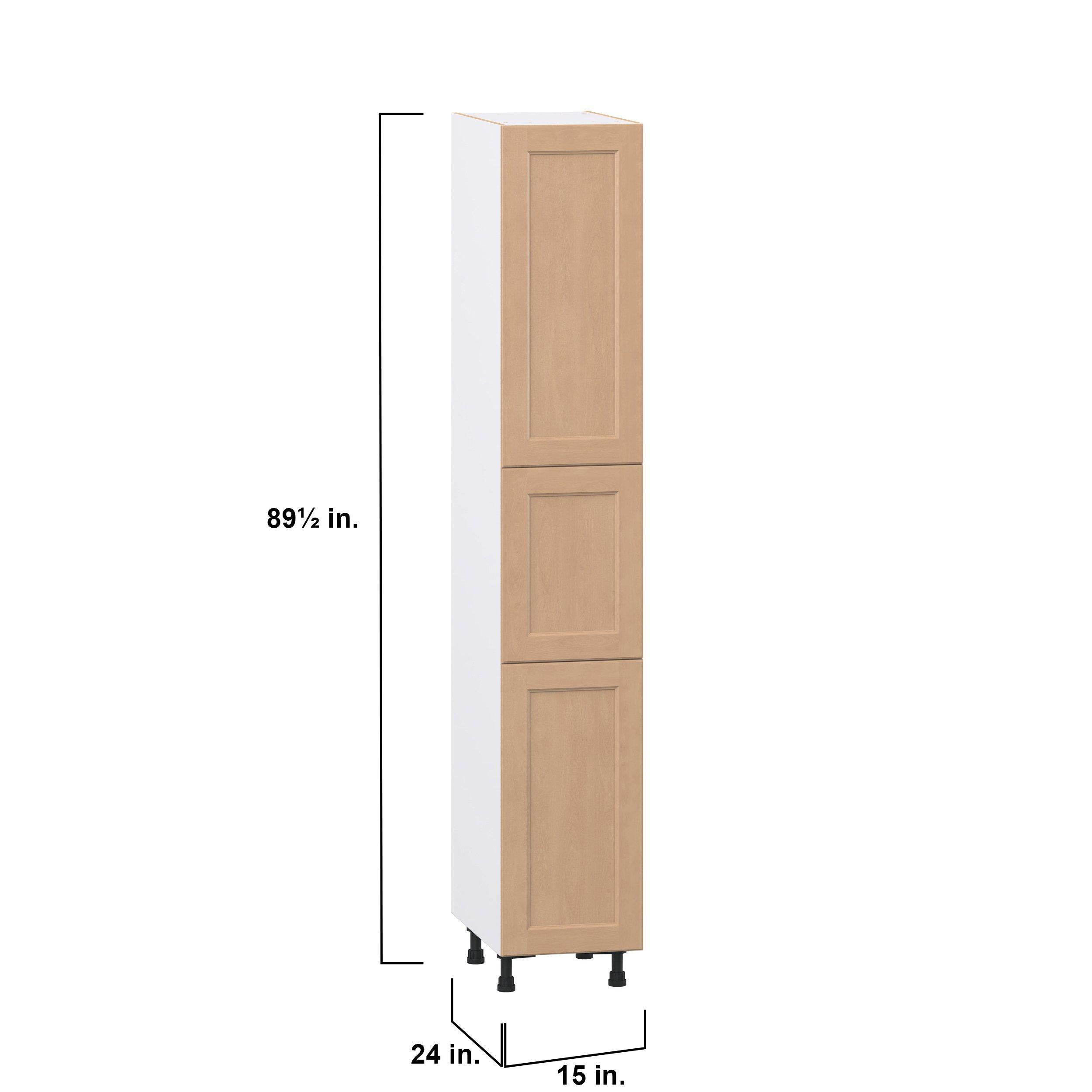 Experience the striking beauty of Sugarhill wide-rail shaker-inspired cabinets. Available in a warm and light sugar cookie finish, this collection will add warmth and lasting elegance to any space. Crafted from one-piece MDF Studio Design Collection Sugarhill 15 in. Stained Sugar Cookie Pantry Cabinet with Inner Pull-Out Drawer is designed to resist hairline cracks while the easy-to-clean finish stands up to stains and moisture. Featuring 5-piece doors and dovetail drawer joints, these cabinets offer durability and elegance. This collection combines style with everyday storage solutions.