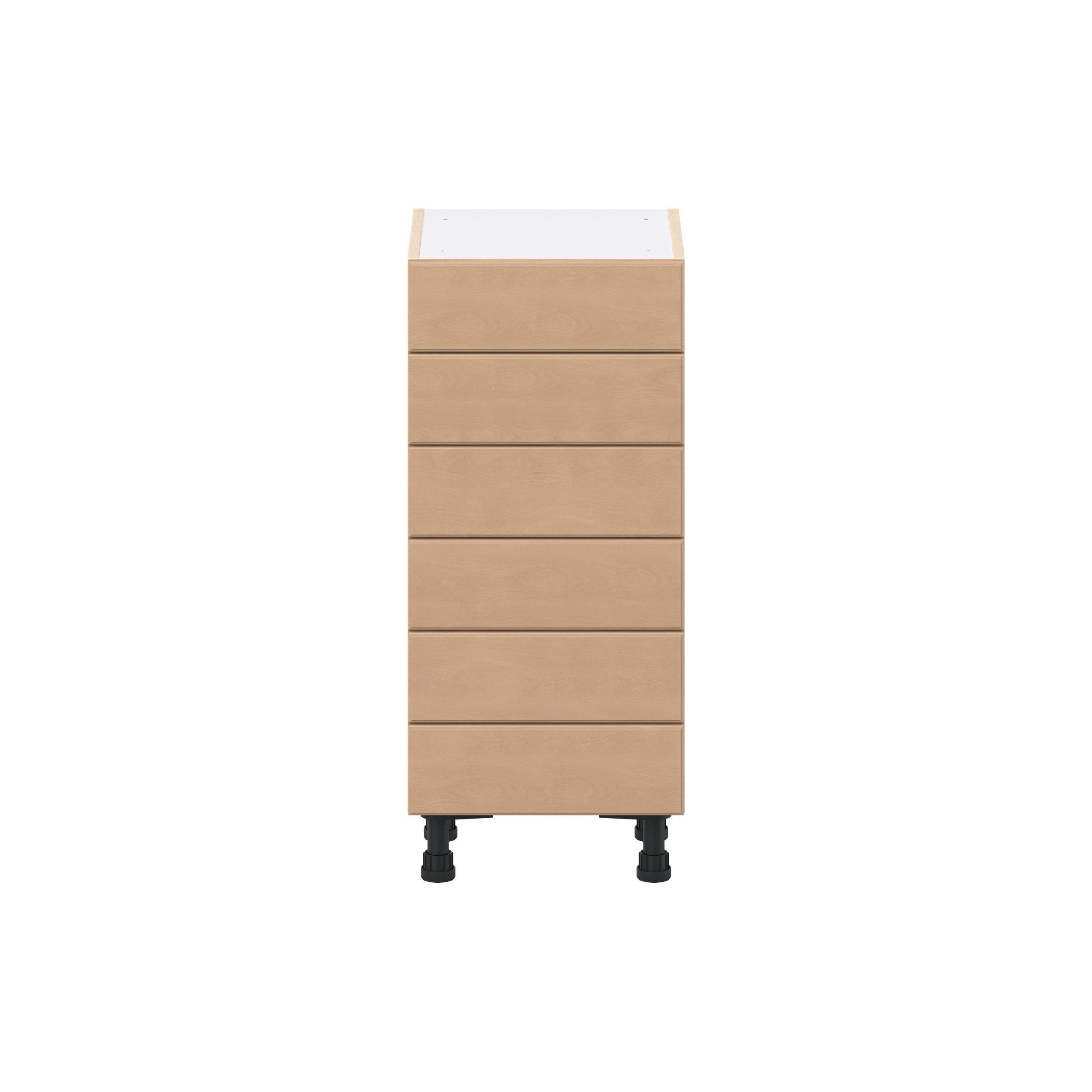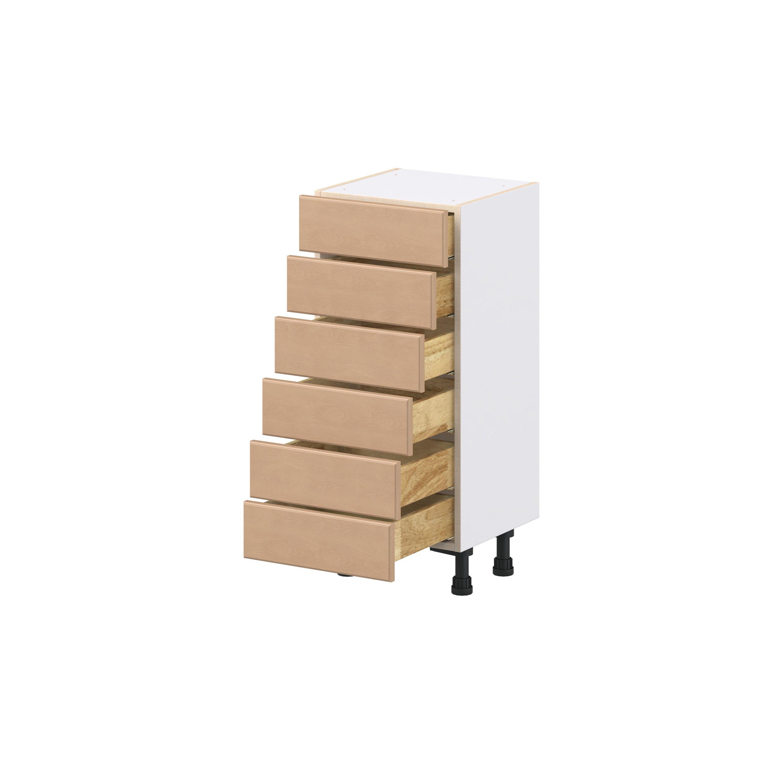 Experience the striking beauty of Sugarhill wide-rail shaker-inspired cabinets. Available in a warm and light sugar cookie finish, this collection will add warmth and lasting elegance to any space. Crafted from one-piece MDF Studio Design Collection Sugarhill 15 in. Stained Sugar Cookie Shallow Base Cabinet is designed to resist hairline cracks while the easy-to-clean finish stands up to stains and moisture. Featuring 5-piece doors and dovetail drawer joints, these cabinets offer durability and elegance. This collection combines style with everyday storage solutions.