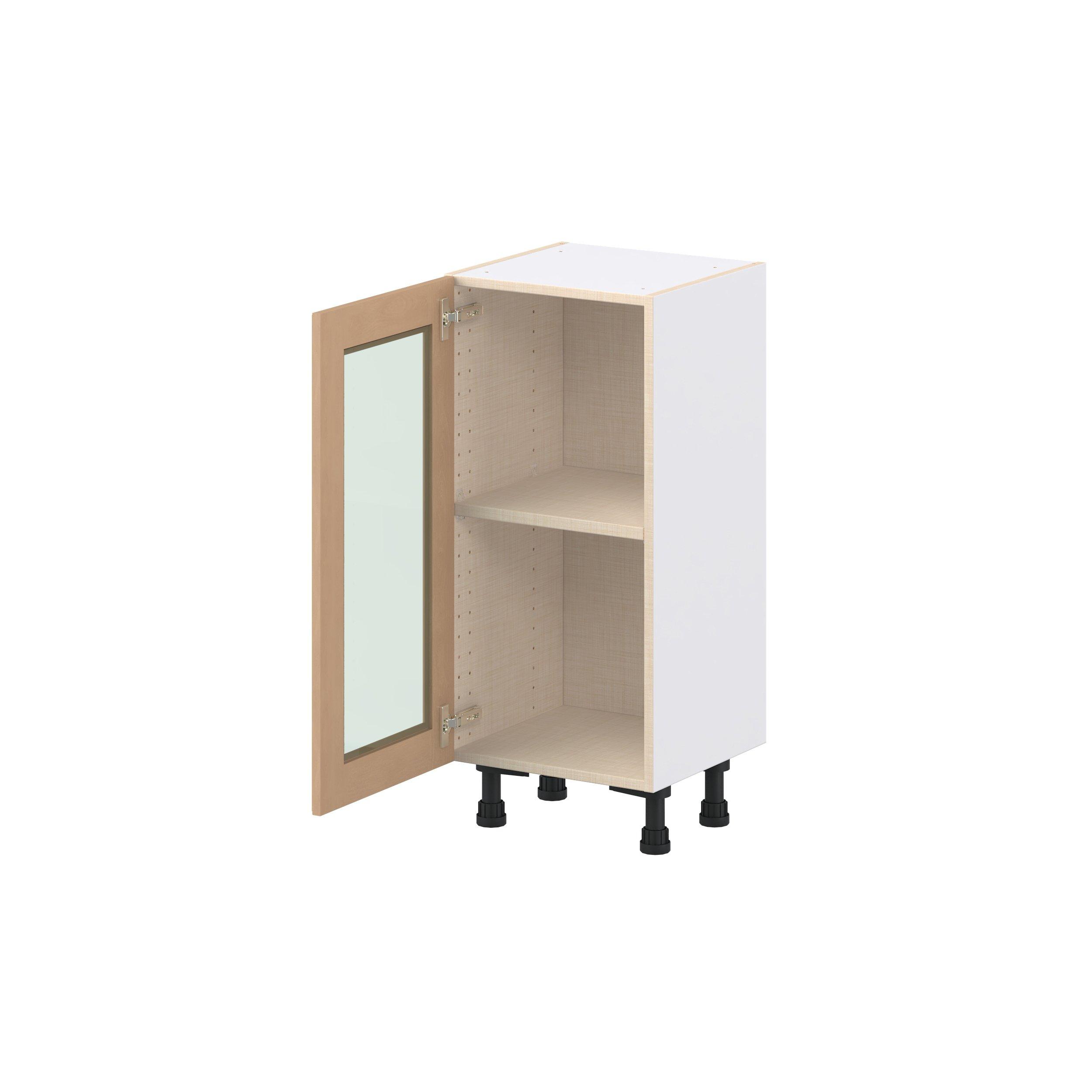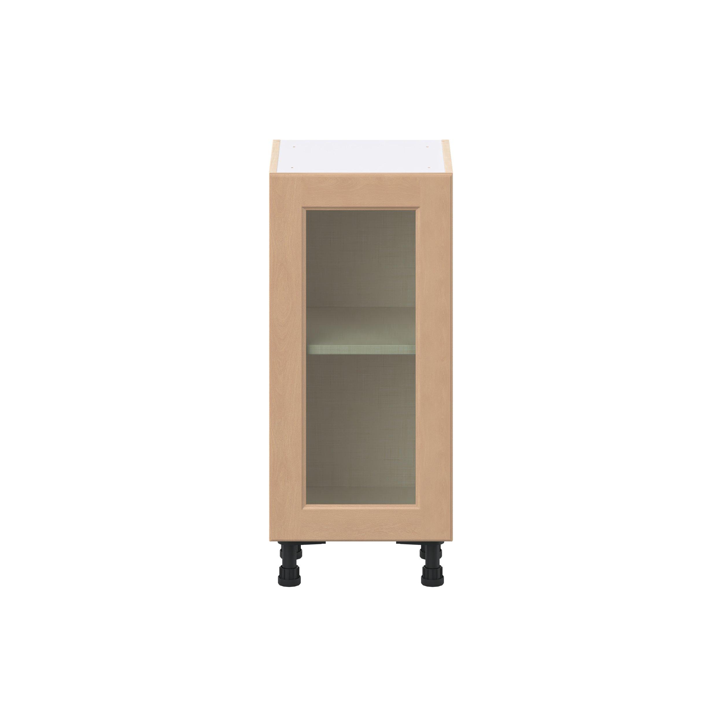 Experience the striking beauty of Sugarhill wide-rail shaker-inspired cabinets. Available in a warm and light sugar cookie finish, this collection will add warmth and lasting elegance to any space. Crafted from one-piece MDF Studio Design Collection Sugarhill 15 in. Stained Sugar Cookie Shallow Base Cabinet with Glass Door is designed to resist hairline cracks while the easy-to-clean finish stands up to stains and moisture. Featuring 5-piece doors and dovetail drawer joints, these cabinets offer durability and elegance. This collection combines style with everyday storage solutions.