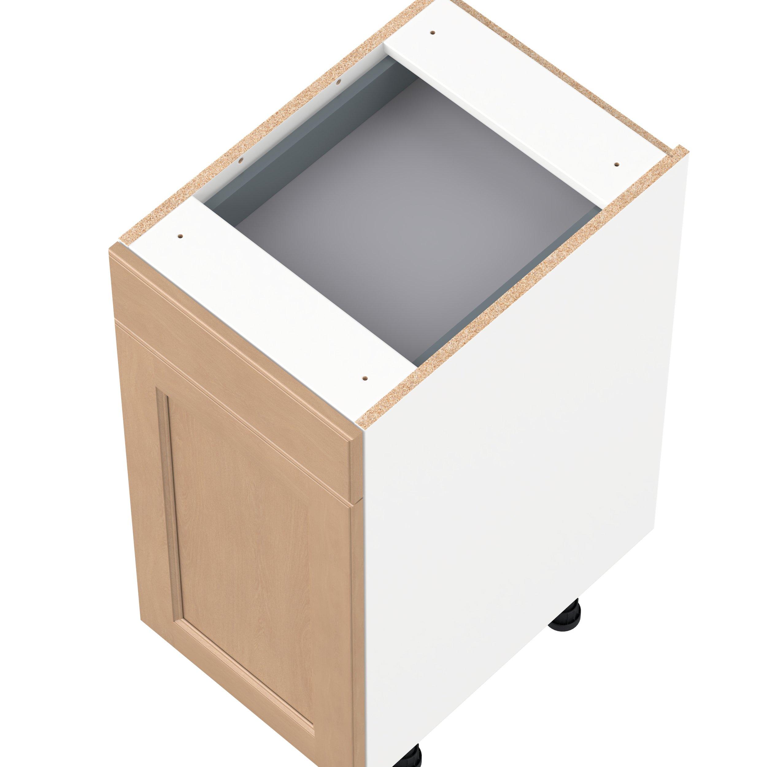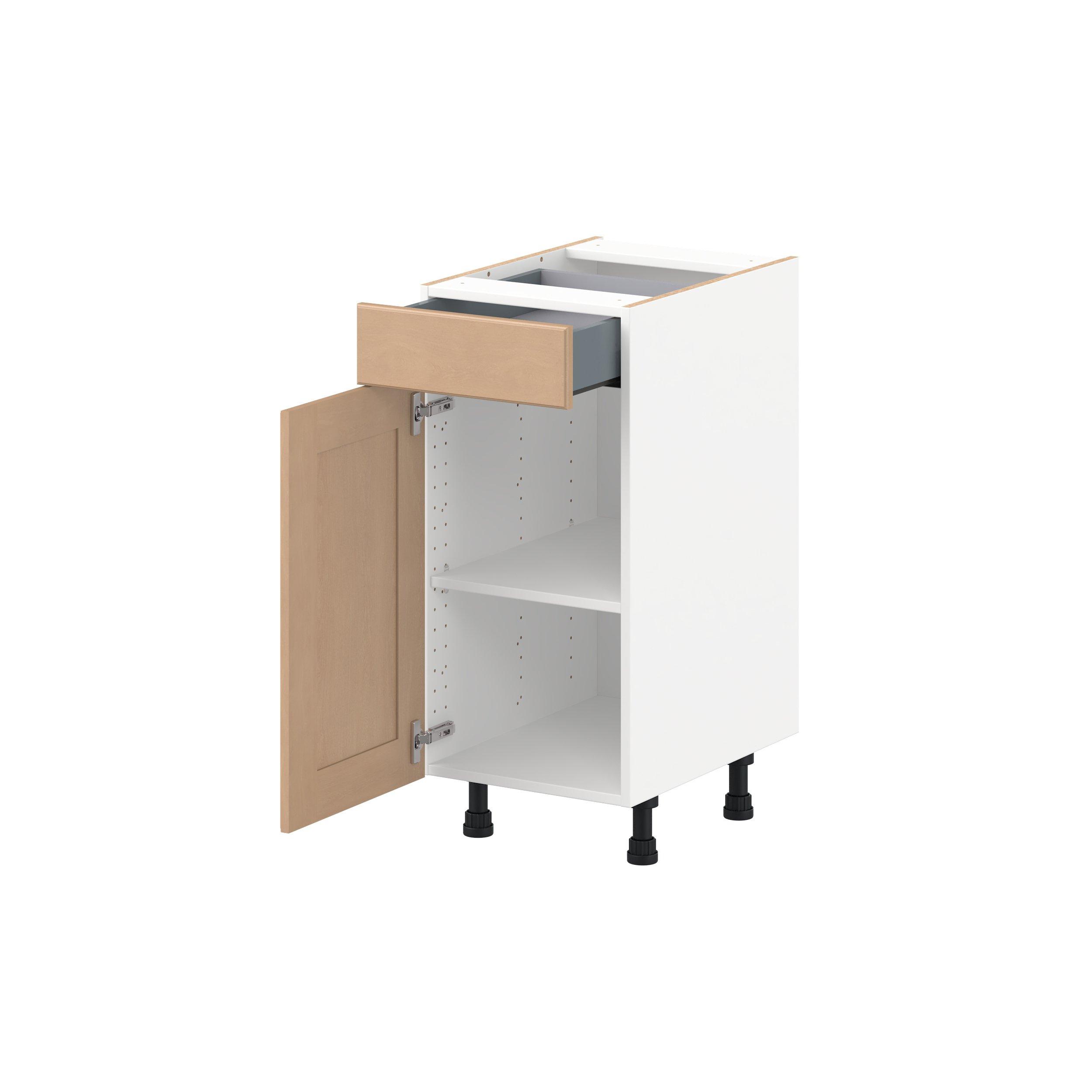 Experience the striking beauty of Sugarhill wide-rail shaker-inspired cabinets. Available in a warm and light sugar cookie finish, this collection will add warmth and lasting elegance to any space. Crafted from one-piece MDF Studio Design Collection Sugarhill 15 in. Stained Sugar Cookie Vanity Door and Drawer Base Cabinet is designed to resist hairline cracks while the easy-to-clean finish stands up to stains and moisture. Featuring 5-piece doors and dovetail drawer joints, these cabinets offer durability and elegance. This collection combines style with everyday storage solutions.