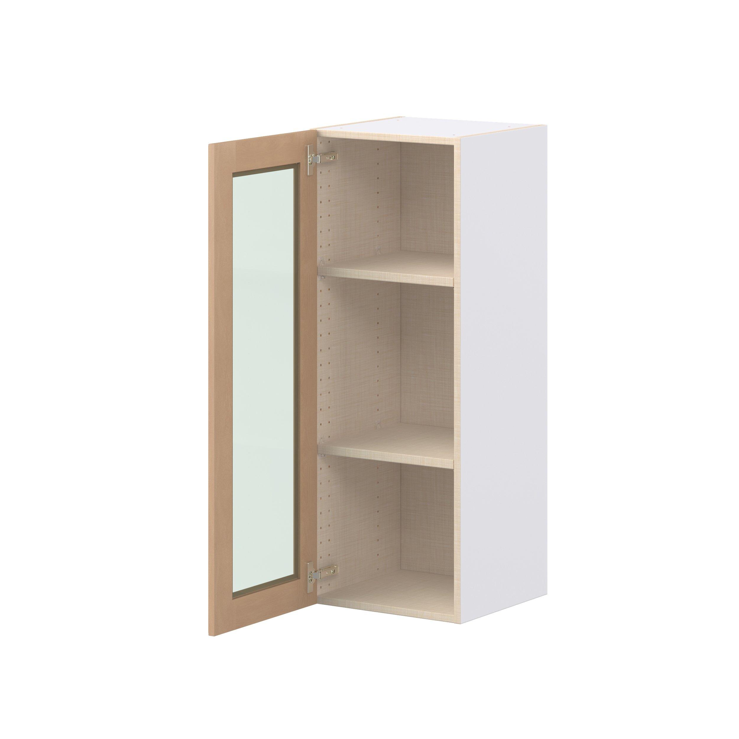 Experience the striking beauty of Sugarhill wide-rail shaker-inspired cabinets. Available in a warm and light sugar cookie finish, this collection will add warmth and lasting elegance to any space. Crafted from one-piece MDF Studio Design Collection Sugarhill 15 in. Stained Sugar Cookie Wall Cabinet with Glass Door is designed to resist hairline cracks while the easy-to-clean finish stands up to stains and moisture. Featuring 5-piece doors and dovetail drawer joints, these cabinets offer durability and elegance. This collection combines style with everyday storage solutions.