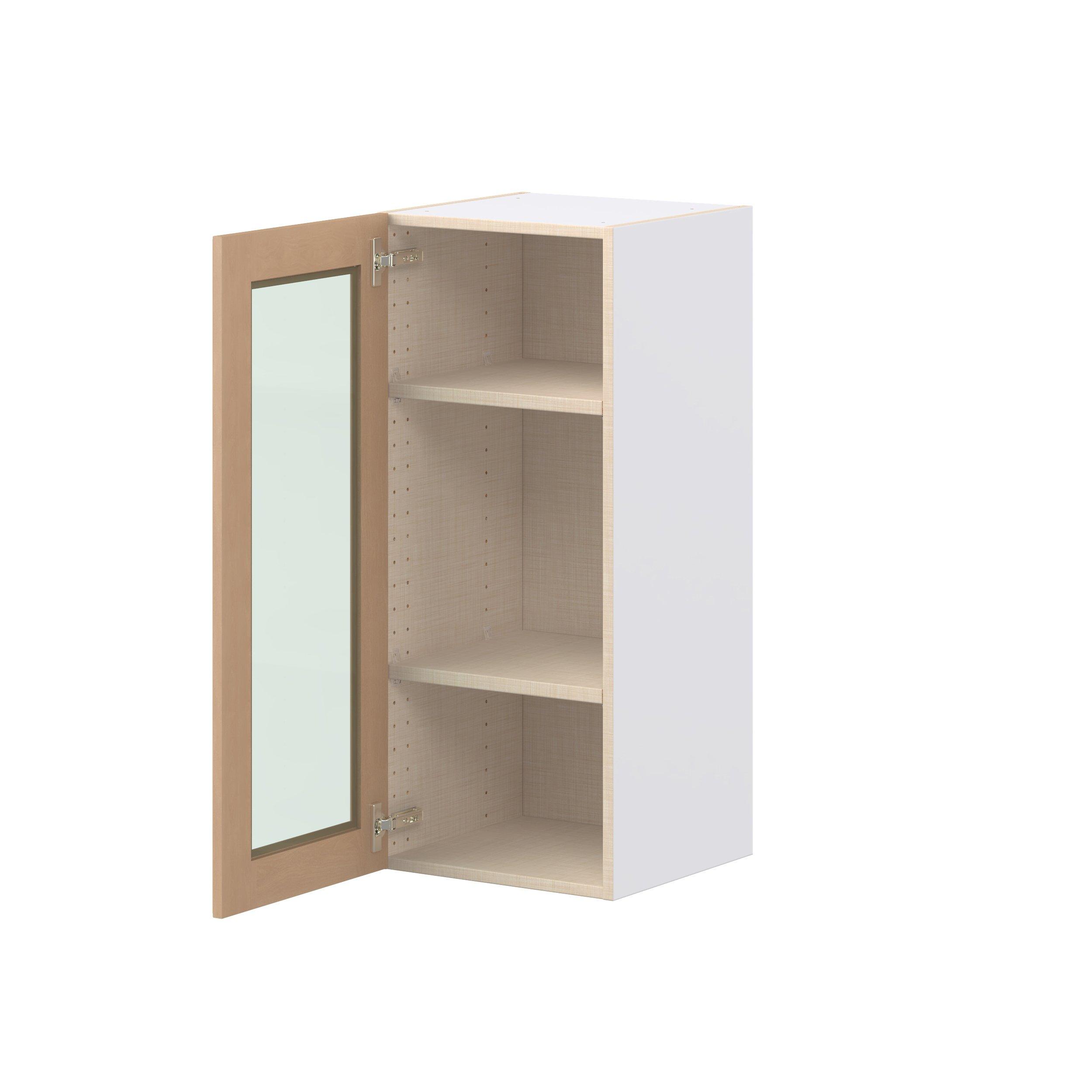 Experience the striking beauty of Sugarhill wide-rail shaker-inspired cabinets. Available in a warm and light sugar cookie finish, this collection will add warmth and lasting elegance to any space. Crafted from one-piece MDF Studio Design Collection Sugarhill 15 in. Stained Sugar Cookie Wall Cabinet with Glass Door is designed to resist hairline cracks while the easy-to-clean finish stands up to stains and moisture. Featuring 5-piece doors and dovetail drawer joints, these cabinets offer durability and elegance. This collection combines style with everyday storage solutions.