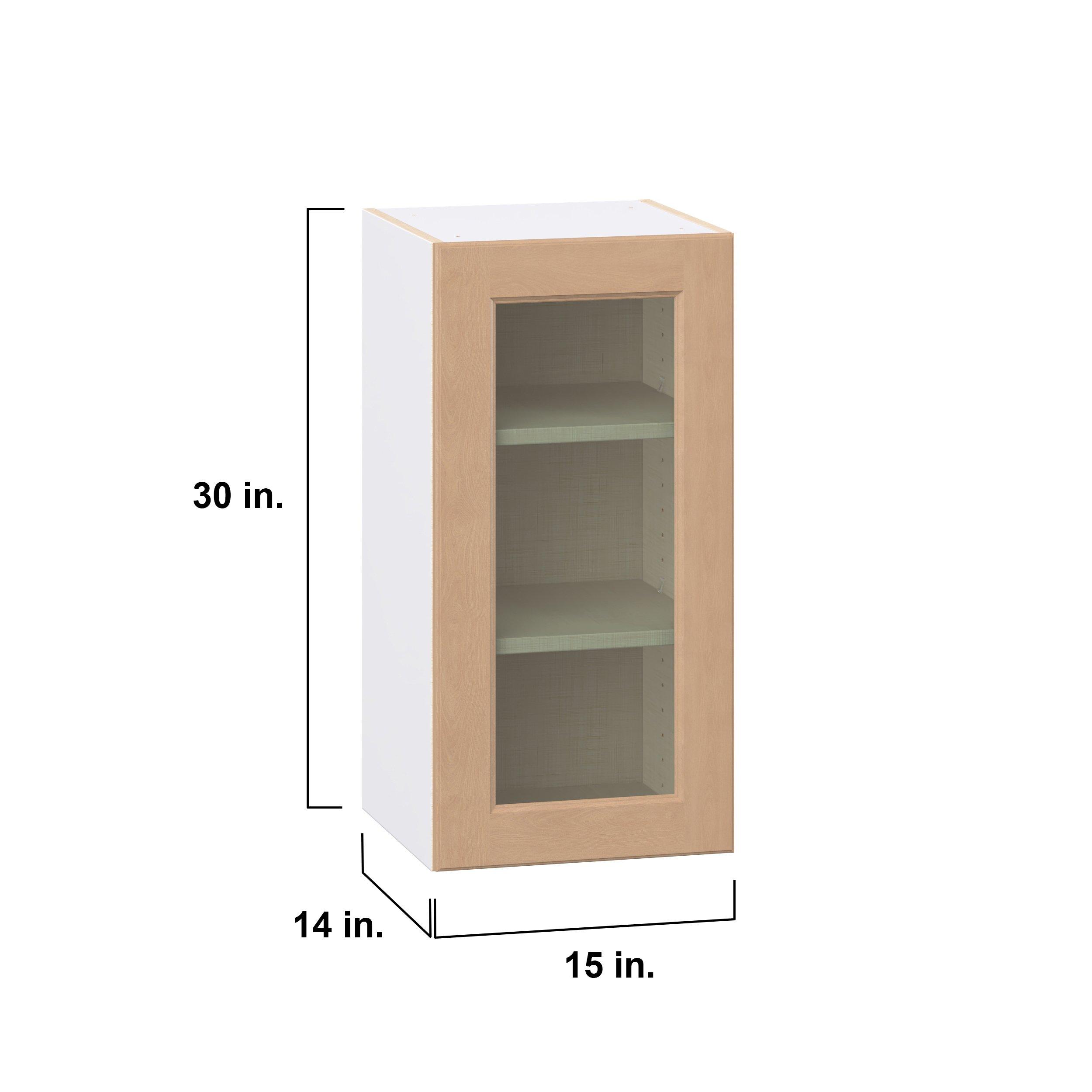 Experience the striking beauty of Sugarhill wide-rail shaker-inspired cabinets. Available in a warm and light sugar cookie finish, this collection will add warmth and lasting elegance to any space. Crafted from one-piece MDF Studio Design Collection Sugarhill 15 in. Stained Sugar Cookie Wall Cabinet with Glass Door is designed to resist hairline cracks while the easy-to-clean finish stands up to stains and moisture. Featuring 5-piece doors and dovetail drawer joints, these cabinets offer durability and elegance. This collection combines style with everyday storage solutions.
