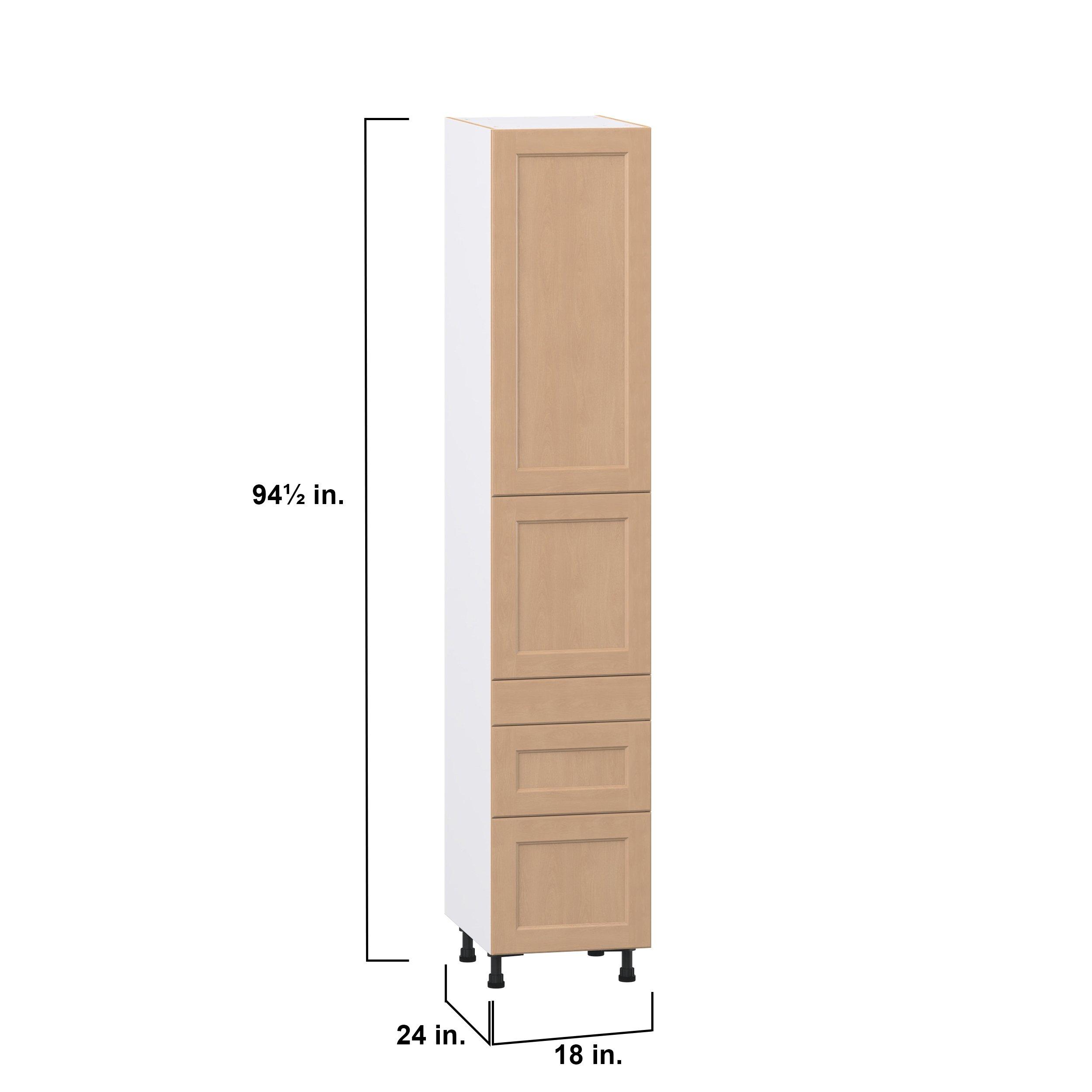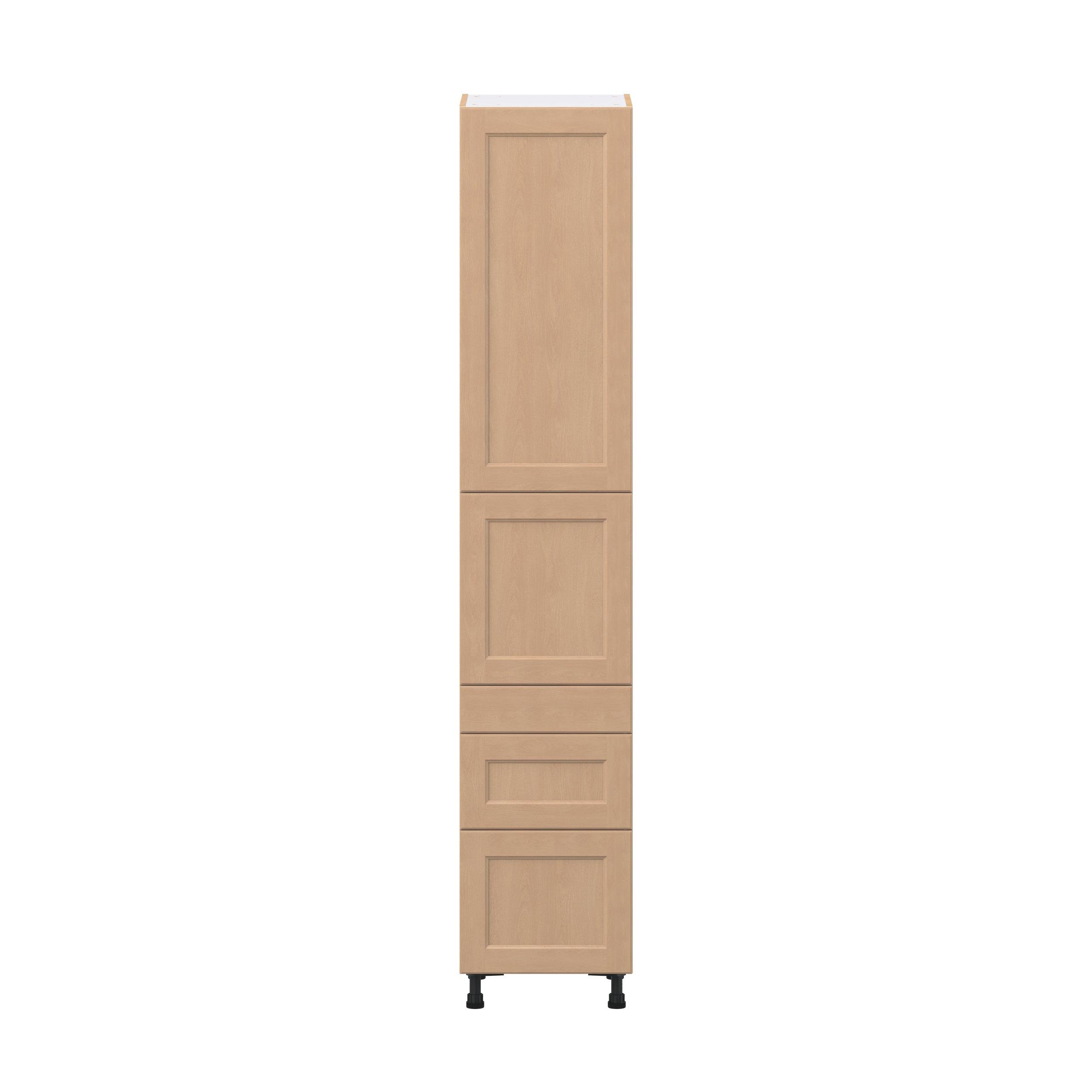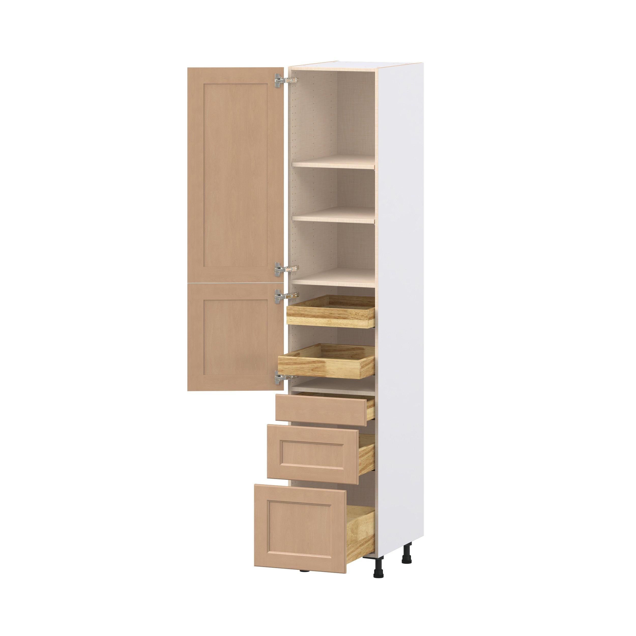 Experience the striking beauty of Sugarhill wide-rail shaker-inspired cabinets. Available in a warm and light sugar cookie finish, this collection will add warmth and lasting elegance to any space. Crafted from one-piece MDF Studio Design Collection Sugarhill 18 in. Stained Sugar Cookie Door and Drawer Pantry Cabinet with Inner Pull-Out is designed to resist hairline cracks while the easy-to-clean finish stands up to stains and moisture. Featuring 5-piece doors and dovetail drawer joints, these cabinets offer durability and elegance. This collection combines style with everyday storage solutions.