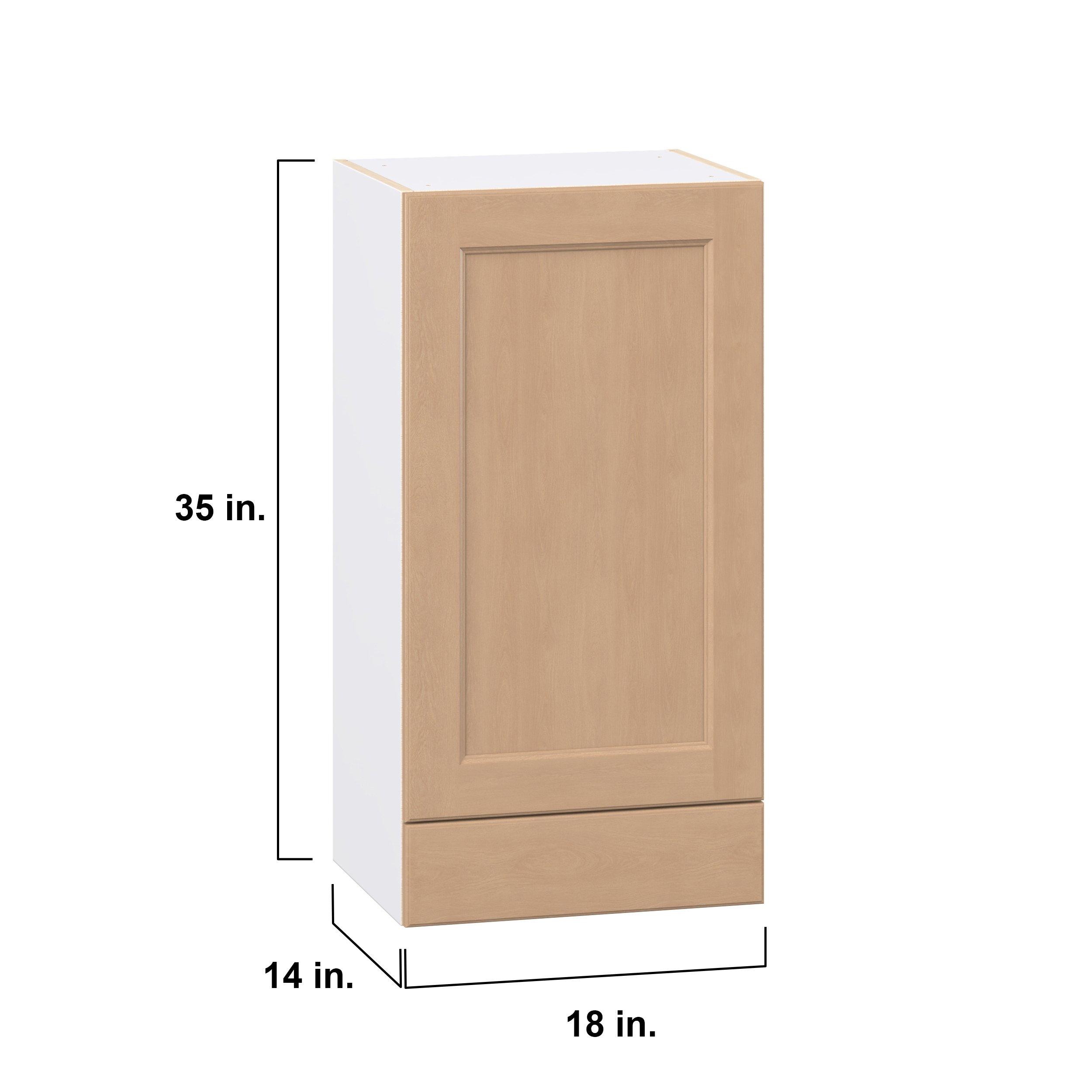 Experience the striking beauty of Sugarhill wide-rail shaker-inspired cabinets. Available in a warm and light sugar cookie finish, this collection will add warmth and lasting elegance to any space. Crafted from one-piece MDF Studio Design Collection Sugarhill 18 in. Stained Sugar Cookie Door and Drawer Wall Cabinet is designed to resist hairline cracks while the easy-to-clean finish stands up to stains and moisture. Featuring 5-piece doors and dovetail drawer joints, these cabinets offer durability and elegance. This collection combines style with everyday storage solutions.