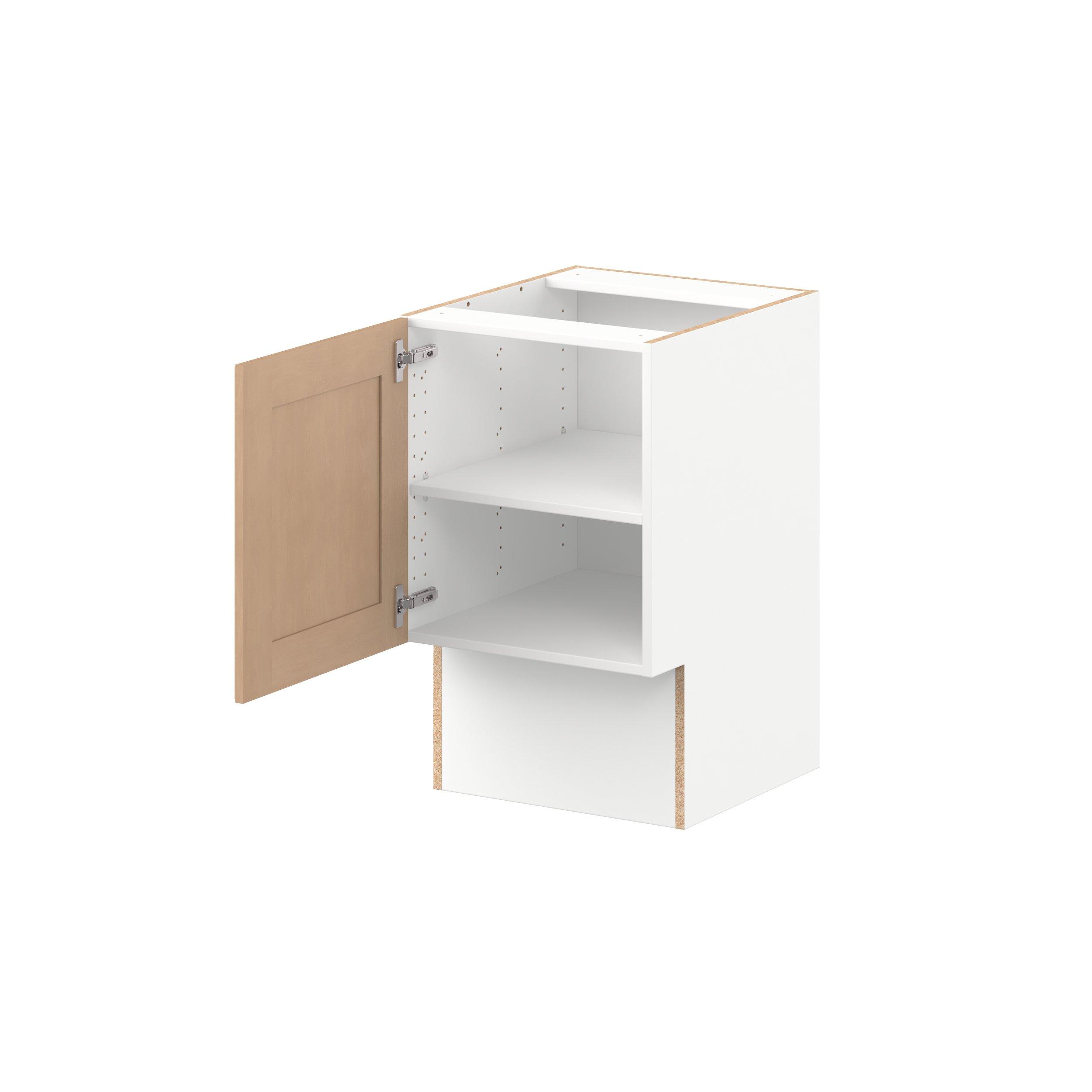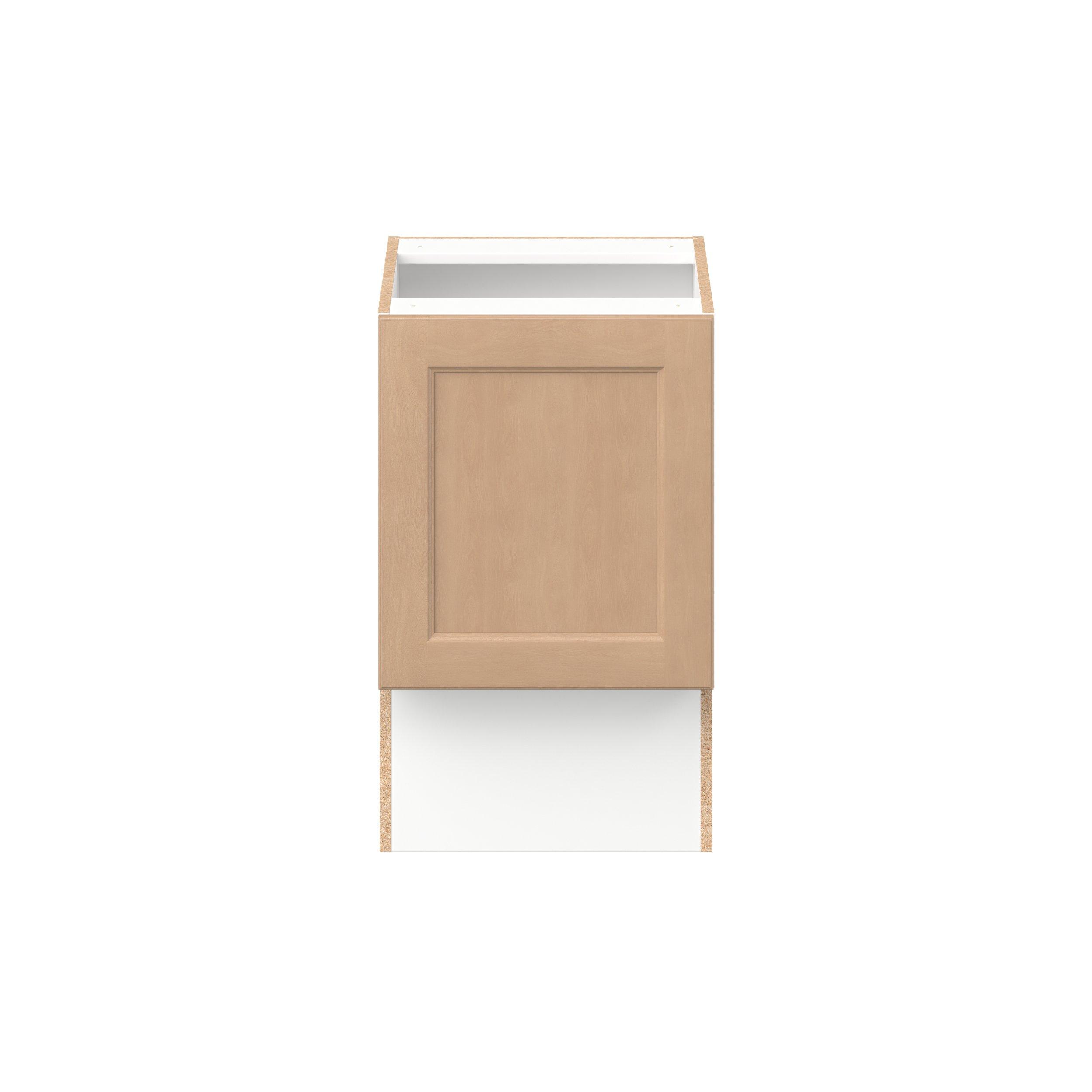 Experience the striking beauty of Sugarhill wide-rail shaker-inspired cabinets. Available in a warm and light sugar cookie finish, this collection will add warmth and lasting elegance to any space. Crafted from one-piece MDF Studio Design Collection Sugarhill 18 in. Stained Sugar Cookie Vanity Base Cabinet is designed to resist hairline cracks while the easy-to-clean finish stands up to stains and moisture. Featuring 5-piece doors and dovetail drawer joints, these cabinets offer durability and elegance. This collection combines style with everyday storage solutions.