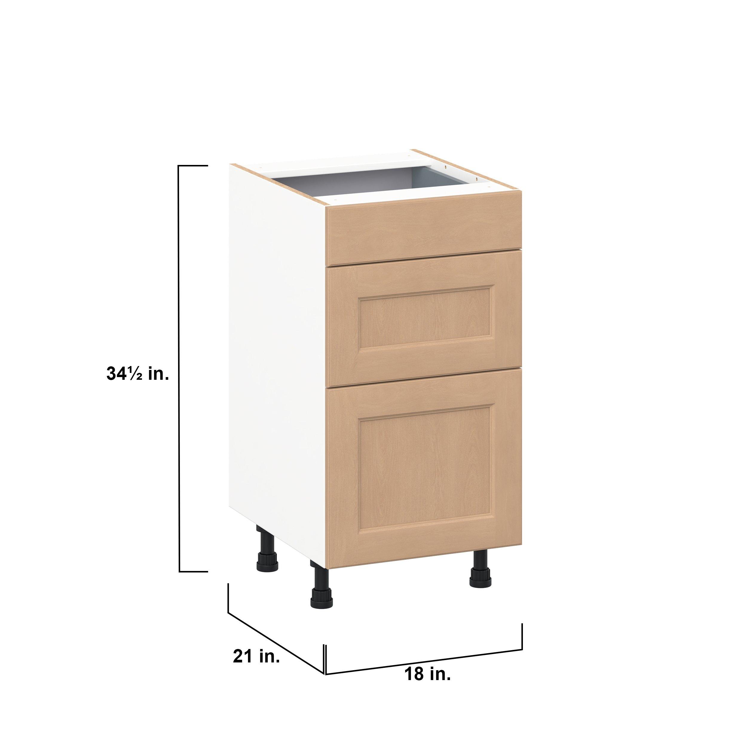 Experience the striking beauty of Sugarhill wide-rail shaker-inspired cabinets. Available in a warm and light sugar cookie finish, this collection will add warmth and lasting elegance to any space. Crafted from one-piece MDF Studio Design Collection Sugarhill 18 in. Stained Sugar Cookie Vanity Drawer Base Cabinet is designed to resist hairline cracks while the easy-to-clean finish stands up to stains and moisture. Featuring 5-piece doors and dovetail drawer joints, these cabinets offer durability and elegance. This collection combines style with everyday storage solutions.