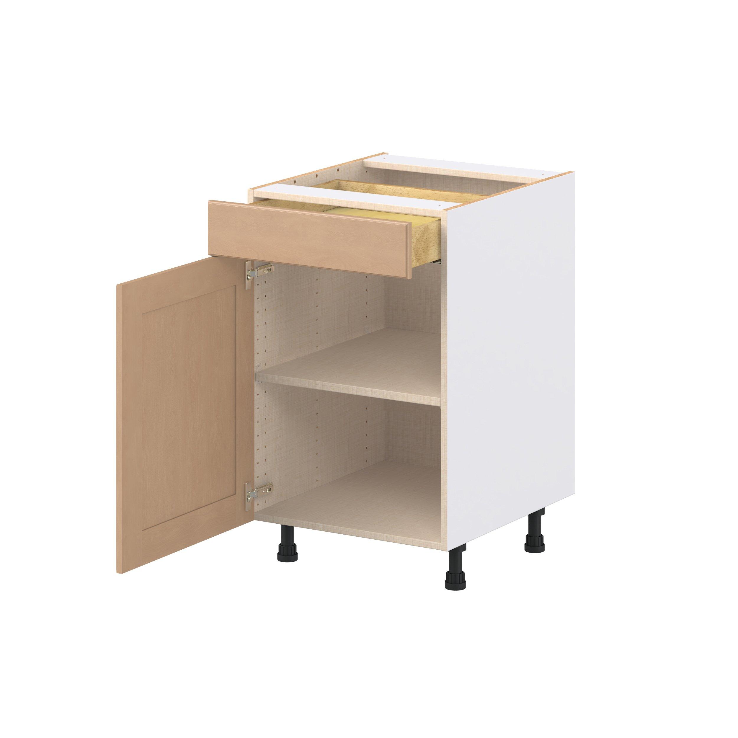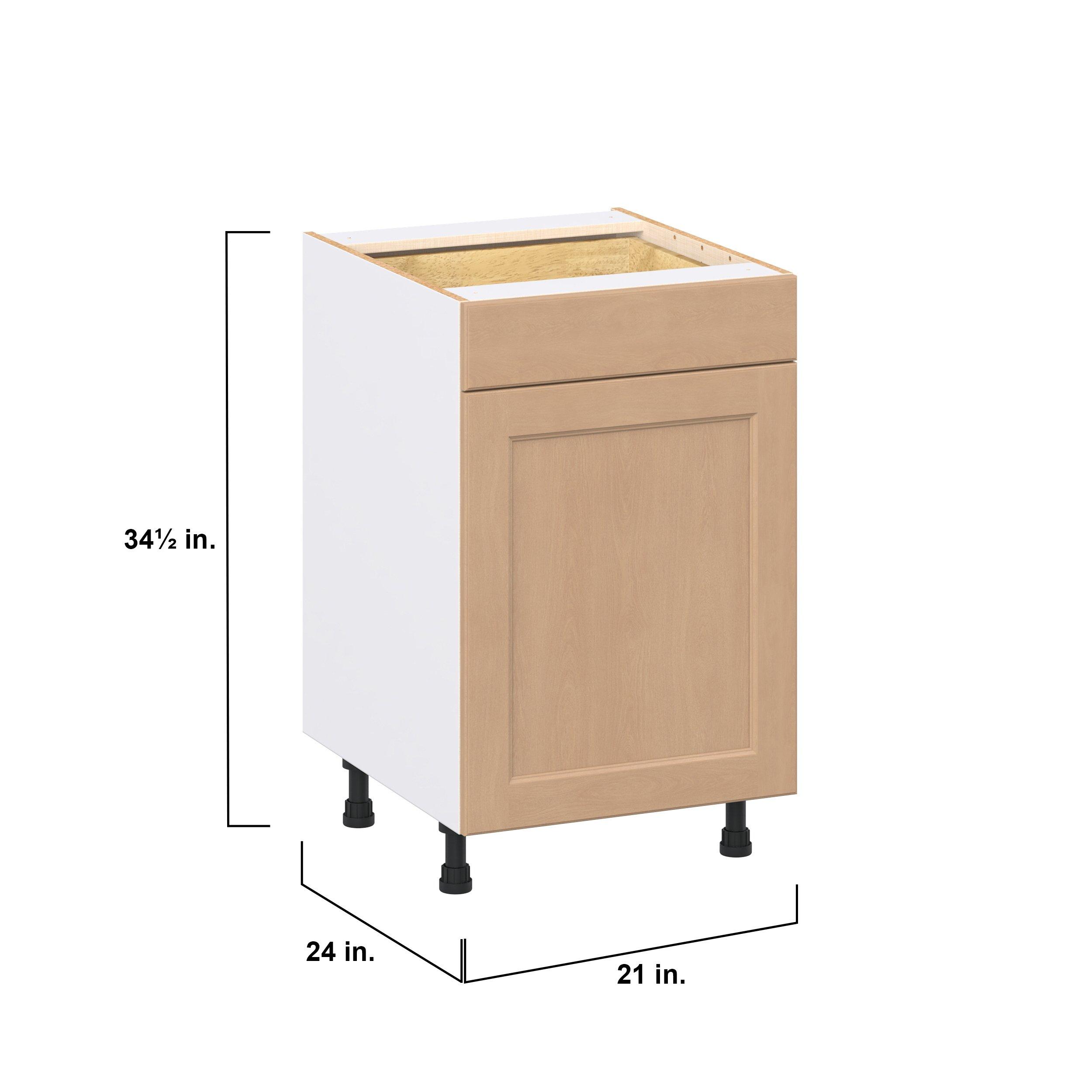Experience the striking beauty of Sugarhill wide-rail shaker-inspired cabinets. Available in a warm and light sugar cookie finish, this collection will add warmth and lasting elegance to any space. Crafted from one-piece MDF Studio Design Collection Sugarhill 21 in. Stained Sugar Cookie Door and Drawer Base Cabinet is designed to resist hairline cracks while the easy-to-clean finish stands up to stains and moisture. Featuring 5-piece doors and dovetail drawer joints, these cabinets offer durability and elegance. This collection combines style with everyday storage solutions.