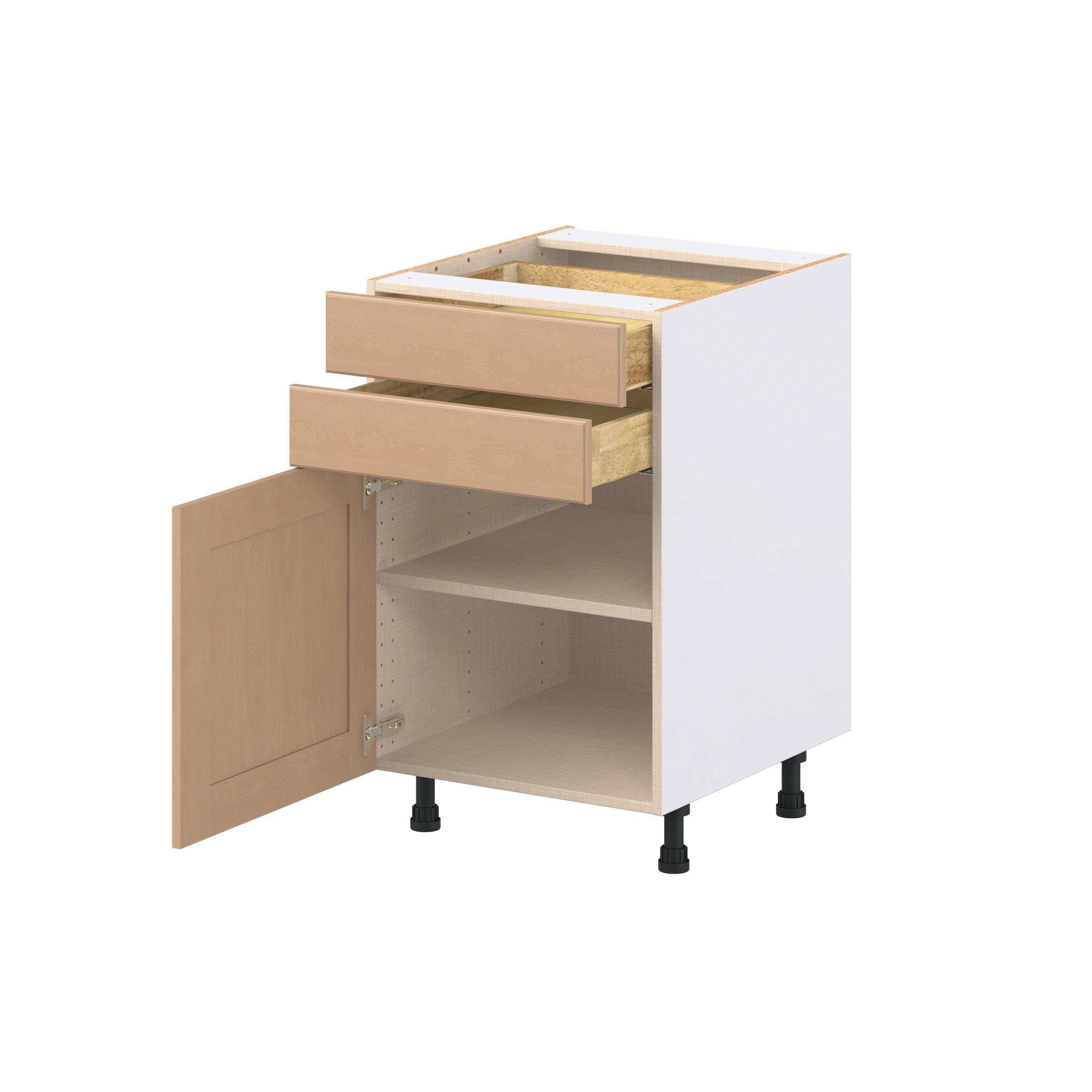 Experience the striking beauty of Sugarhill wide-rail shaker-inspired cabinets. Available in a warm and light sugar cookie finish, this collection will add warmth and lasting elegance to any space. Crafted from one-piece MDF Studio Design Collection Sugarhill 21 in. Stained Sugar Cookie Door and Drawer Base Cabinet is designed to resist hairline cracks while the easy-to-clean finish stands up to stains and moisture. Featuring 5-piece doors and dovetail drawer joints, these cabinets offer durability and elegance. This collection combines style with everyday storage solutions.