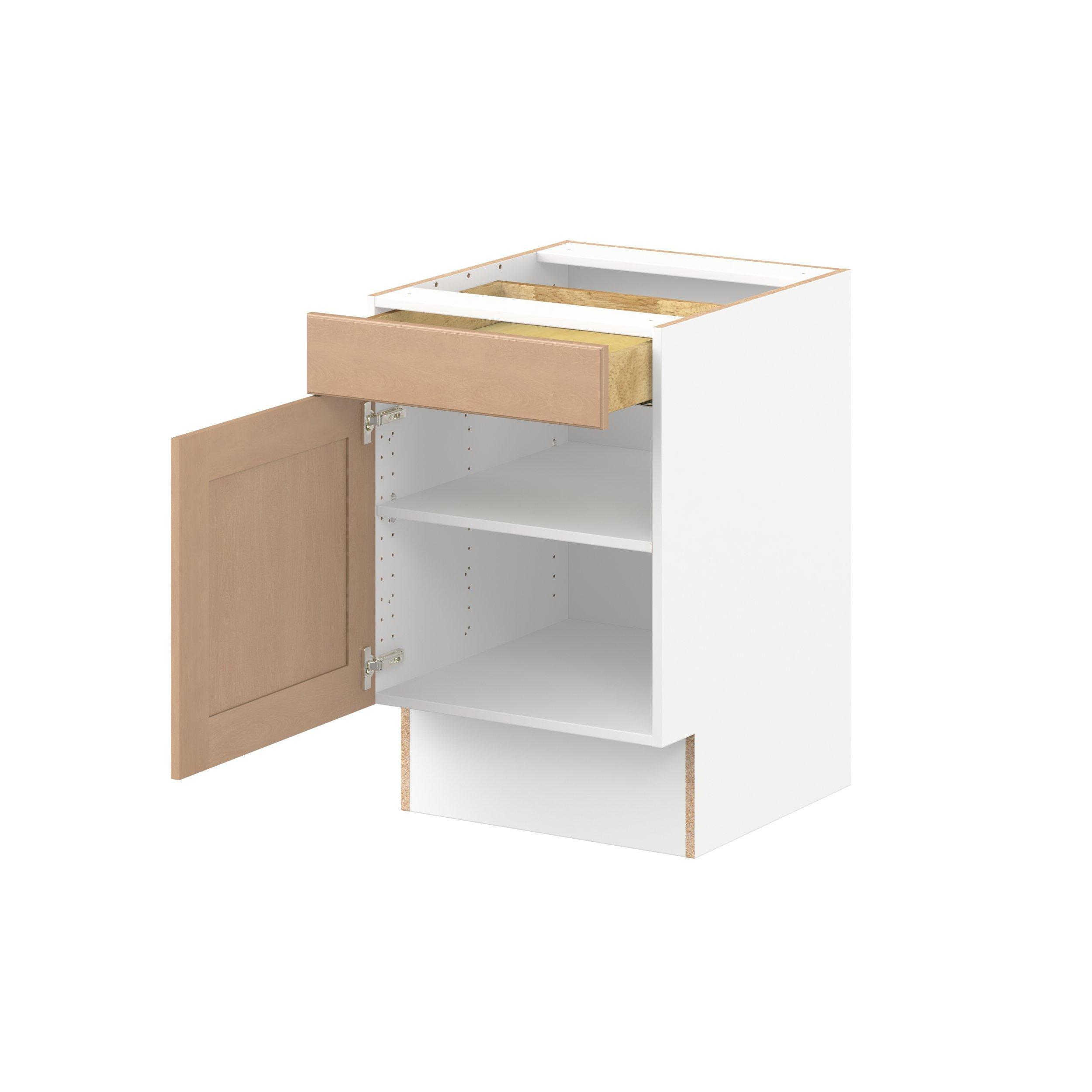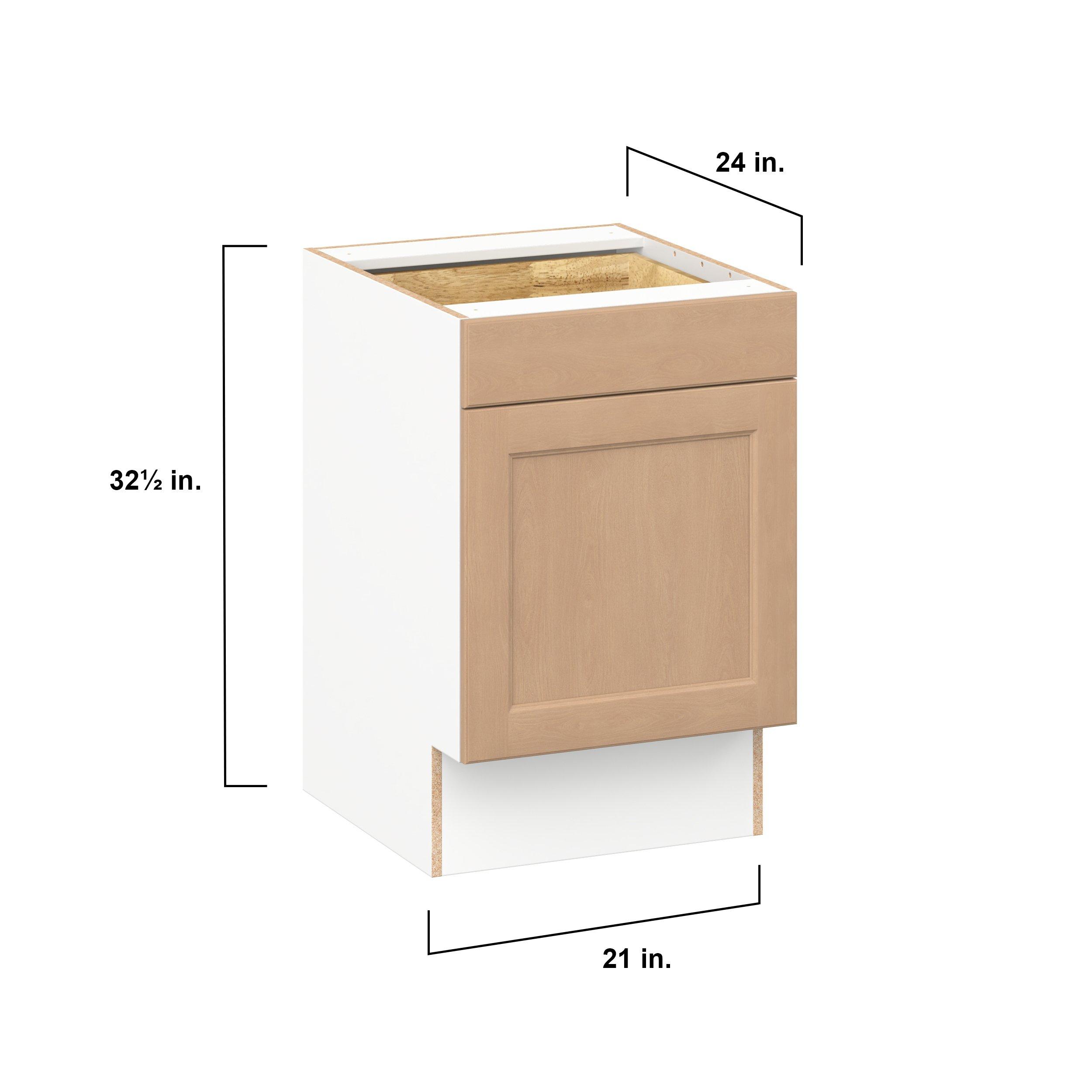 Experience the striking beauty of Sugarhill wide-rail shaker-inspired cabinets. Available in a warm and light sugar cookie finish, this collection will add warmth and lasting elegance to any space. Crafted from one-piece MDF Studio Design Collection Sugarhill 21 in. Stained Sugar Cookie Door and Drawer Base Cabinet is designed to resist hairline cracks while the easy-to-clean finish stands up to stains and moisture. Featuring 5-piece doors and dovetail drawer joints, these cabinets offer durability and elegance. This collection combines style with everyday storage solutions.