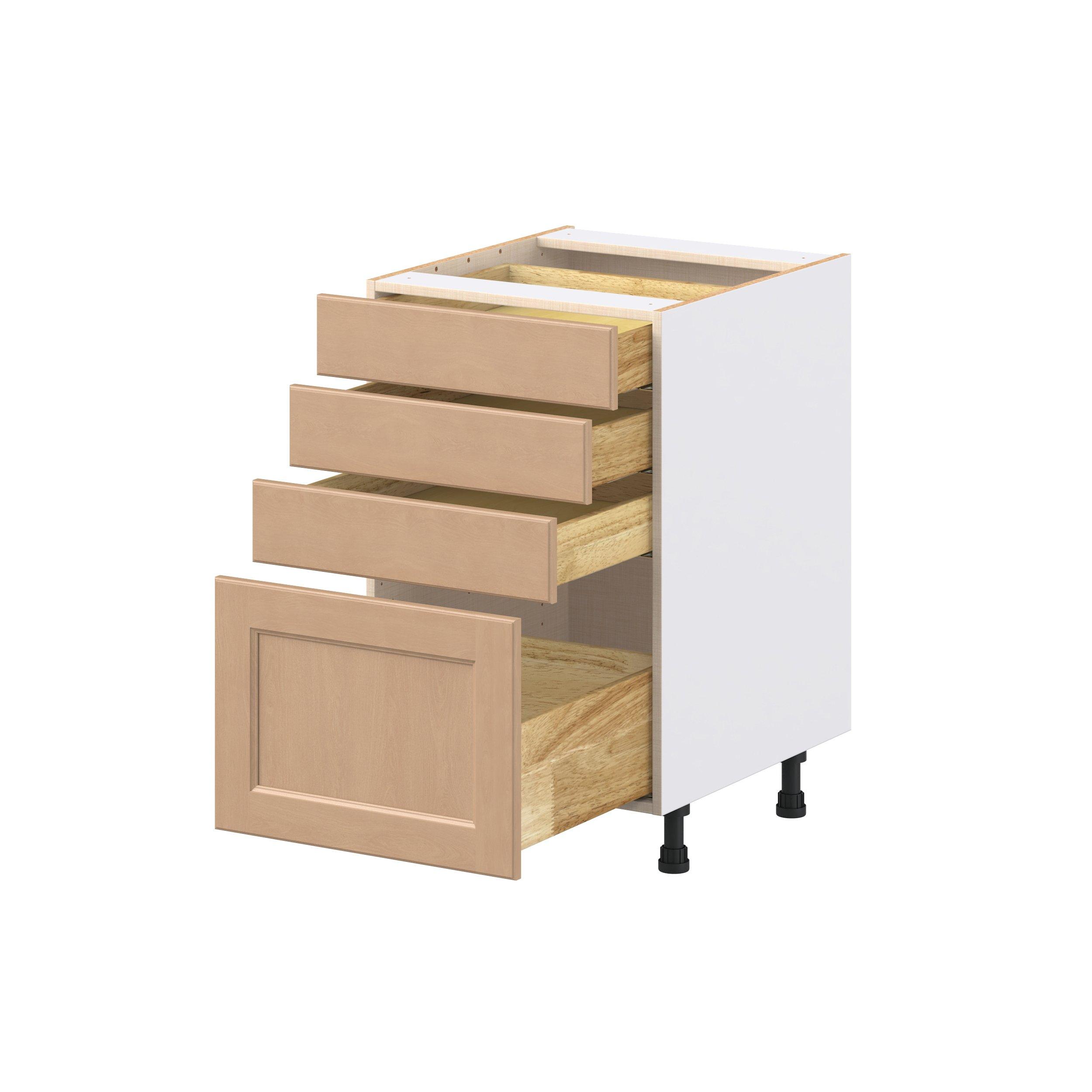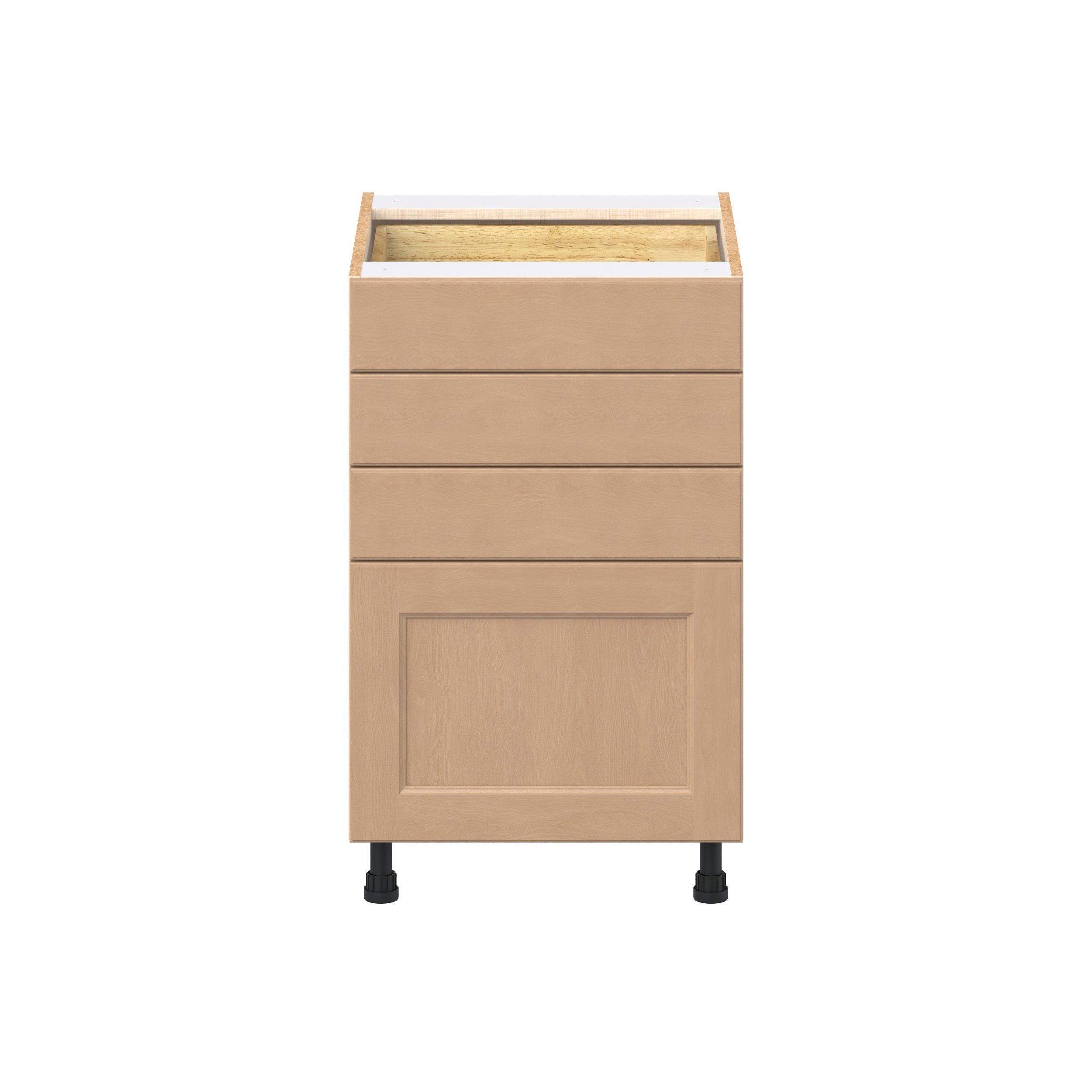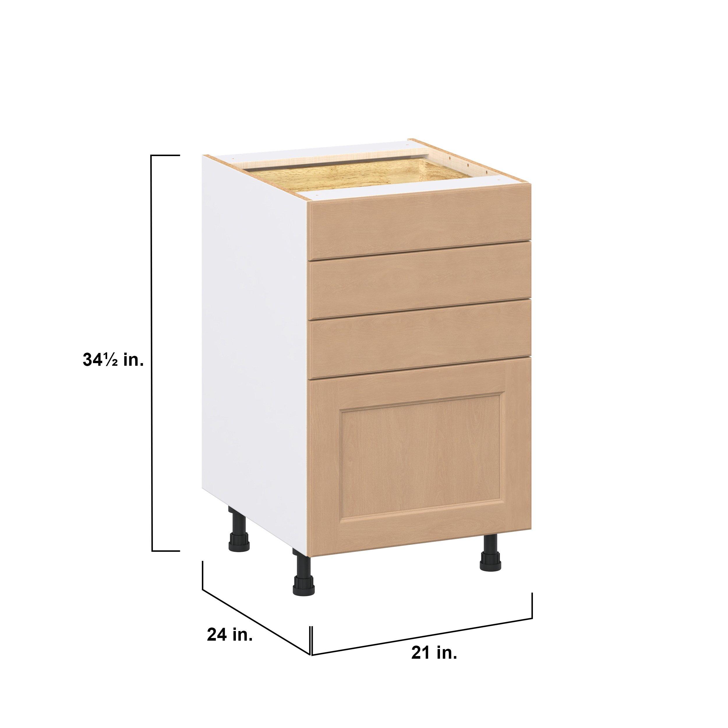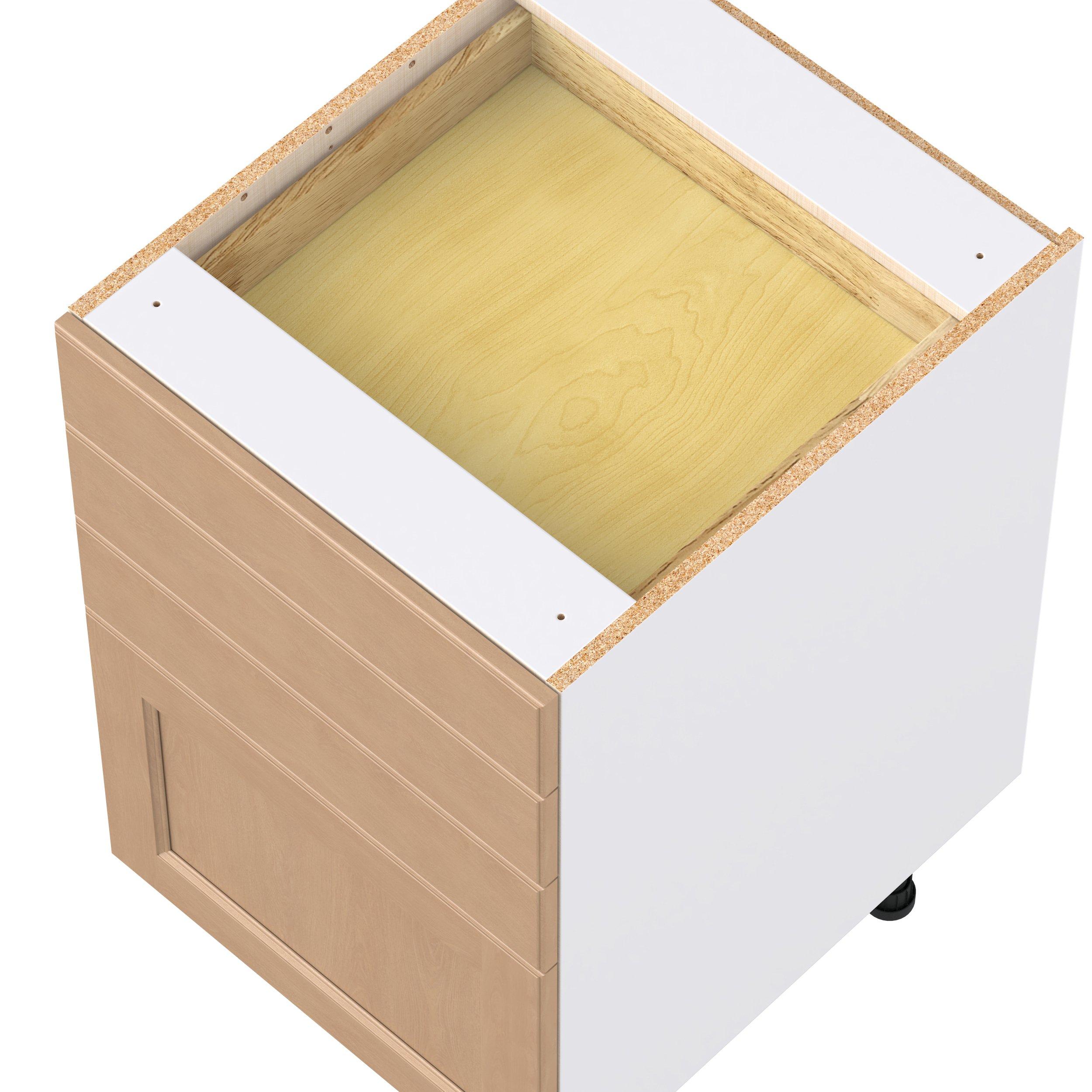 Experience the striking beauty of Sugarhill wide-rail shaker-inspired cabinets. Available in a warm and light sugar cookie finish, this collection will add warmth and lasting elegance to any space. Crafted from one-piece MDF Studio Design Collection Sugarhill 21 in. Stained Sugar Cookie Drawer Base Cabinet is designed to resist hairline cracks while the easy-to-clean finish stands up to stains and moisture. Featuring 5-piece doors and dovetail drawer joints, these cabinets offer durability and elegance. This collection combines style with everyday storage solutions.