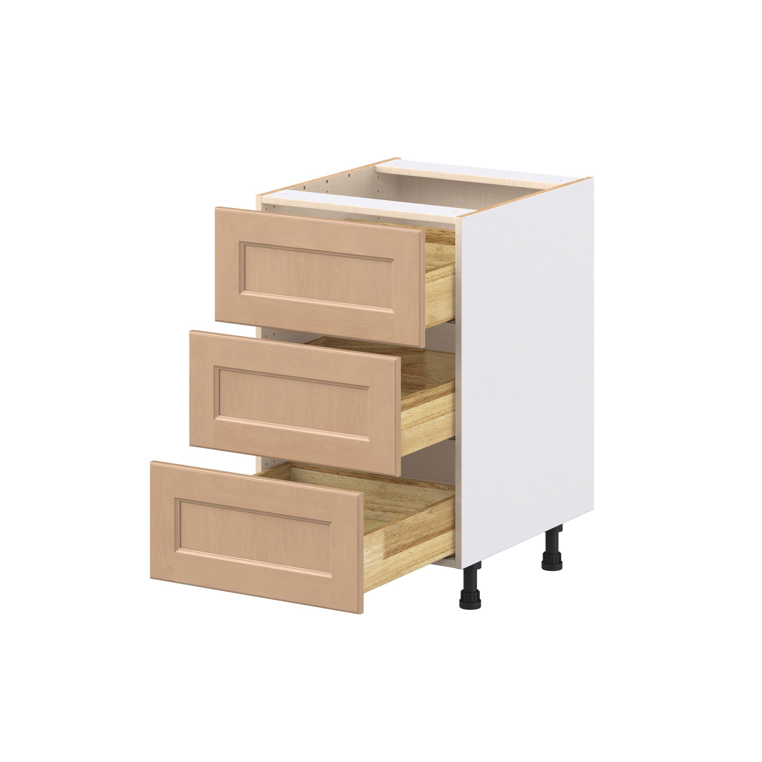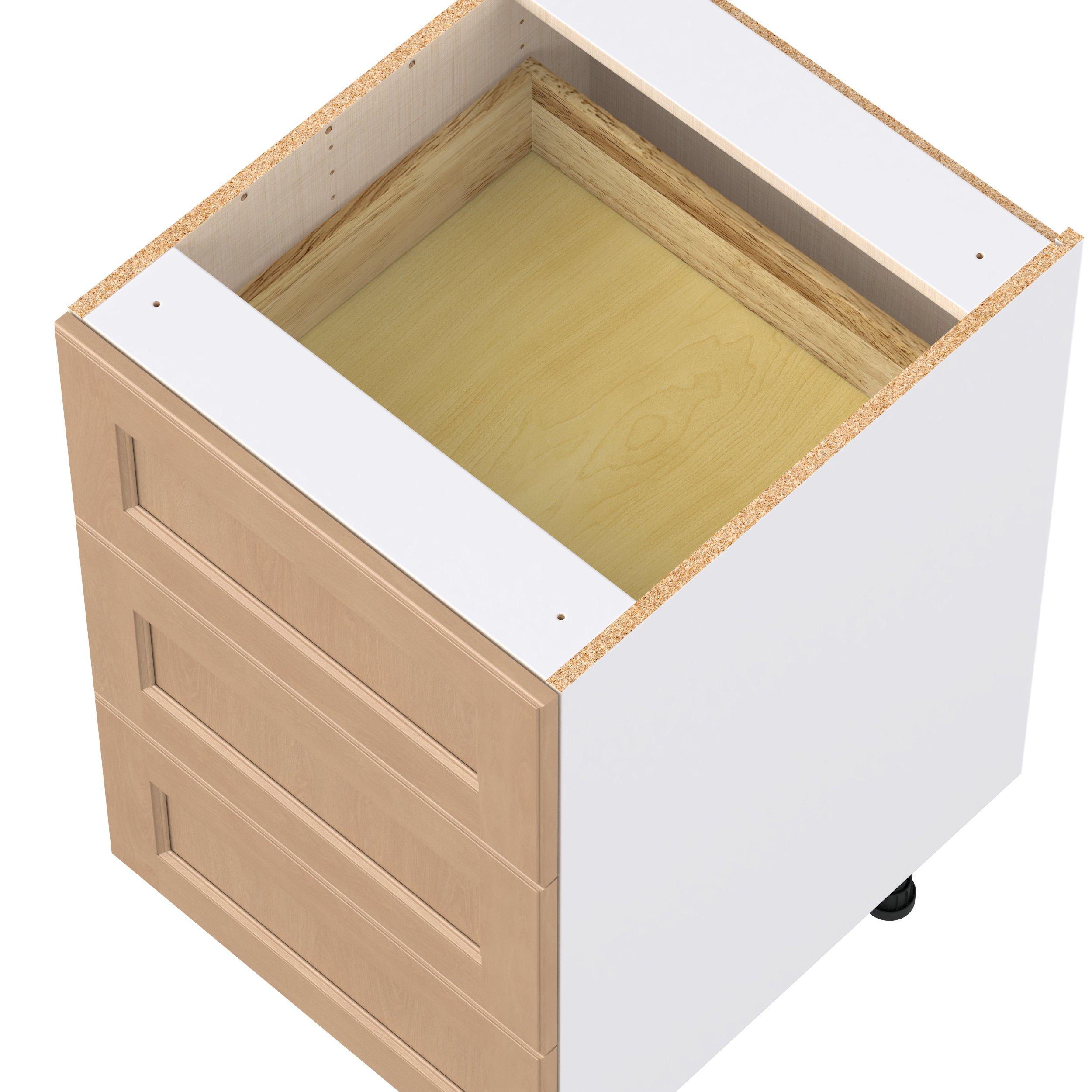 Experience the striking beauty of Sugarhill wide-rail shaker-inspired cabinets. Available in a warm and light sugar cookie finish, this collection will add warmth and lasting elegance to any space. Crafted from one-piece MDF Studio Design Collection Sugarhill 21 in. Stained Sugar Cookie Drawer Base Cabinet is designed to resist hairline cracks while the easy-to-clean finish stands up to stains and moisture. Featuring 5-piece doors and dovetail drawer joints, these cabinets offer durability and elegance. This collection combines style with everyday storage solutions.