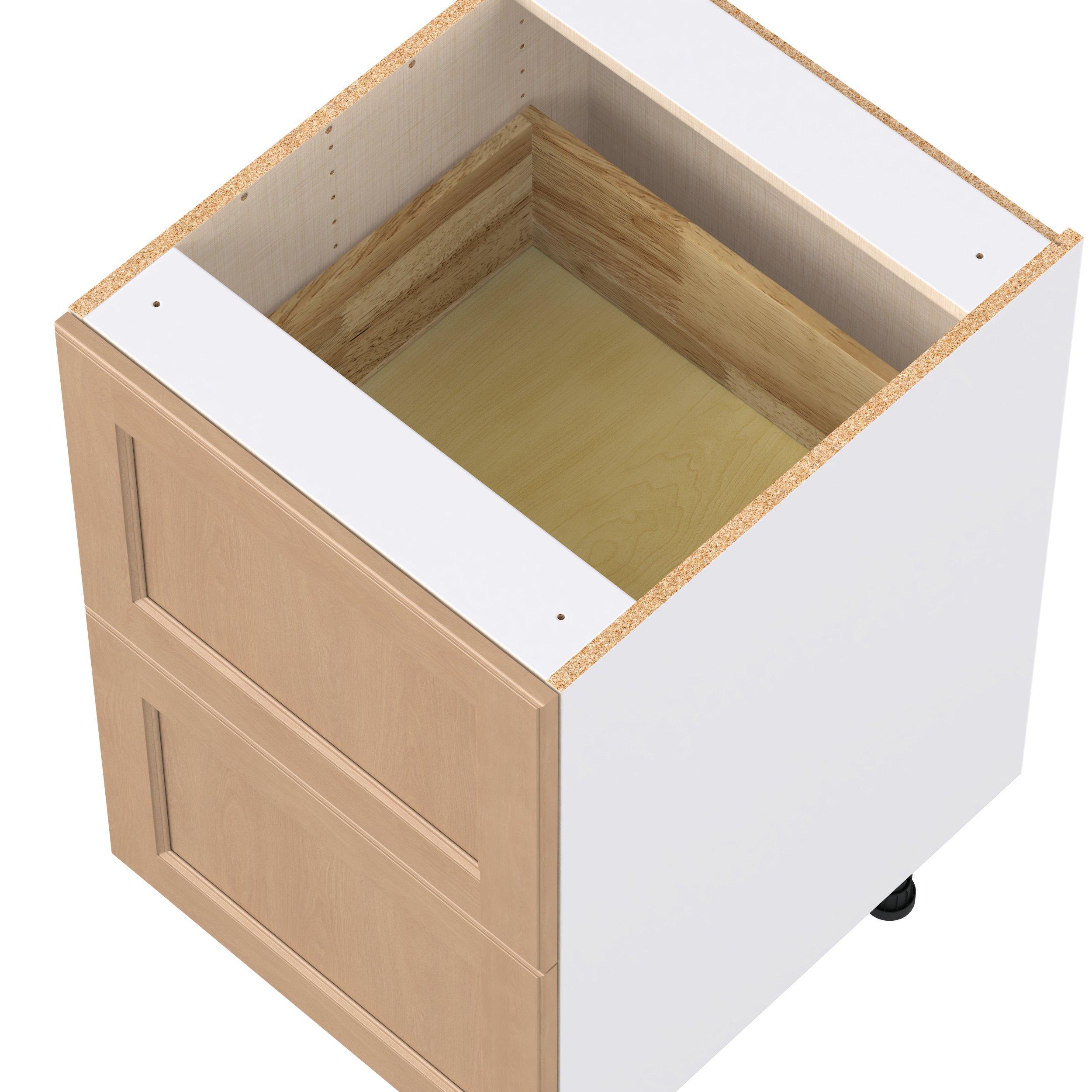 Experience the striking beauty of Sugarhill wide-rail shaker-inspired cabinets. Available in a warm and light sugar cookie finish, this collection will add warmth and lasting elegance to any space. Crafted from one-piece MDF Studio Design Collection Sugarhill 21 in. Stained Sugar Cookie Drawer Base Cabinet is designed to resist hairline cracks while the easy-to-clean finish stands up to stains and moisture. Featuring 5-piece doors and dovetail drawer joints, these cabinets offer durability and elegance. This collection combines style with everyday storage solutions.