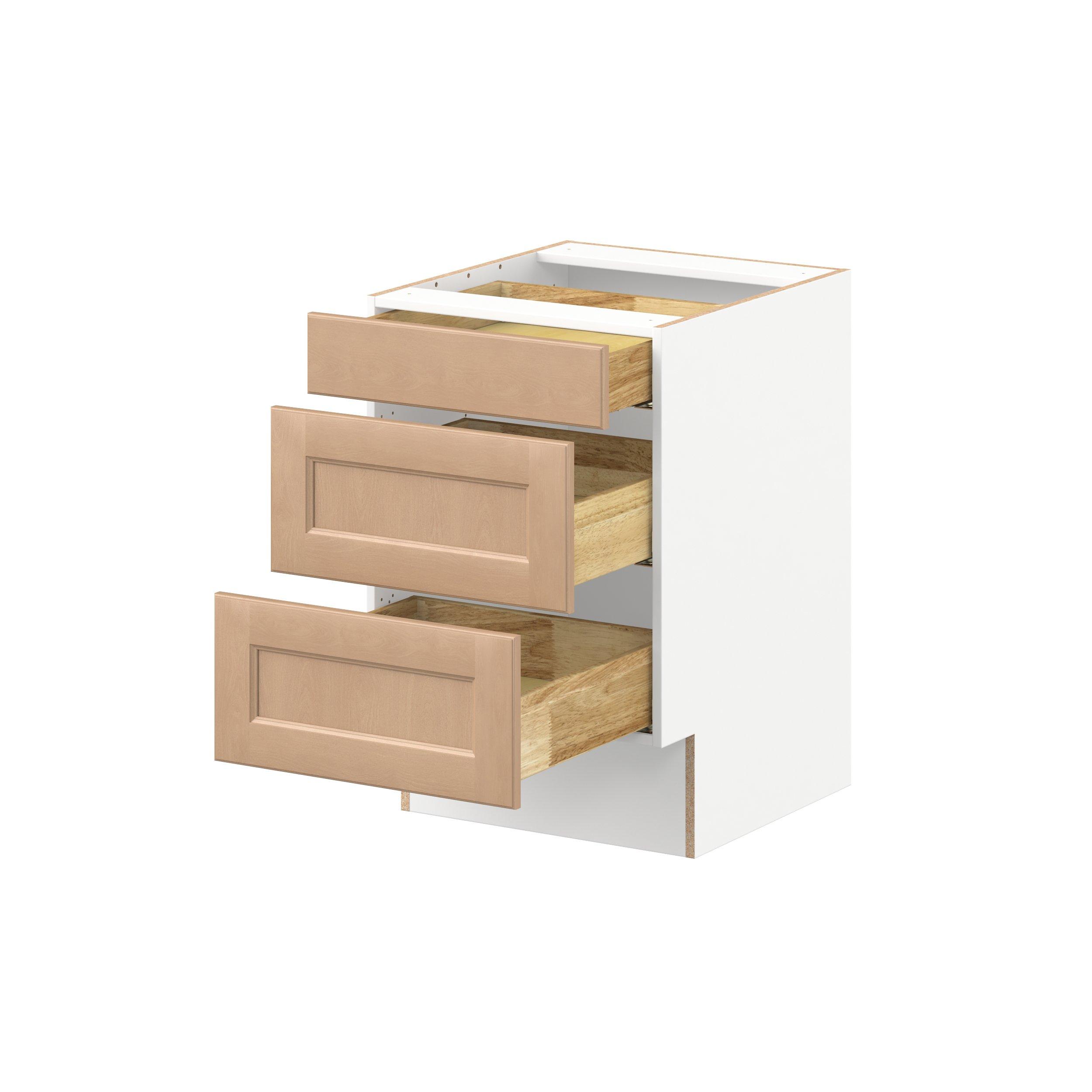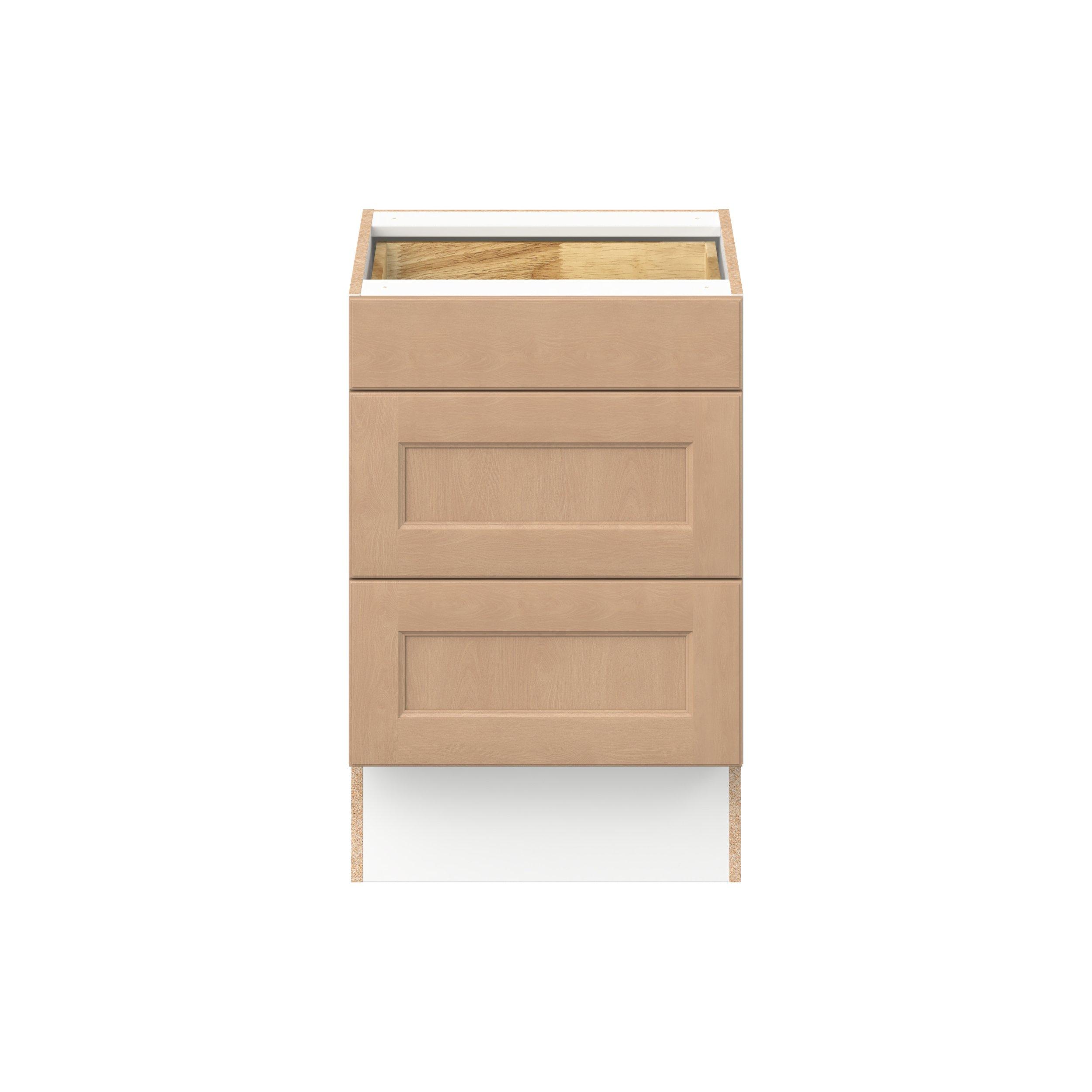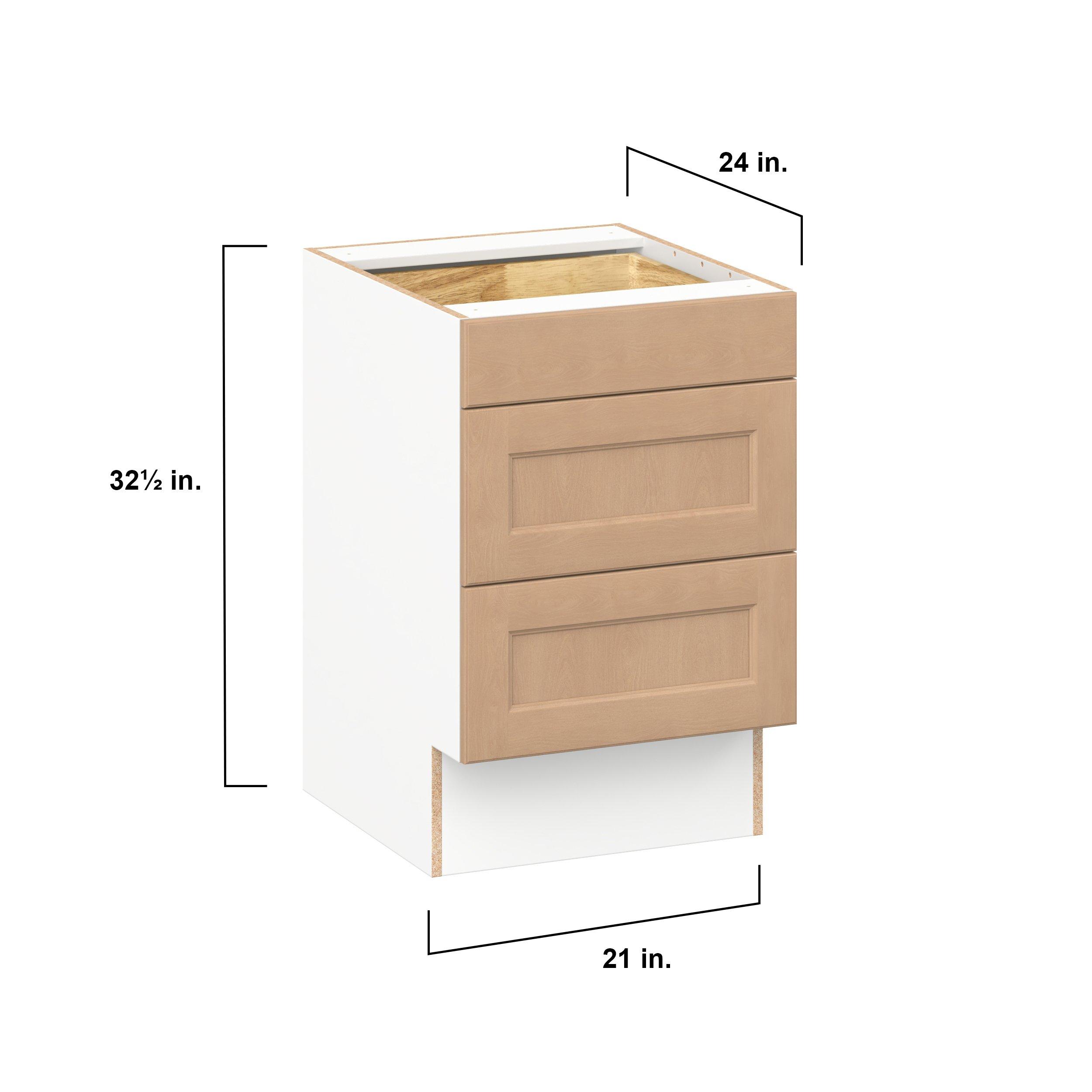 Experience the striking beauty of Sugarhill wide-rail shaker-inspired cabinets. Available in a warm and light sugar cookie finish, this collection will add warmth and lasting elegance to any space. Crafted from one-piece MDF Studio Design Collection Sugarhill 21 in. Stained Sugar Cookie Drawer Base Cabinet is designed to resist hairline cracks while the easy-to-clean finish stands up to stains and moisture. Featuring 5-piece doors and dovetail drawer joints, these cabinets offer durability and elegance. This collection combines style with everyday storage solutions.