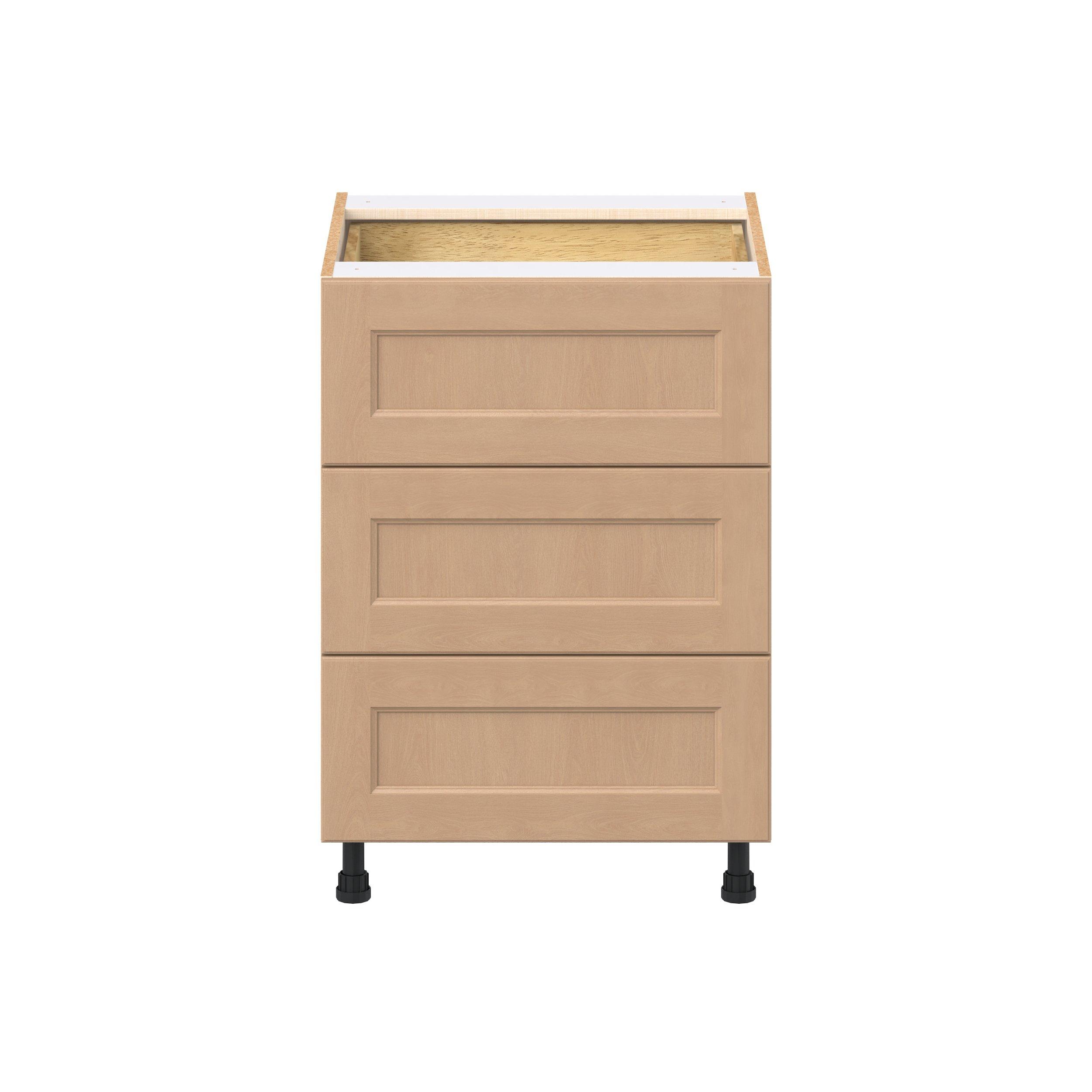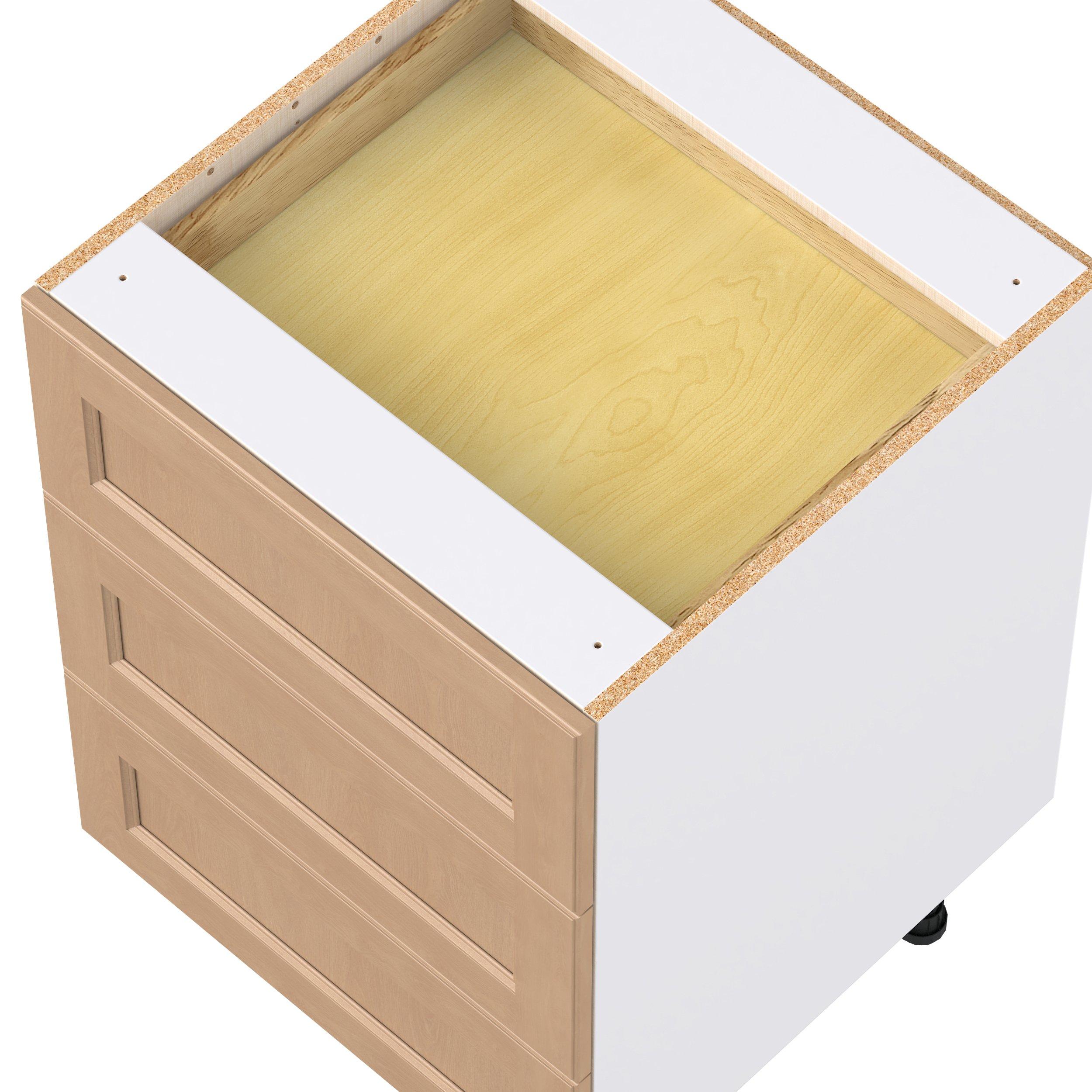 Experience the striking beauty of Sugarhill wide-rail shaker-inspired cabinets. Available in a warm and light sugar cookie finish, this collection will add warmth and lasting elegance to any space. Crafted from one-piece MDF Studio Design Collection Sugarhill 24 in. Stained Sugar Cookie Base Cabinet with Inner Pull-Out Drawer is designed to resist hairline cracks while the easy-to-clean finish stands up to stains and moisture. Featuring 5-piece doors and dovetail drawer joints, these cabinets offer durability and elegance. This collection combines style with everyday storage solutions.