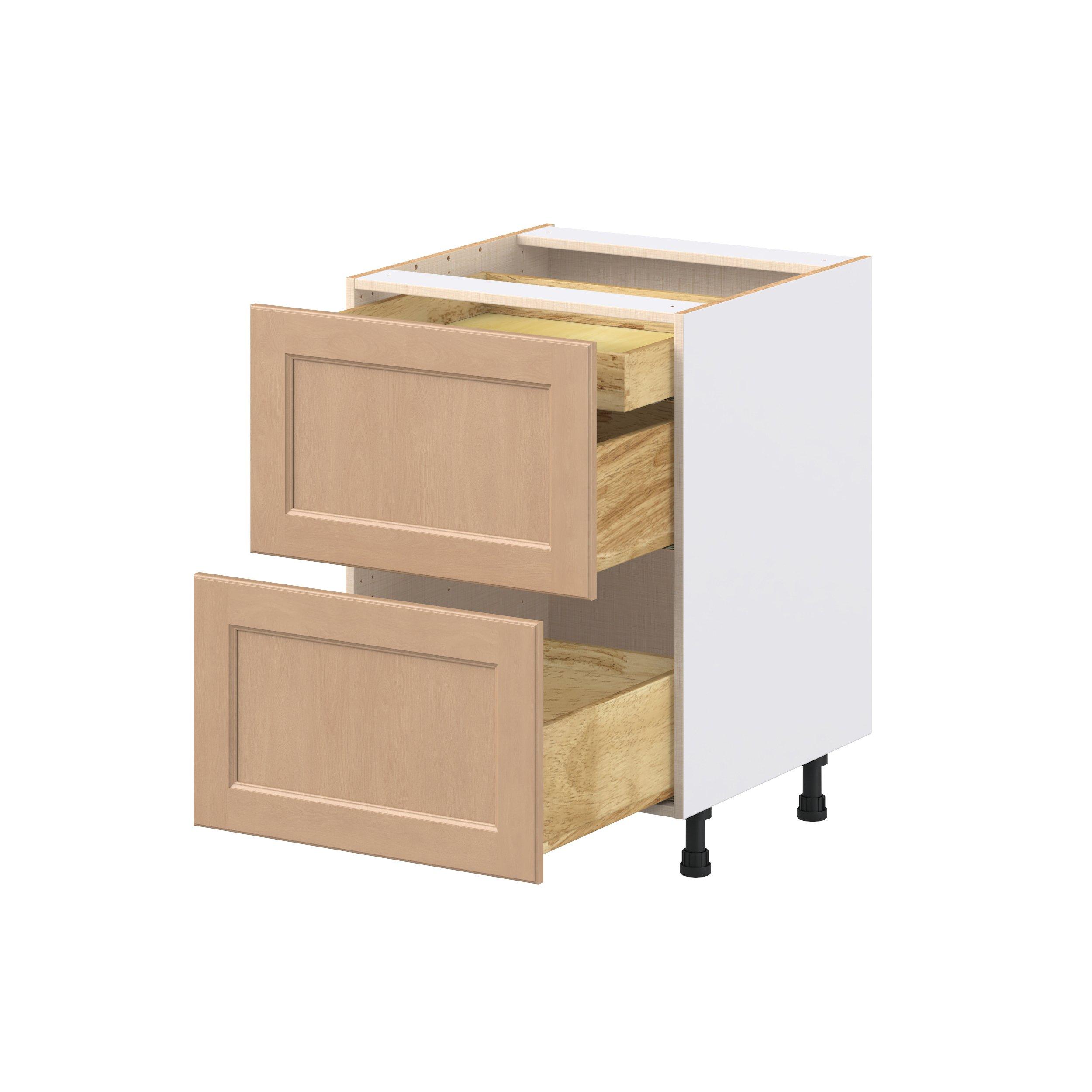 Experience the striking beauty of Sugarhill wide-rail shaker-inspired cabinets. Available in a warm and light sugar cookie finish, this collection will add warmth and lasting elegance to any space. Crafted from one-piece MDF Studio Design Collection Sugarhill 24 in. Stained Sugar Cookie Base Cabinet with Inner Pull-Out Drawer is designed to resist hairline cracks while the easy-to-clean finish stands up to stains and moisture. Featuring 5-piece doors and dovetail drawer joints, these cabinets offer durability and elegance. This collection combines style with everyday storage solutions.
