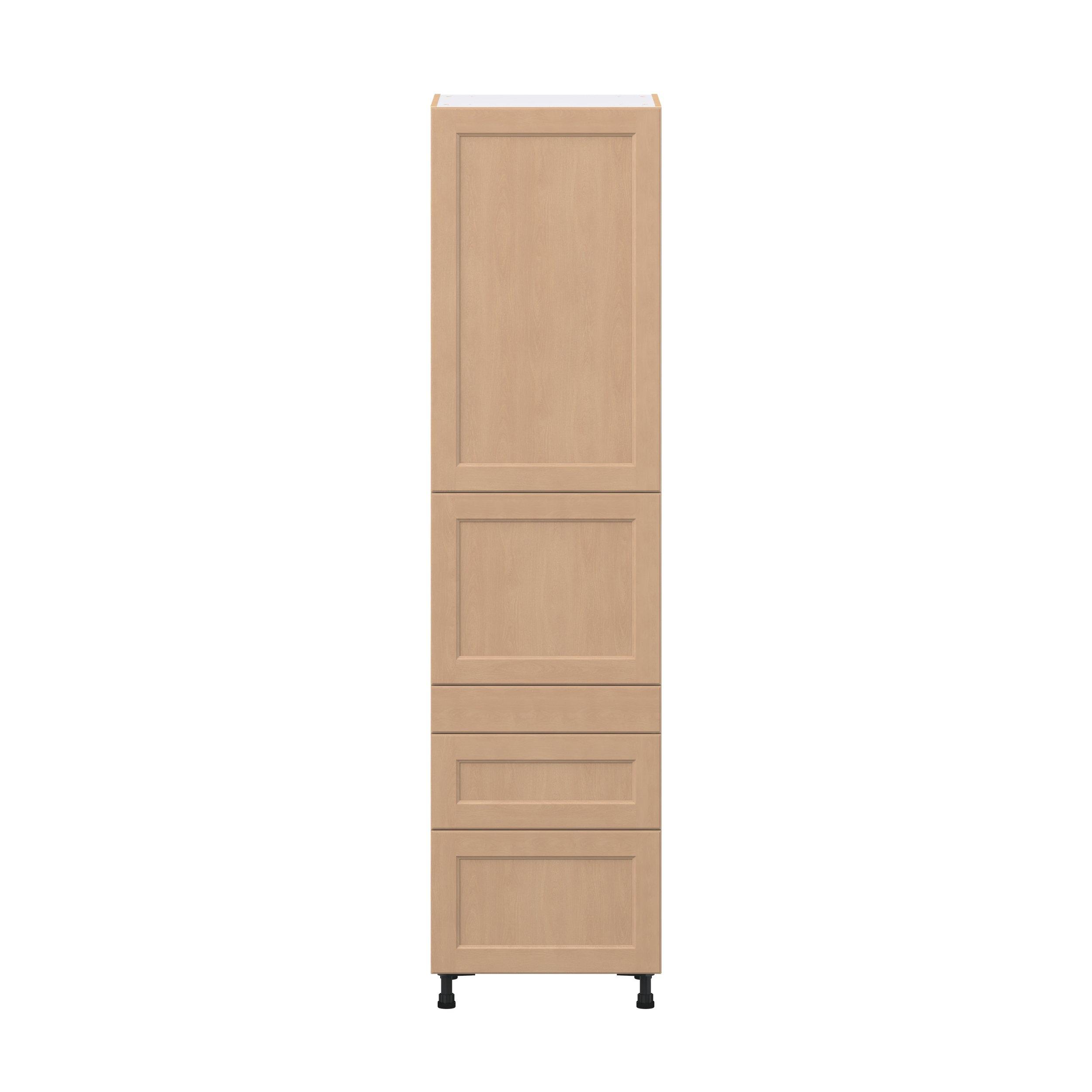 Experience the striking beauty of Sugarhill wide-rail shaker-inspired cabinets. Available in a warm and light sugar cookie finish, this collection will add warmth and lasting elegance to any space. Crafted from one-piece MDF Studio Design Collection Sugarhill 24 in. Stained Sugar Cookie Door and Drawer Pantry Cabinet with Inner Pull-Out is designed to resist hairline cracks while the easy-to-clean finish stands up to stains and moisture. Featuring 5-piece doors and dovetail drawer joints, these cabinets offer durability and elegance. This collection combines style with everyday storage solutions.