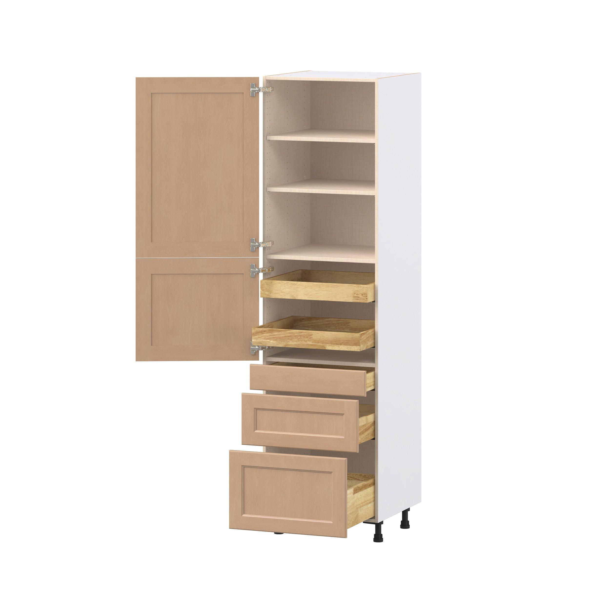 Experience the striking beauty of Sugarhill wide-rail shaker-inspired cabinets. Available in a warm and light sugar cookie finish, this collection will add warmth and lasting elegance to any space. Crafted from one-piece MDF Studio Design Collection Sugarhill 24 in. Stained Sugar Cookie Door and Drawer Pantry Cabinet with Inner Pull-Out is designed to resist hairline cracks while the easy-to-clean finish stands up to stains and moisture. Featuring 5-piece doors and dovetail drawer joints, these cabinets offer durability and elegance. This collection combines style with everyday storage solutions.