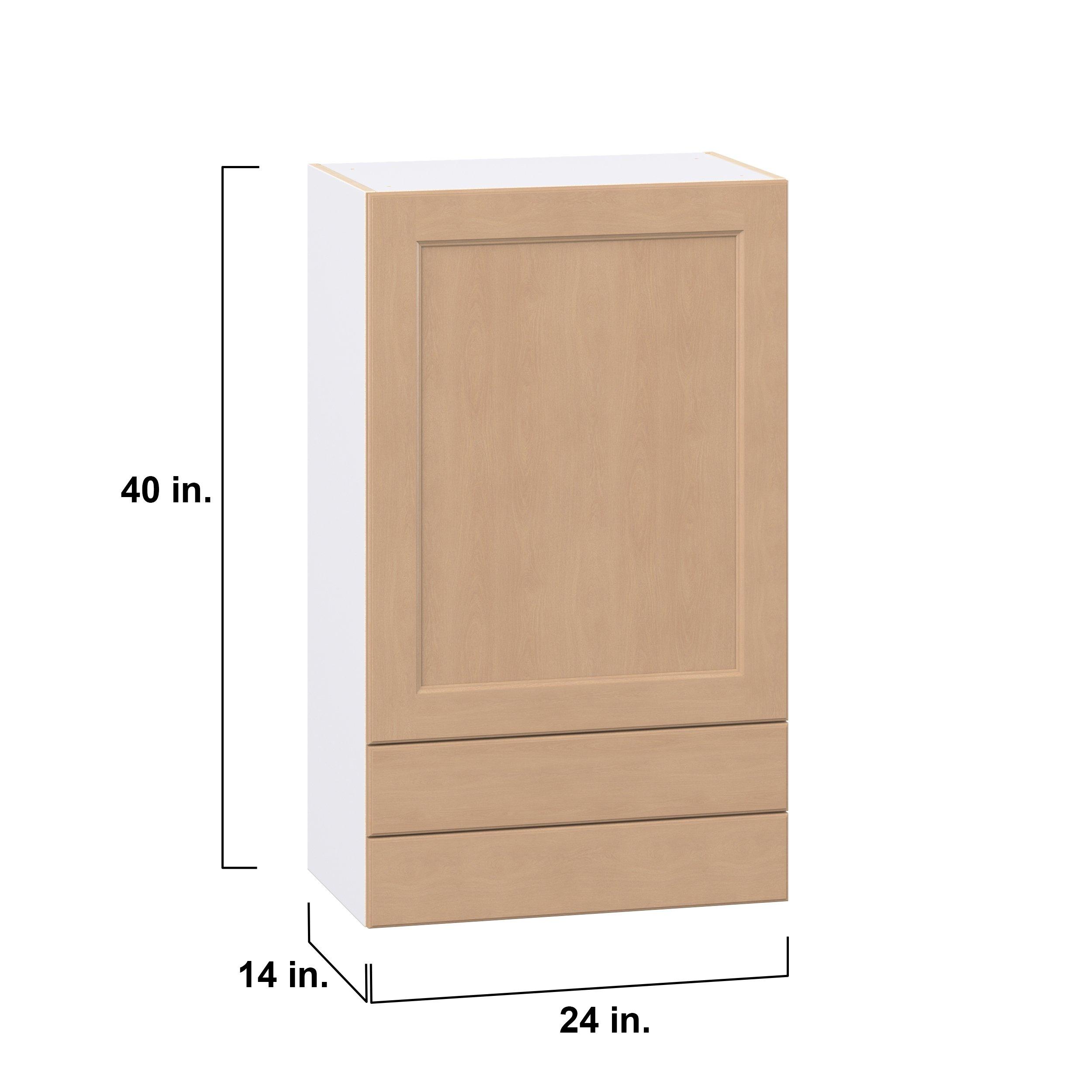 Experience the striking beauty of Sugarhill wide-rail shaker-inspired cabinets. Available in a warm and light sugar cookie finish, this collection will add warmth and lasting elegance to any space. Crafted from one-piece MDF Studio Design Collection Sugarhill 24 in. Stained Sugar Cookie Door and Drawer Wall Cabinet is designed to resist hairline cracks while the easy-to-clean finish stands up to stains and moisture. Featuring 5-piece doors and dovetail drawer joints, these cabinets offer durability and elegance. This collection combines style with everyday storage solutions.