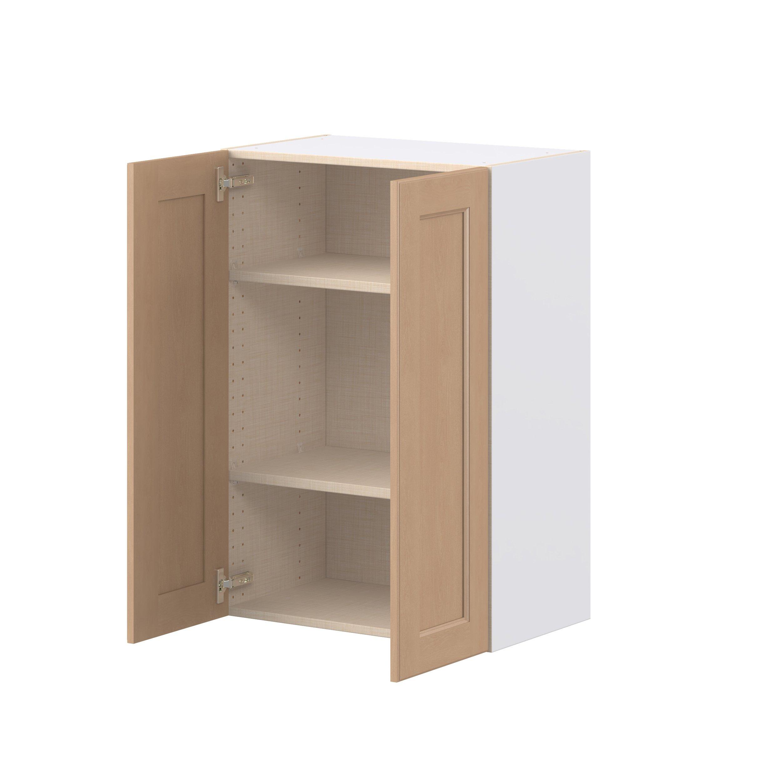 Experience the striking beauty of Sugarhill wide-rail shaker-inspired cabinets. Available in a warm and light sugar cookie finish, this collection will add warmth and lasting elegance to any space. Crafted from one-piece MDF Studio Design Collection Sugarhill 24 in. Stained Sugar Cookie Door Wall Cabinet is designed to resist hairline cracks while the easy-to-clean finish stands up to stains and moisture. Featuring 5-piece doors and dovetail drawer joints, these cabinets offer durability and elegance. This collection combines style with everyday storage solutions.