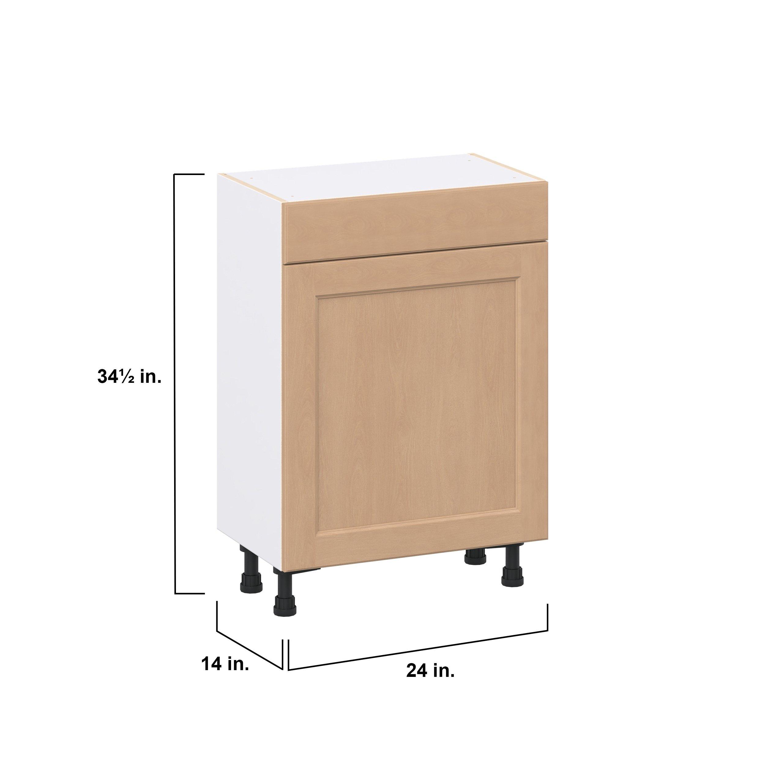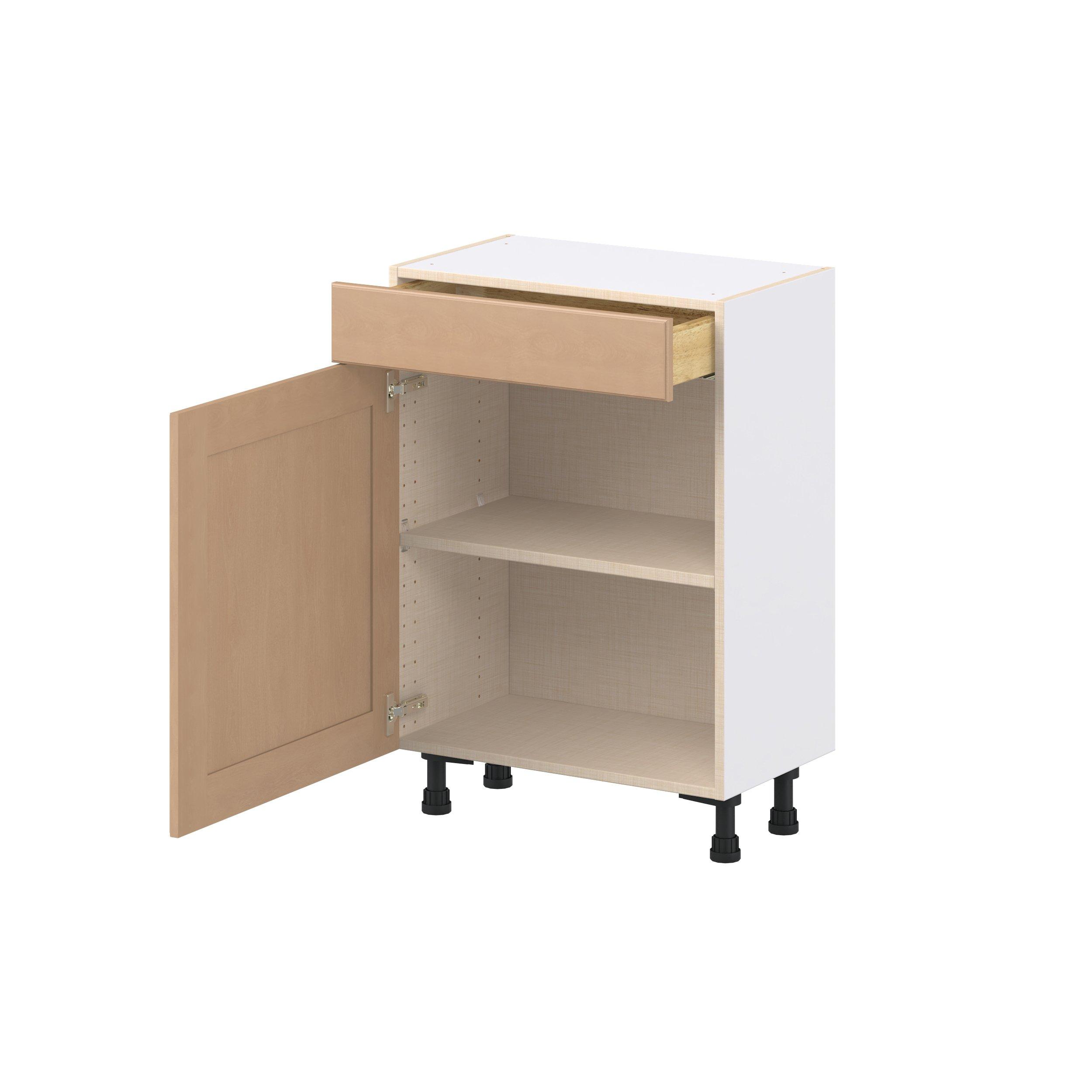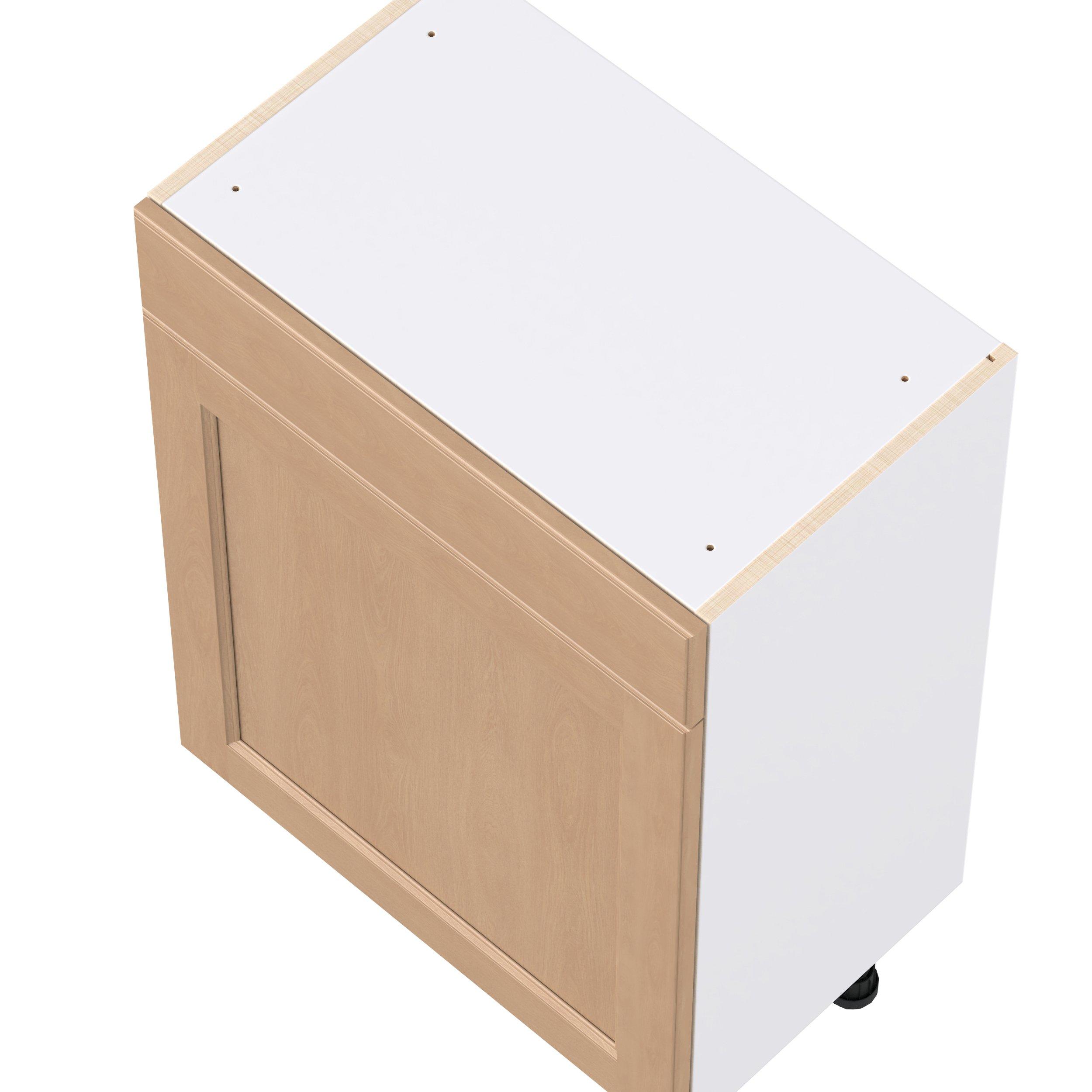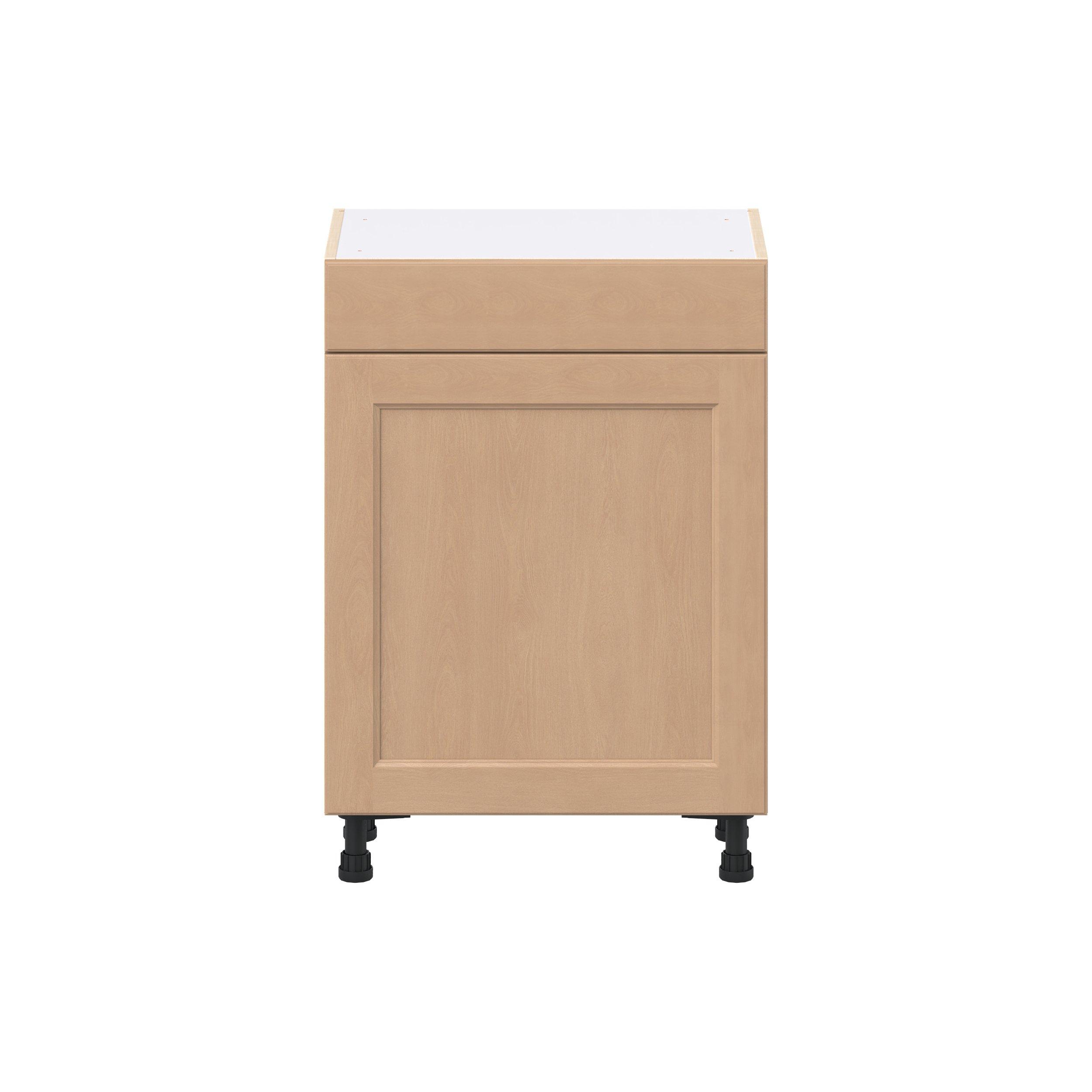 Experience the striking beauty of Sugarhill wide-rail shaker-inspired cabinets. Available in a warm and light sugar cookie finish, this collection will add warmth and lasting elegance to any space. Crafted from one-piece MDF Studio Design Collection Sugarhill 24 in. Stained Sugar Cookie Shallow Base Cabinet is designed to resist hairline cracks while the easy-to-clean finish stands up to stains and moisture. Featuring 5-piece doors and dovetail drawer joints, these cabinets offer durability and elegance. This collection combines style with everyday storage solutions.