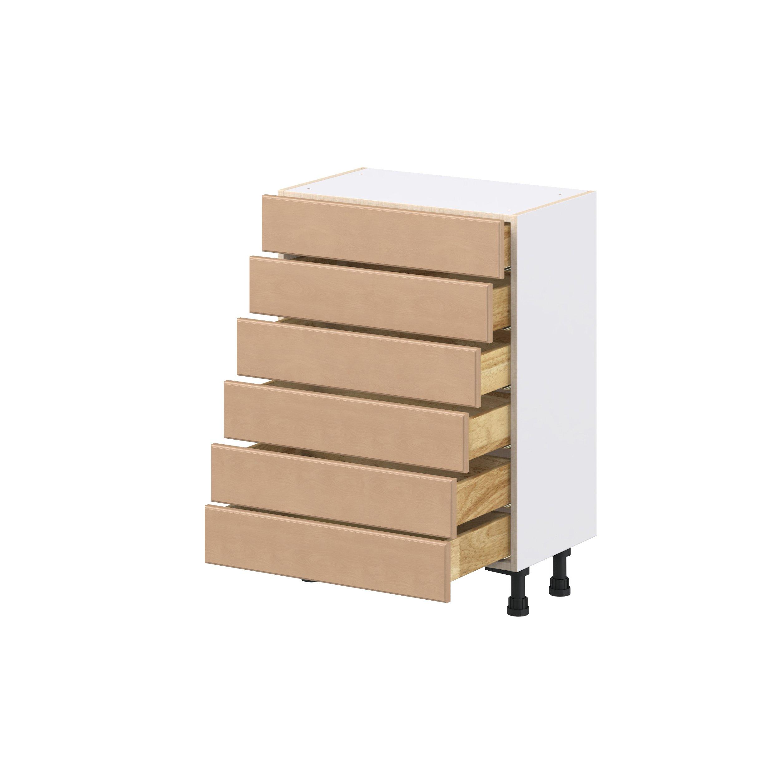 Experience the striking beauty of Sugarhill wide-rail shaker-inspired cabinets. Available in a warm and light sugar cookie finish, this collection will add warmth and lasting elegance to any space. Crafted from one-piece MDF Studio Design Collection Sugarhill 24 in. Stained Sugar Cookie Shallow Base Cabinet is designed to resist hairline cracks while the easy-to-clean finish stands up to stains and moisture. Featuring 5-piece doors and dovetail drawer joints, these cabinets offer durability and elegance. This collection combines style with everyday storage solutions.