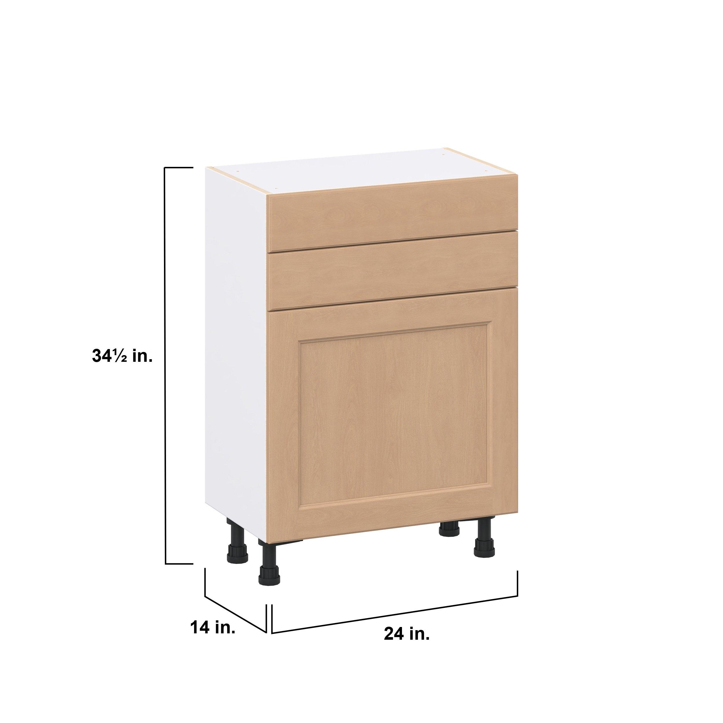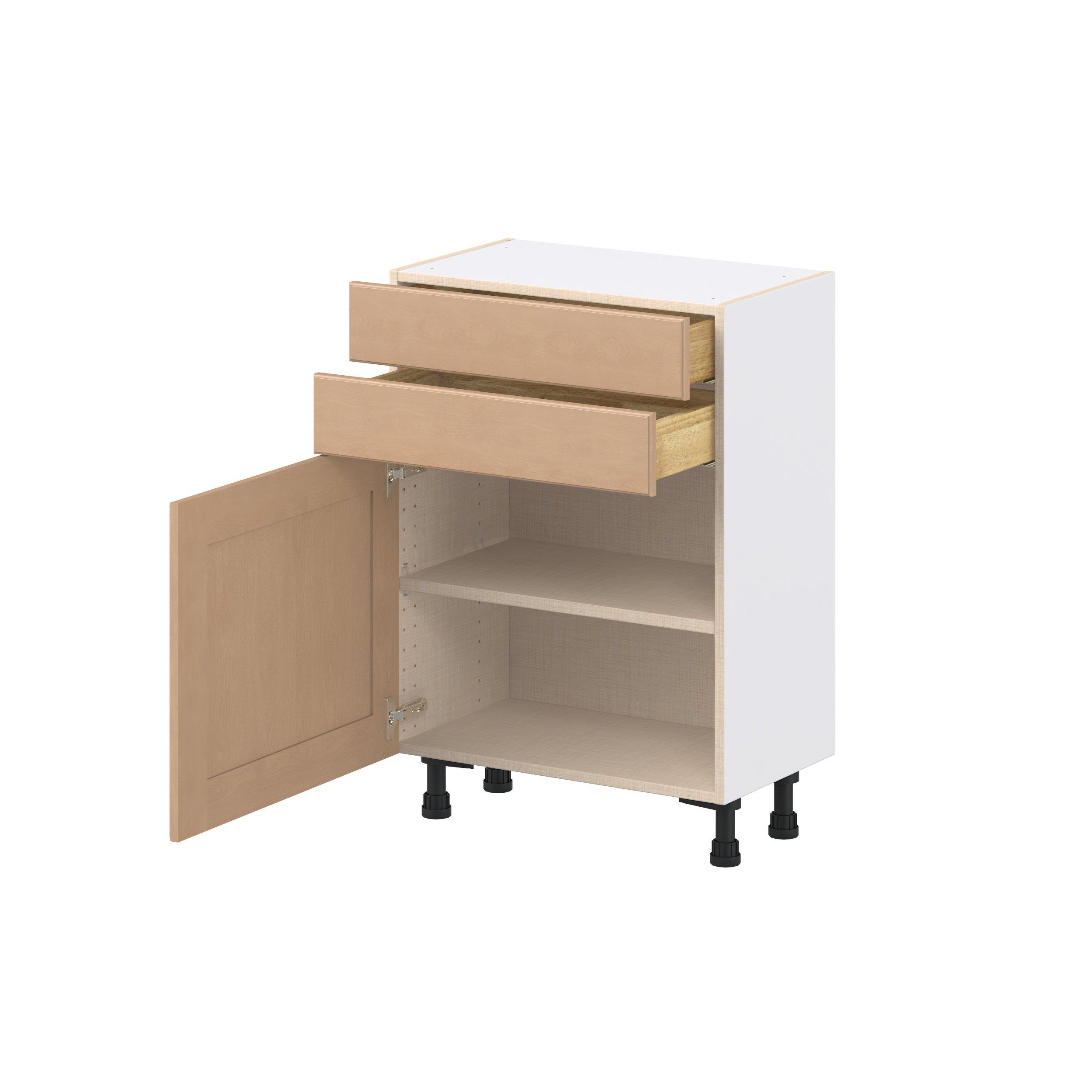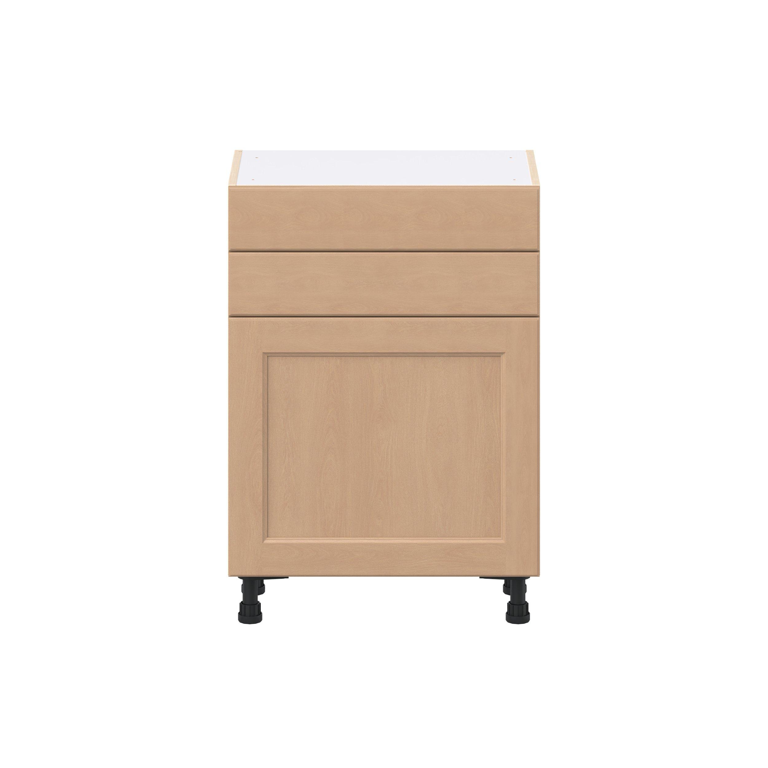 Experience the striking beauty of Sugarhill wide-rail shaker-inspired cabinets. Available in a warm and light sugar cookie finish, this collection will add warmth and lasting elegance to any space. Crafted from one-piece MDF Studio Design Collection Sugarhill 24 in. Stained Sugar Cookie Shallow Base Cabinet is designed to resist hairline cracks while the easy-to-clean finish stands up to stains and moisture. Featuring 5-piece doors and dovetail drawer joints, these cabinets offer durability and elegance. This collection combines style with everyday storage solutions.