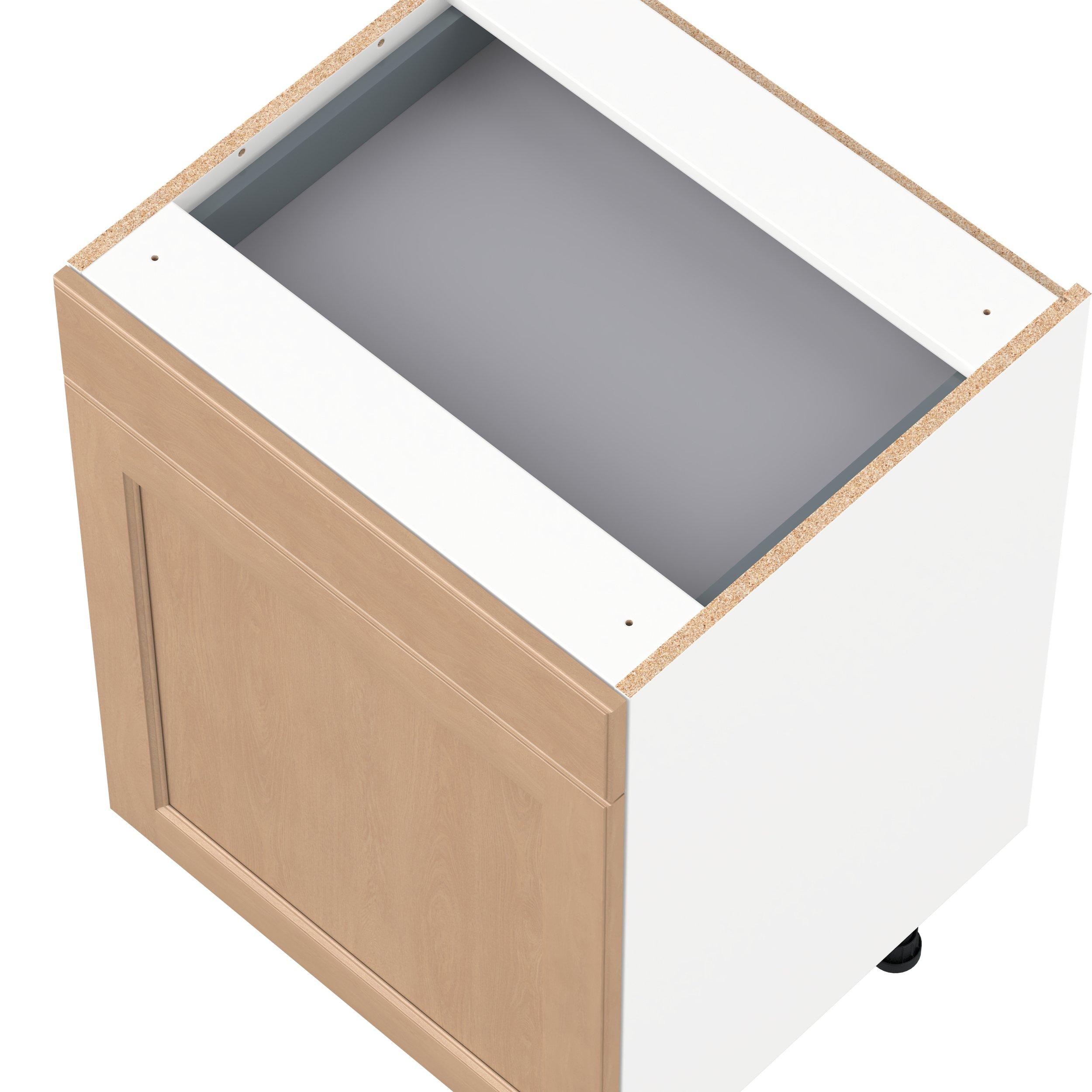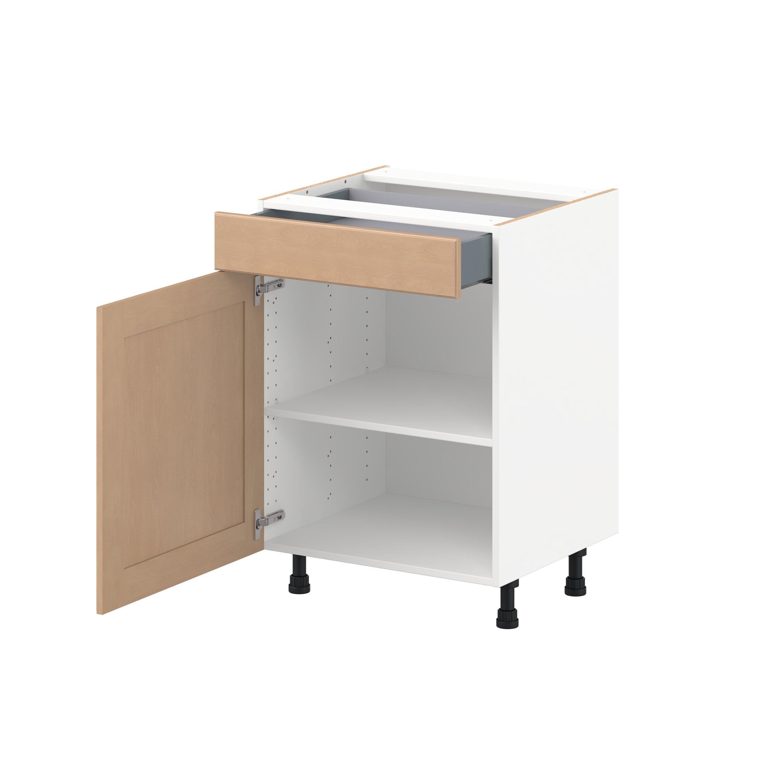 Experience the striking beauty of Sugarhill wide-rail shaker-inspired cabinets. Available in a warm and light sugar cookie finish, this collection will add warmth and lasting elegance to any space. Crafted from one-piece MDF Studio Design Collection Sugarhill 24 in. Stained Sugar Cookie Vanity Door and Drawer Base Cabinet is designed to resist hairline cracks while the easy-to-clean finish stands up to stains and moisture. Featuring 5-piece doors and dovetail drawer joints, these cabinets offer durability and elegance. This collection combines style with everyday storage solutions.