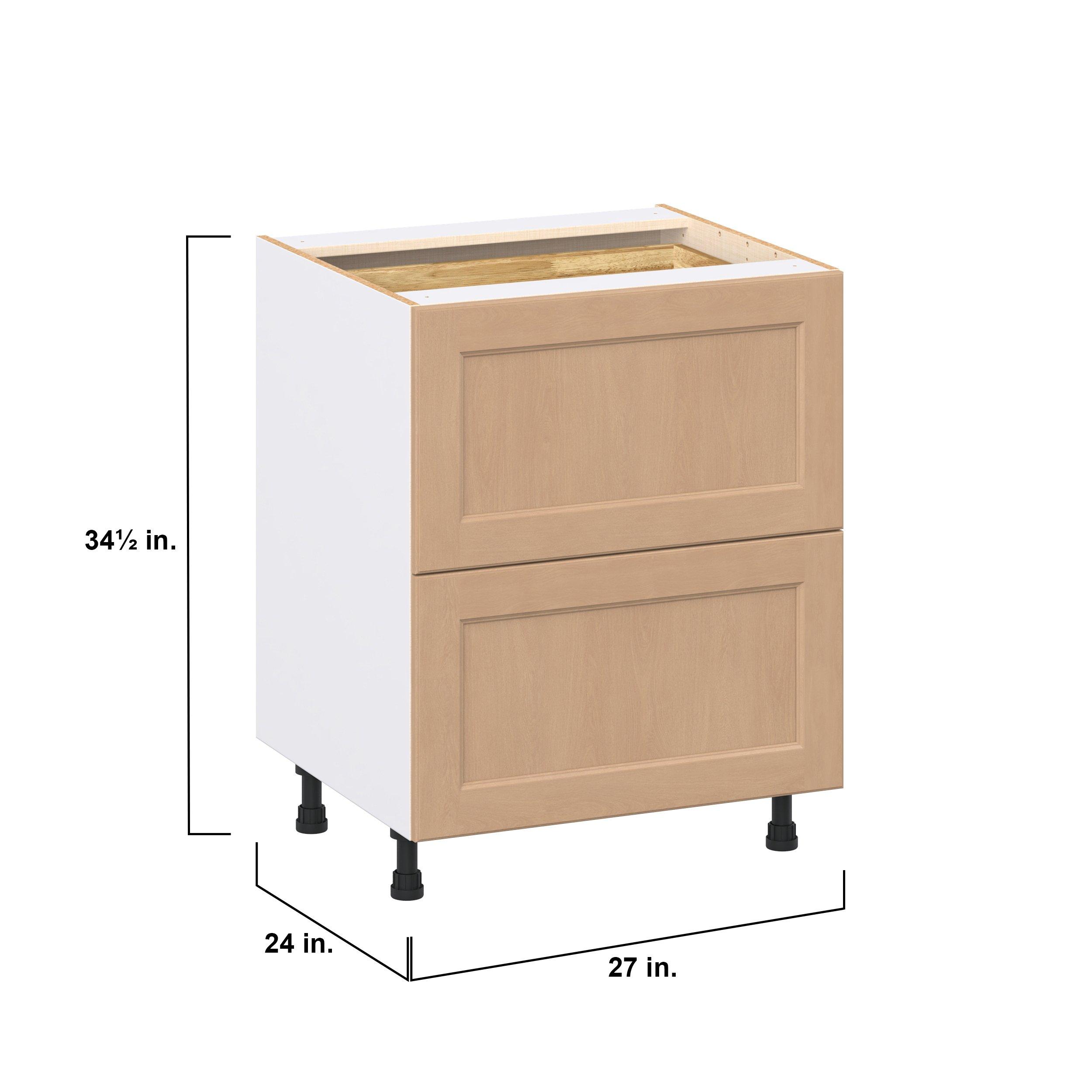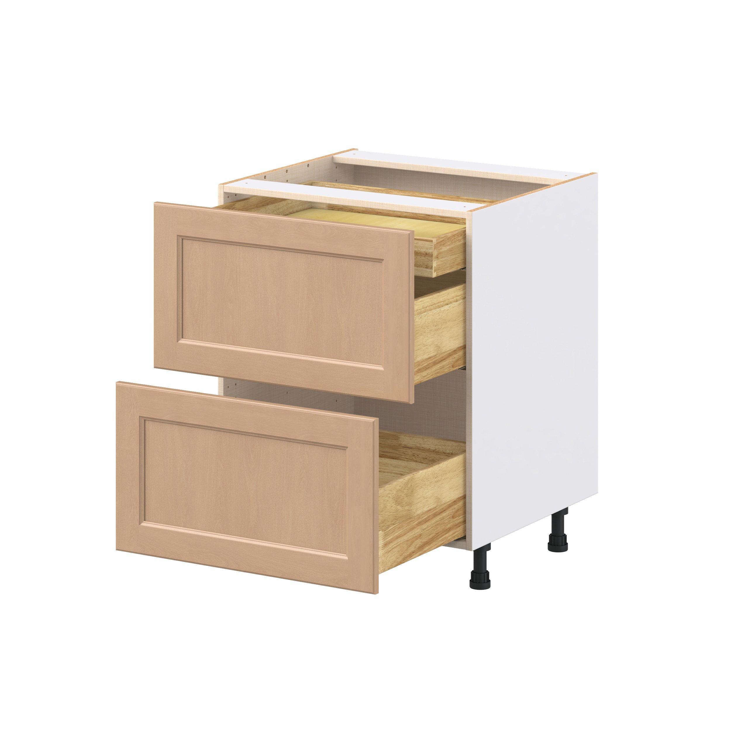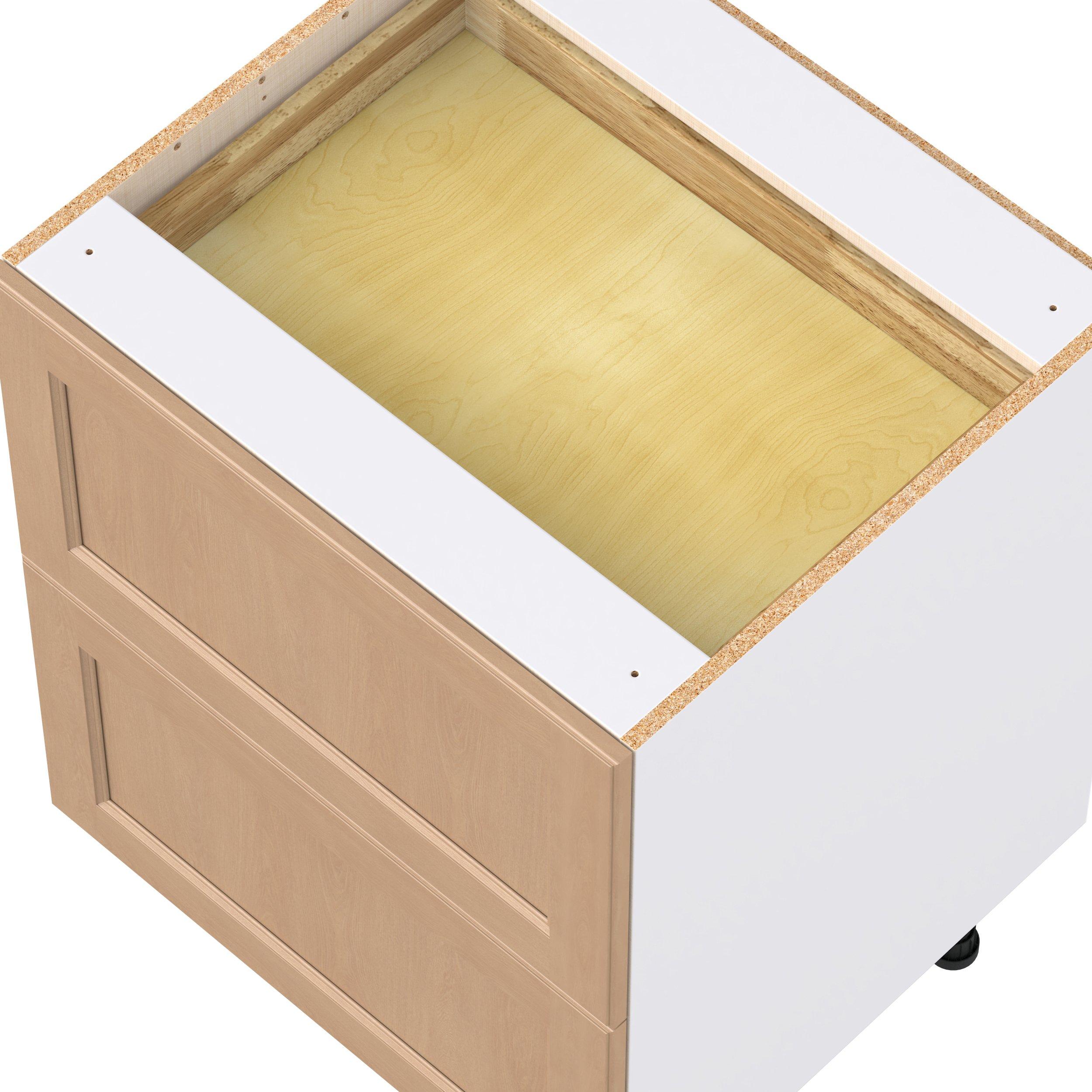 Experience the striking beauty of Sugarhill wide-rail shaker-inspired cabinets. Available in a warm and light sugar cookie finish, this collection will add warmth and lasting elegance to any space. Crafted from one-piece MDF Studio Design Collection Sugarhill 27 in. Stained Sugar Cookie Base Cabinet with Inner Pull-Out Drawer is designed to resist hairline cracks while the easy-to-clean finish stands up to stains and moisture. Featuring 5-piece doors and dovetail drawer joints, these cabinets offer durability and elegance. This collection combines style with everyday storage solutions.
