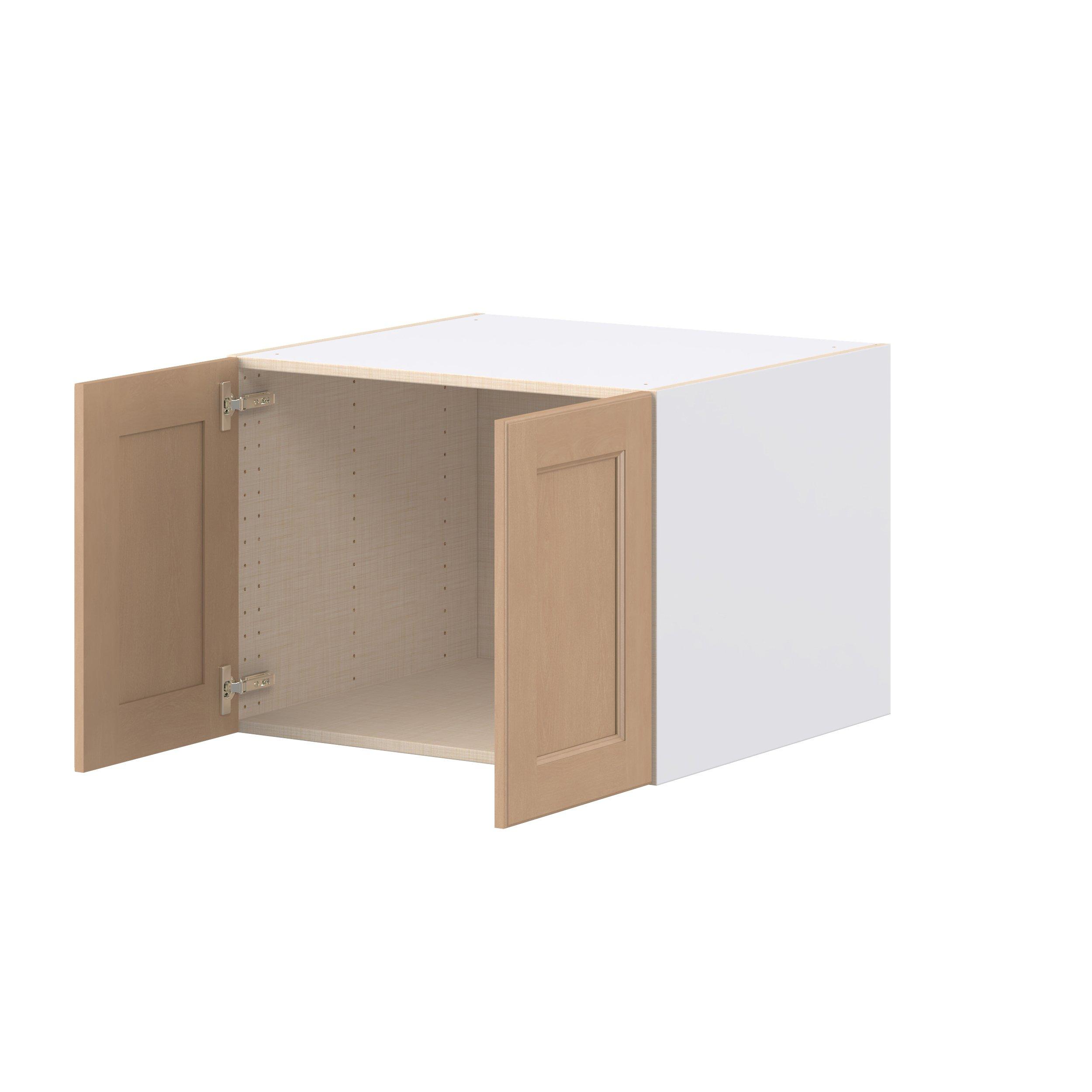 Experience the striking beauty of Sugarhill wide-rail shaker-inspired cabinets. Available in a warm and light sugar cookie finish, this collection will add warmth and lasting elegance to any space. Crafted from one-piece MDF Studio Design Collection Sugarhill 27 in. Stained Sugar Cookie Bridge Wall Cabinet is designed to resist hairline cracks while the easy-to-clean finish stands up to stains and moisture. Featuring 5-piece doors and dovetail drawer joints, these cabinets offer durability and elegance. This collection combines style with everyday storage solutions.