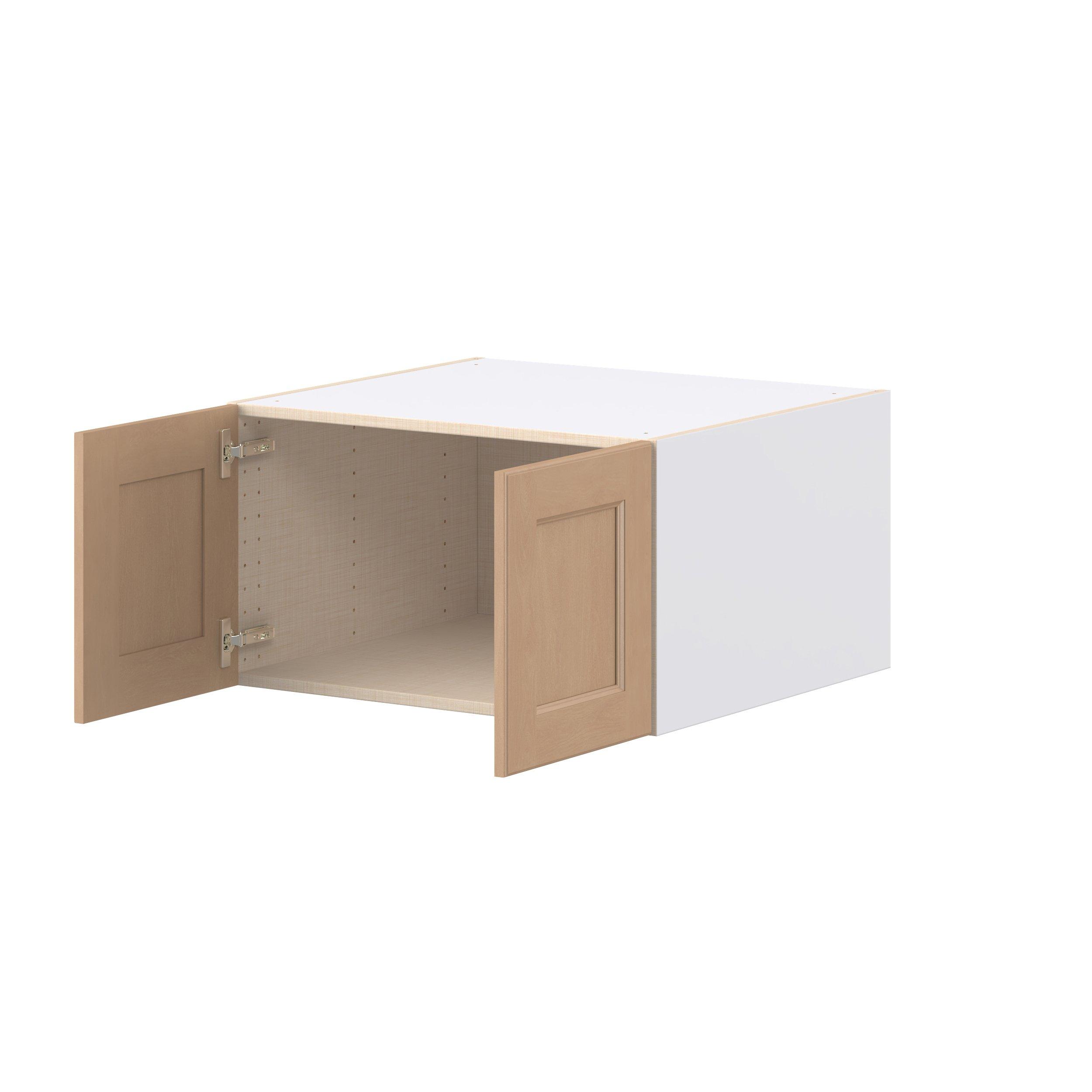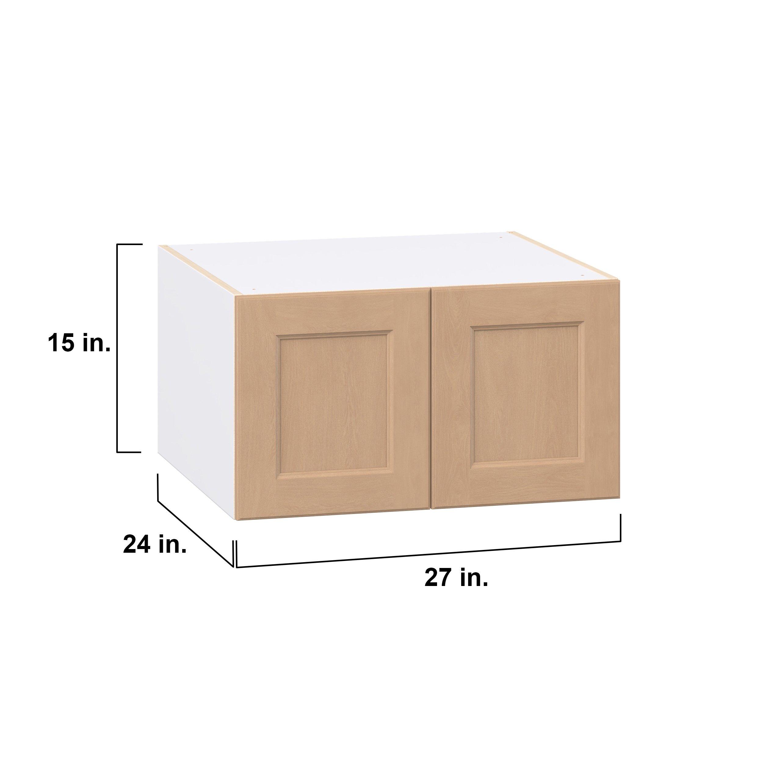 Experience the striking beauty of Sugarhill wide-rail shaker-inspired cabinets. Available in a warm and light sugar cookie finish, this collection will add warmth and lasting elegance to any space. Crafted from one-piece MDF Studio Design Collection Sugarhill 27 in. Stained Sugar Cookie Bridge Wall Cabinet is designed to resist hairline cracks while the easy-to-clean finish stands up to stains and moisture. Featuring 5-piece doors and dovetail drawer joints, these cabinets offer durability and elegance. This collection combines style with everyday storage solutions.