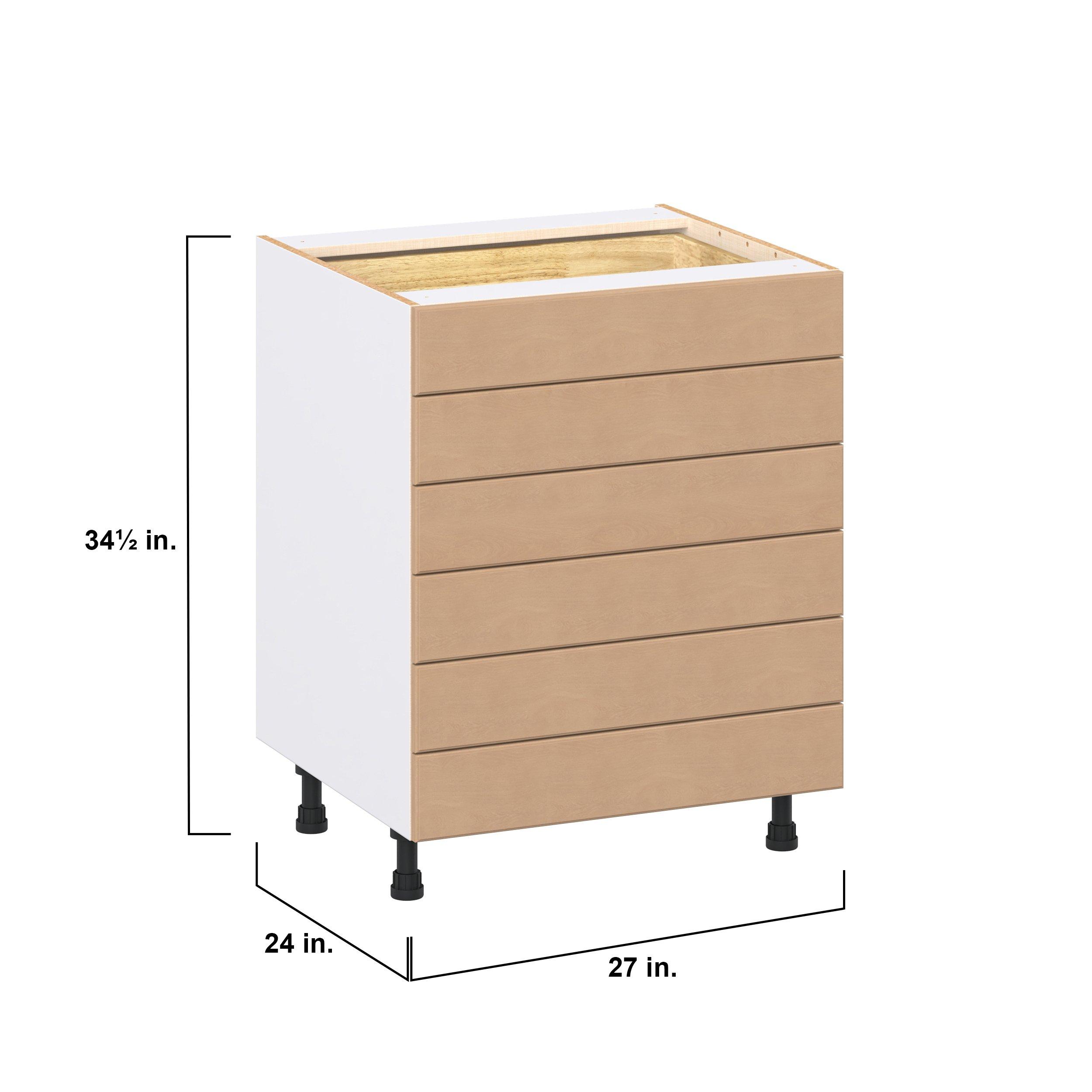 Experience the striking beauty of Sugarhill wide-rail shaker-inspired cabinets. Available in a warm and light sugar cookie finish, this collection will add warmth and lasting elegance to any space. Crafted from one-piece MDF Studio Design Collection Sugarhill 27 in. Stained Sugar Cookie Drawer Base Cabinet is designed to resist hairline cracks while the easy-to-clean finish stands up to stains and moisture. Featuring 5-piece doors and dovetail drawer joints, these cabinets offer durability and elegance. This collection combines style with everyday storage solutions.