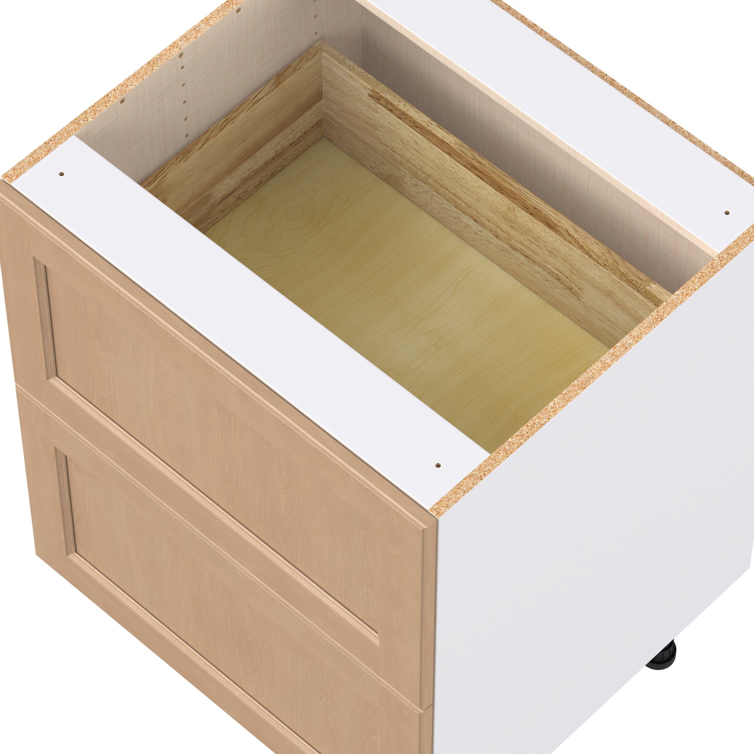 Experience the striking beauty of Sugarhill wide-rail shaker-inspired cabinets. Available in a warm and light sugar cookie finish, this collection will add warmth and lasting elegance to any space. Crafted from one-piece MDF Studio Design Collection Sugarhill 27 in. Stained Sugar Cookie Drawer Base Cabinet is designed to resist hairline cracks while the easy-to-clean finish stands up to stains and moisture. Featuring 5-piece doors and dovetail drawer joints, these cabinets offer durability and elegance. This collection combines style with everyday storage solutions.