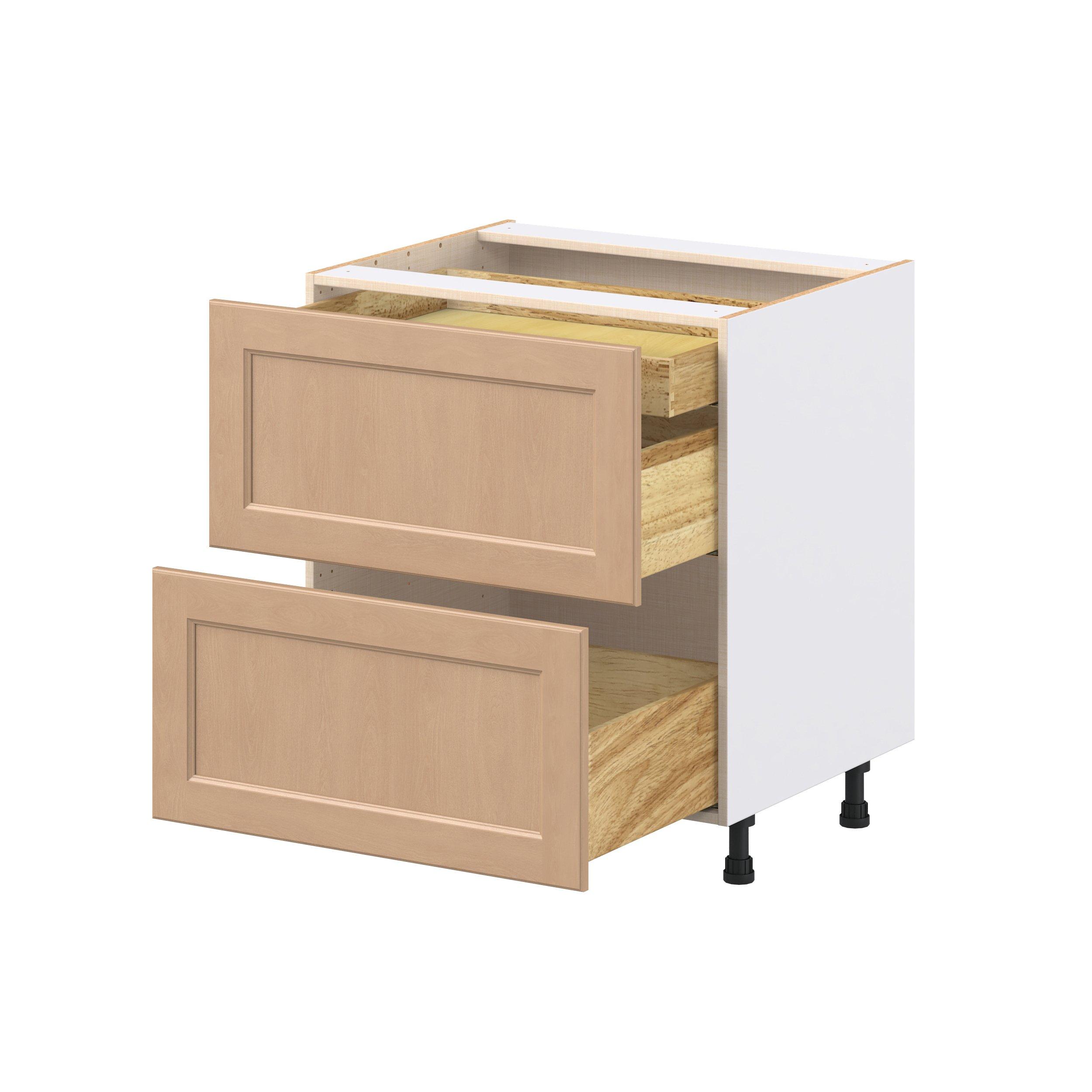Experience the striking beauty of Sugarhill wide-rail shaker-inspired cabinets. Available in a warm and light sugar cookie finish, this collection will add warmth and lasting elegance to any space. Crafted from one-piece MDF Studio Design Collection Sugarhill 30 in. Stained Sugar Cookie Base Cabinet with Inner Pull-Out Drawer is designed to resist hairline cracks while the easy-to-clean finish stands up to stains and moisture. Featuring 5-piece doors and dovetail drawer joints, these cabinets offer durability and elegance. This collection combines style with everyday storage solutions.