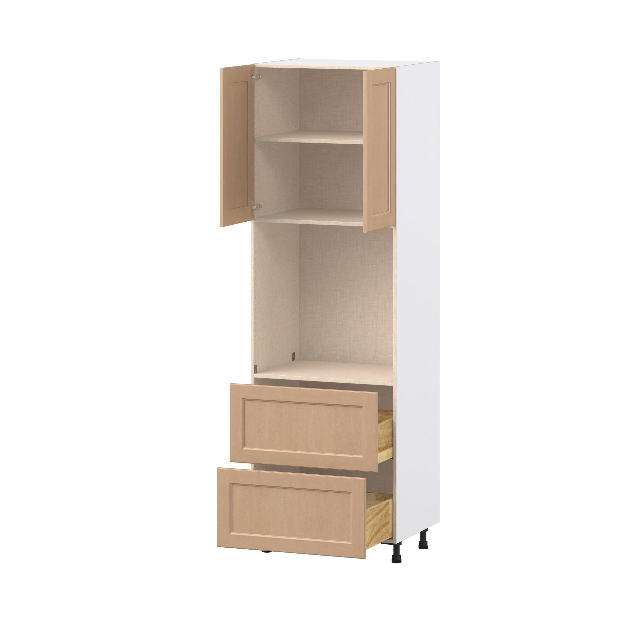 Experience the striking beauty of Sugarhill wide-rail shaker-inspired cabinets. Available in a warm and light sugar cookie finish, this collection will add warmth and lasting elegance to any space. Crafted from one-piece MDF Studio Design Collection Sugarhill 30 in. Stained Sugar Cookie Door and Drawer Single Oven Pantry Cabinet is designed to resist hairline cracks while the easy-to-clean finish stands up to stains and moisture. Featuring 5-piece doors and dovetail drawer joints, these cabinets offer durability and elegance. This collection combines style with everyday storage solutions.