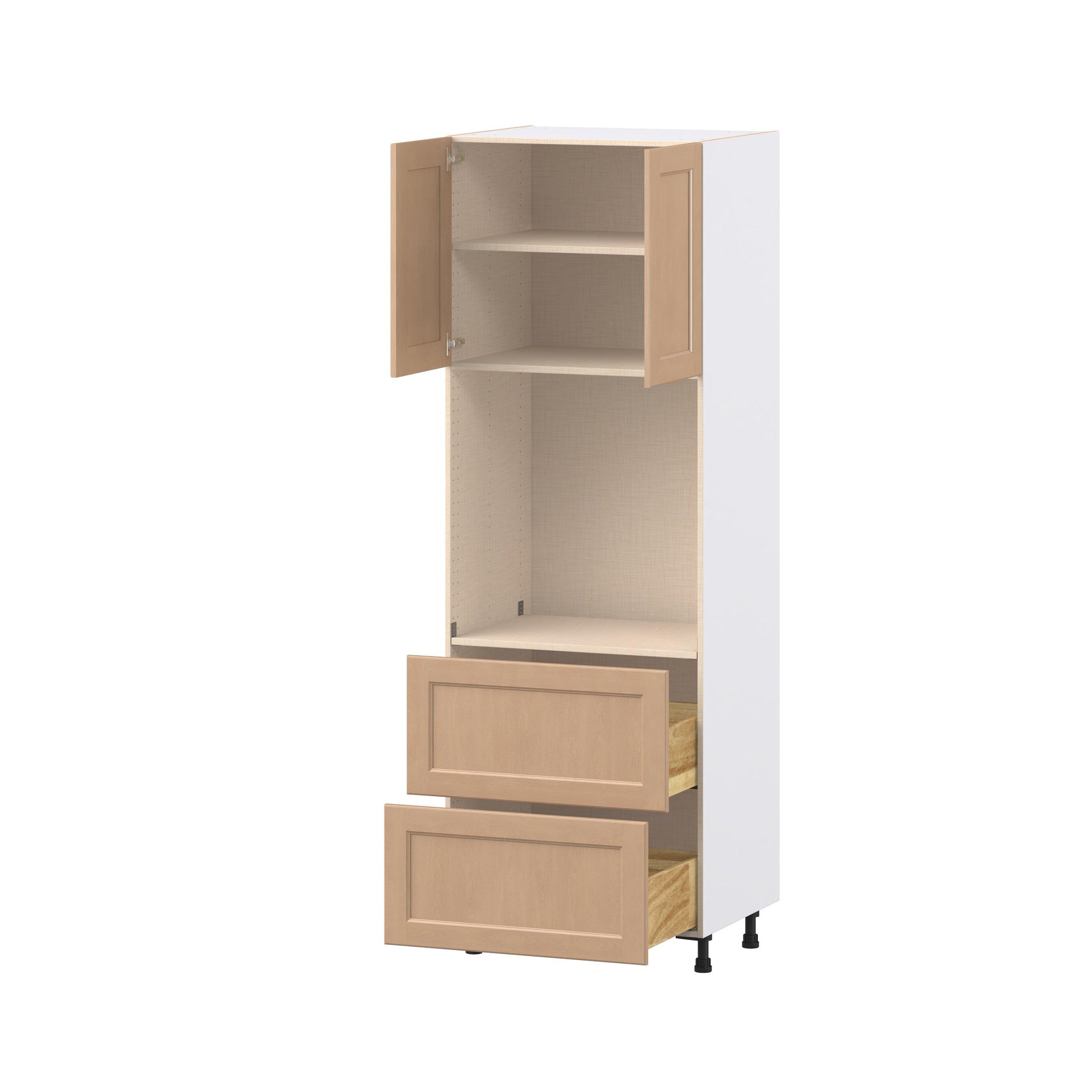 Experience the striking beauty of Sugarhill wide-rail shaker-inspired cabinets. Available in a warm and light sugar cookie finish, this collection will add warmth and lasting elegance to any space. Crafted from one-piece MDF Studio Design Collection Sugarhill 30 in. Stained Sugar Cookie Door and Drawer Single Oven Pantry Cabinet is designed to resist hairline cracks while the easy-to-clean finish stands up to stains and moisture. Featuring 5-piece doors and dovetail drawer joints, these cabinets offer durability and elegance. This collection combines style with everyday storage solutions.